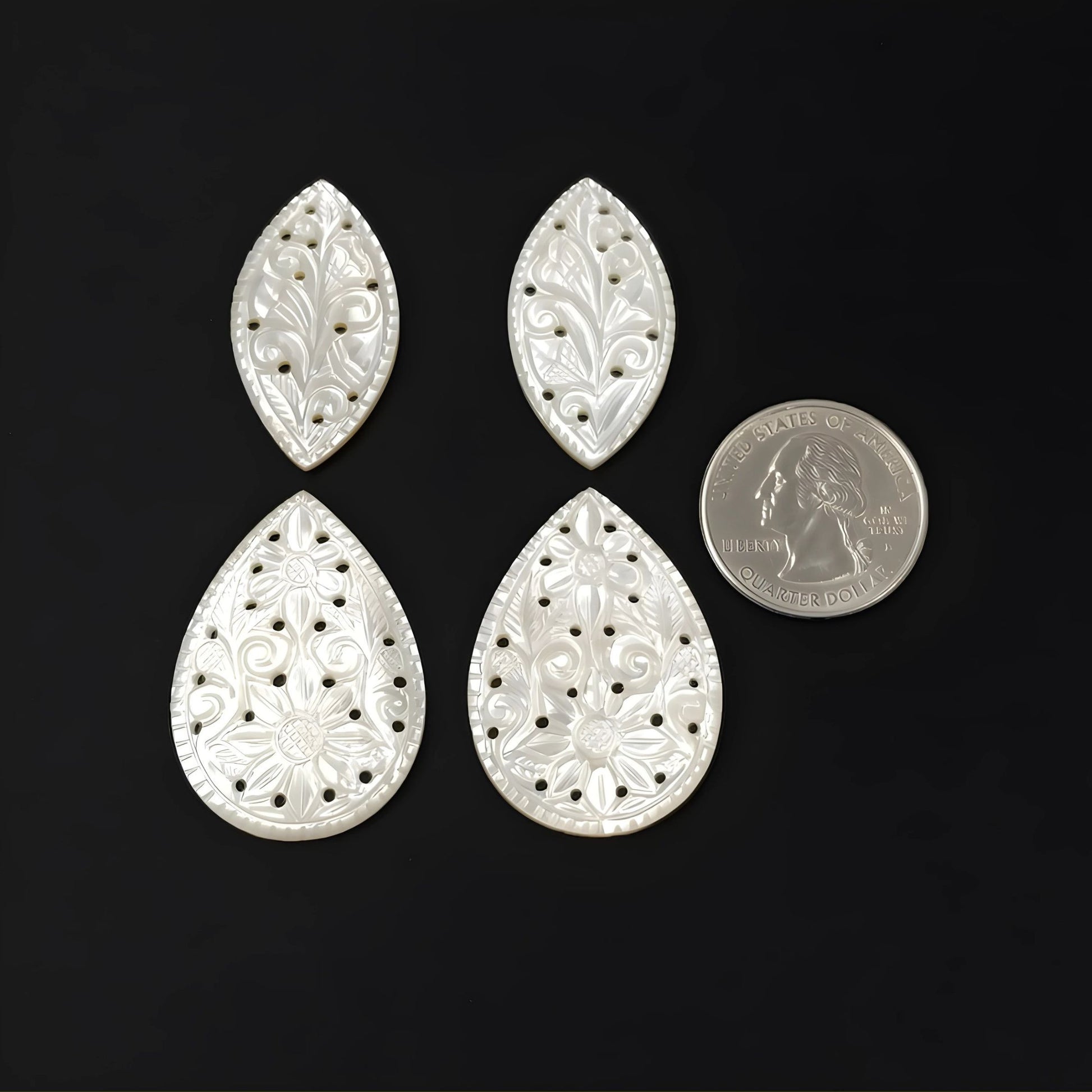 73.85cts Mother Of Pearl Gemstone Carving Natural Untreated White Marquise, Pear Shape 4pcs Set