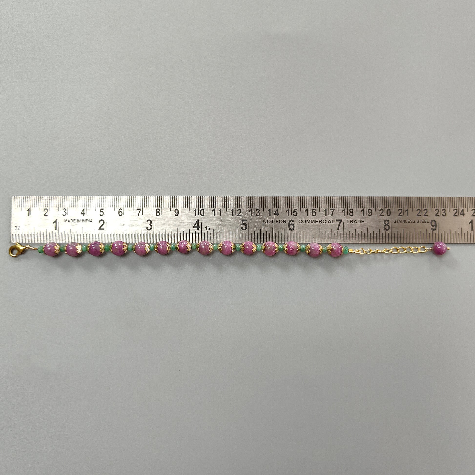 Zoisite Ruby & Emerald Beads Bracelet: 77.30cts Natural Untreated Zoisite Ruby Round Plain Brass Bracelet 4mm - 7mm 6.30"