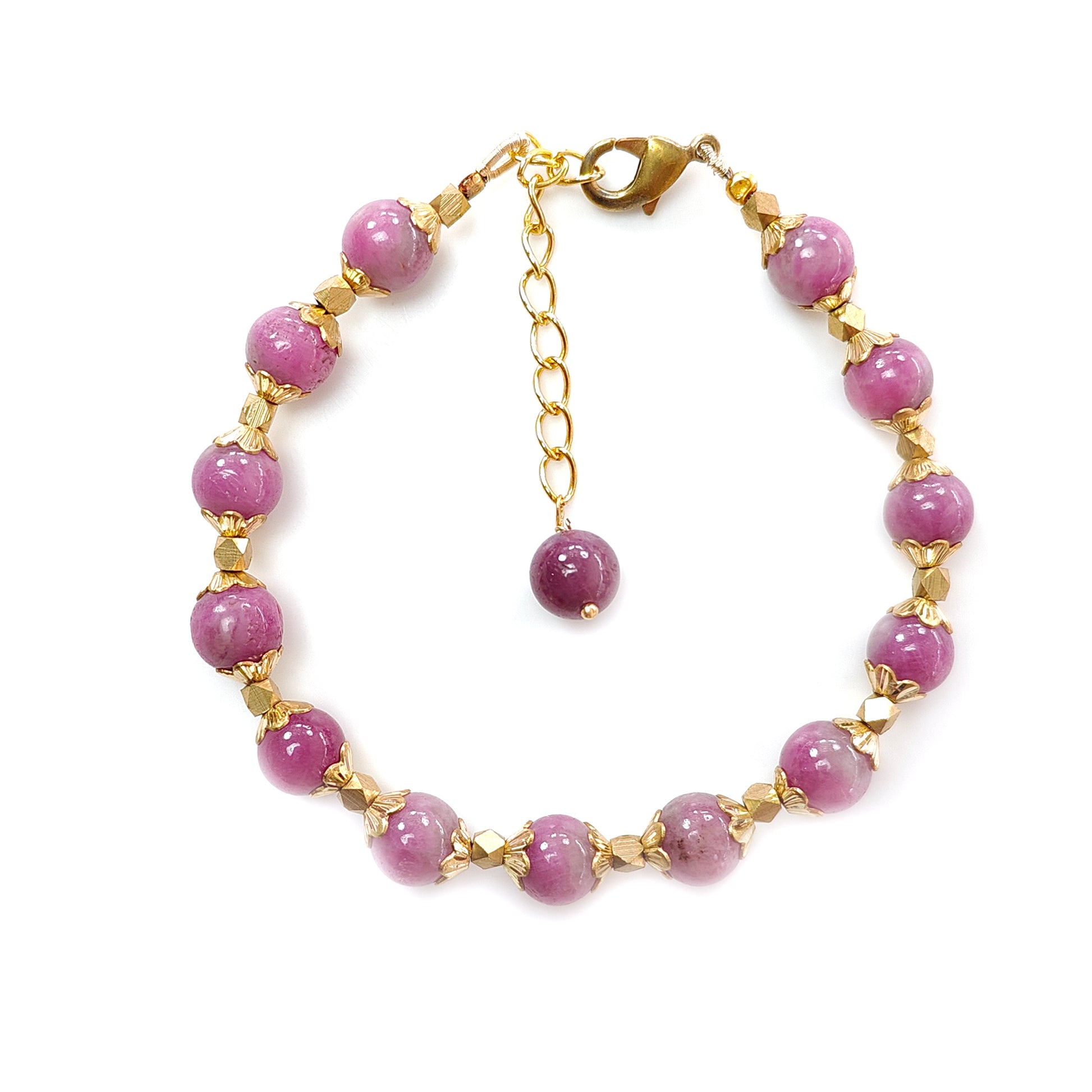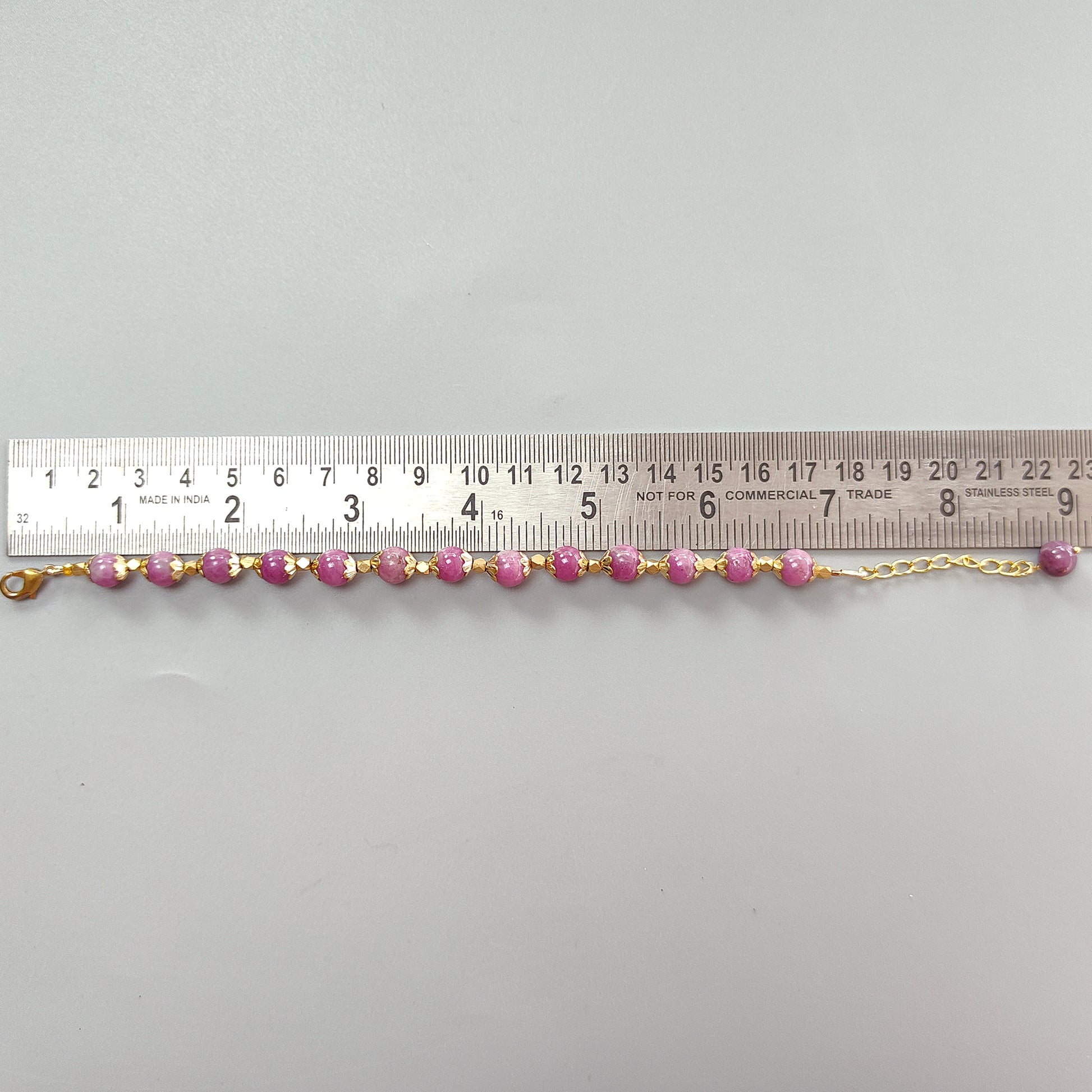 Zoisite Ruby Beads Bracelet: 78.00cts Natural Untreated Zoisite Ruby Round Plain Brass Bracelet 7mm 6.30"