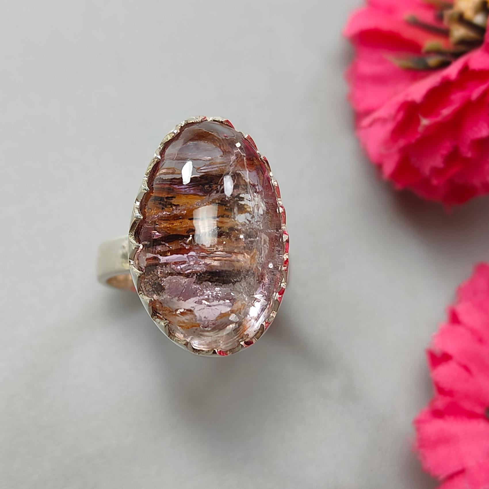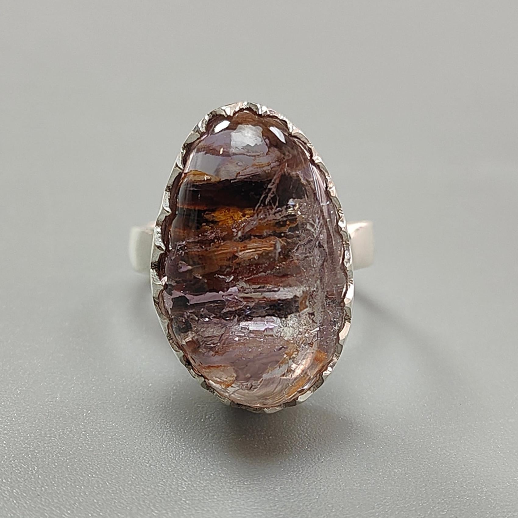 Amethyst Plain Silver Ring: 8.57gms Natural Untreated Super Seven Amethyst Oval Shape Plain 925 Sterling Silver Bezel Set Adjustable Ring