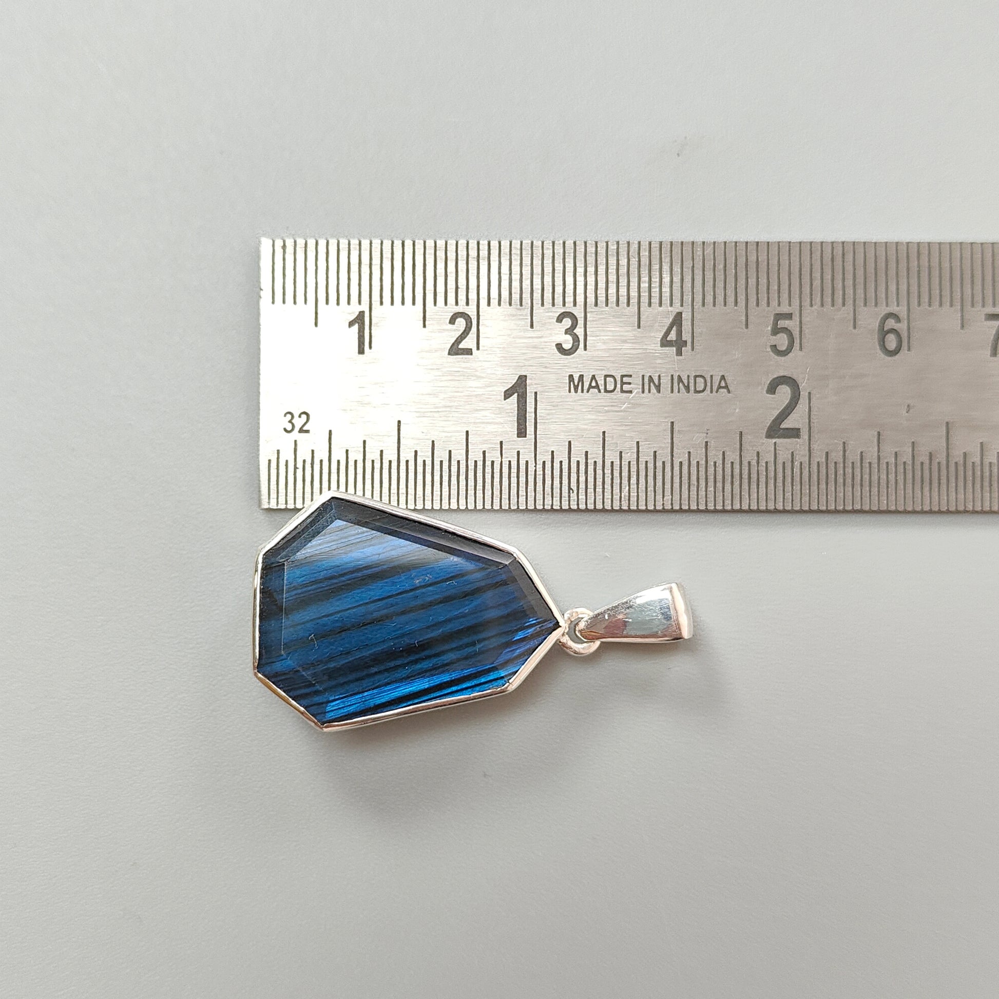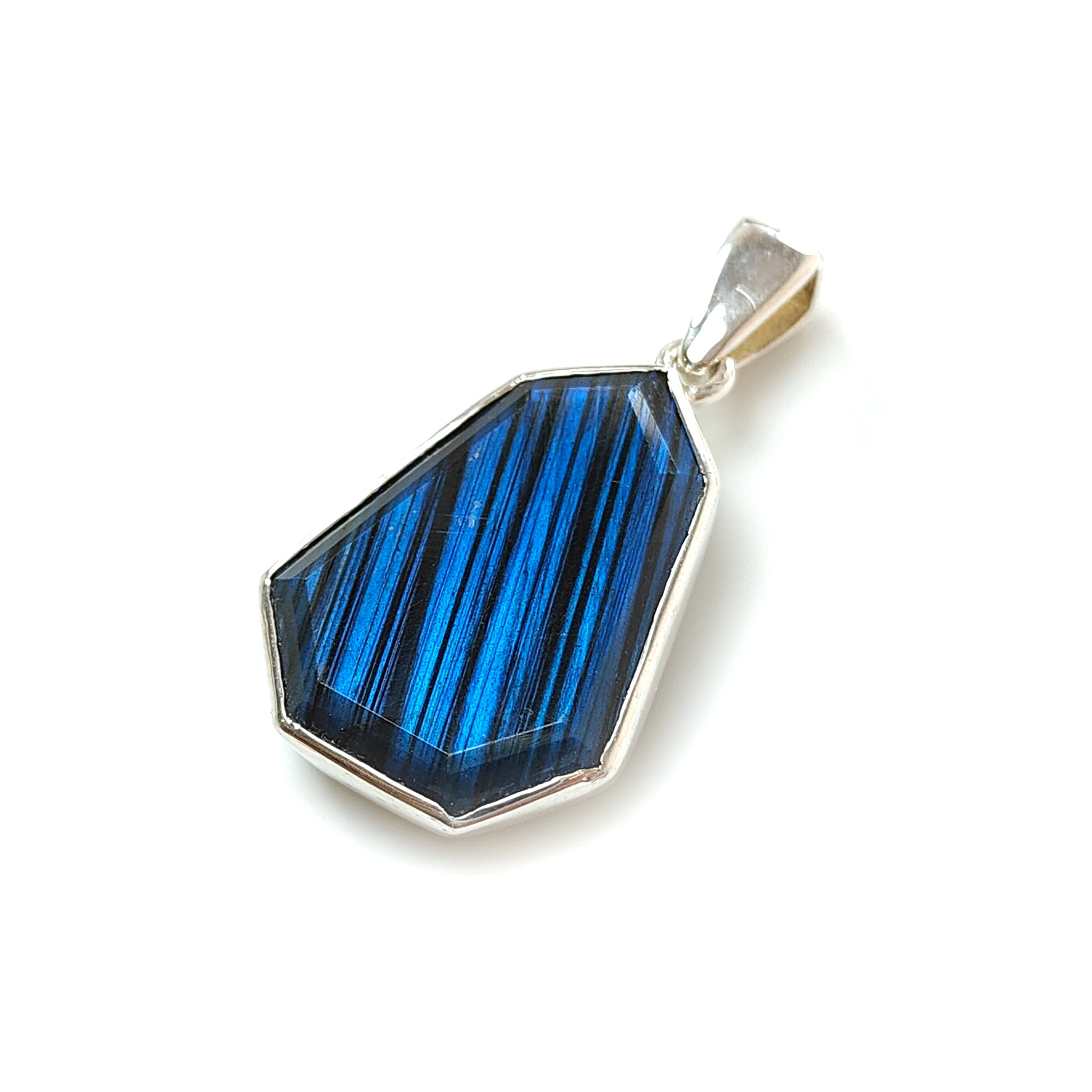 Blue Labradorite Faceted Silver Pendant: 8.62gms Natural Untreated Labradorite Fancy Shape 925 Sterling Silver Bezel Set Pendant 1.50"