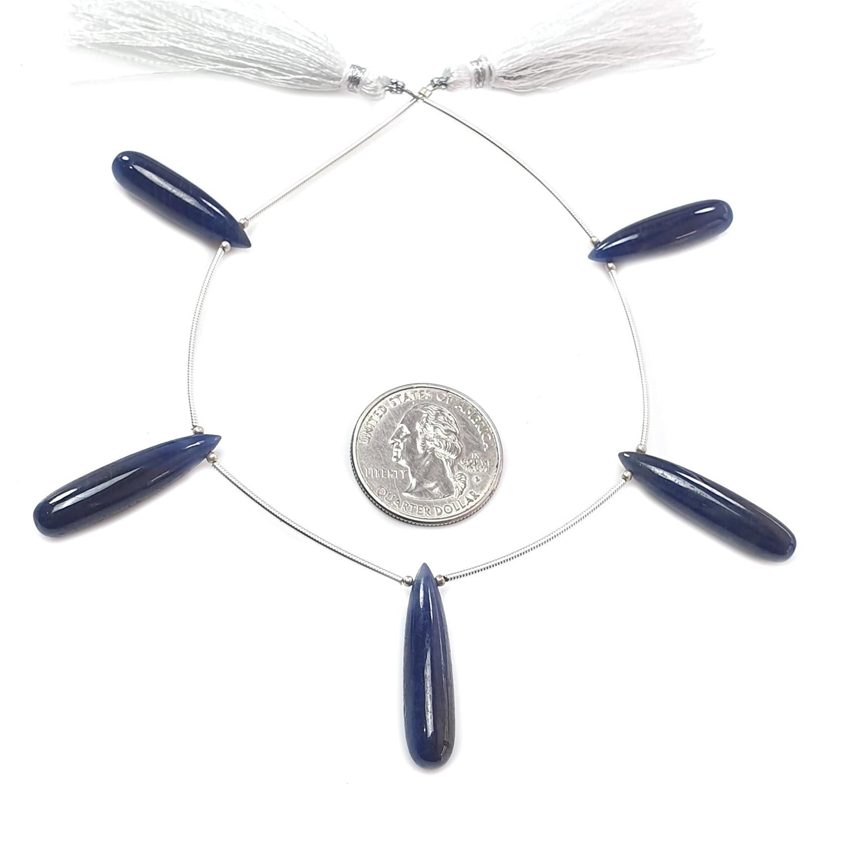 Blue Sapphire Smooth Loose Beads: 82.40cts Natural Untreated Sapphire Plain Teardrops 925 Silver Beads 27mm - 30mm September Birthstone