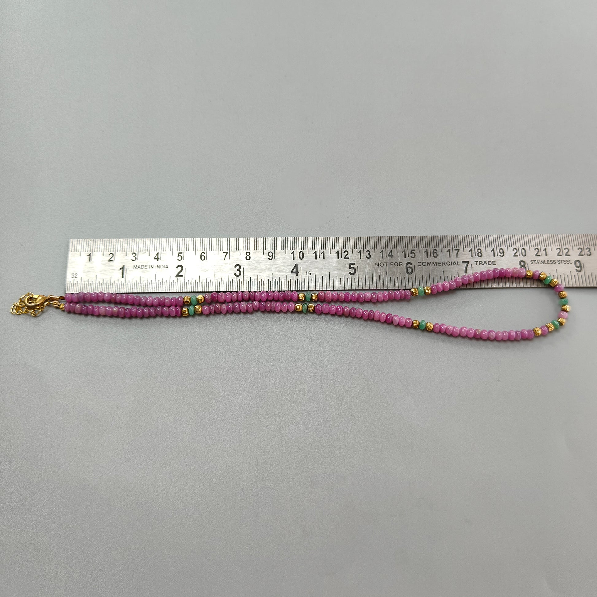 84.00cts Natural Pink Ruby & Emerald Plain Rondelle Brass Necklace 4.5mm 17"