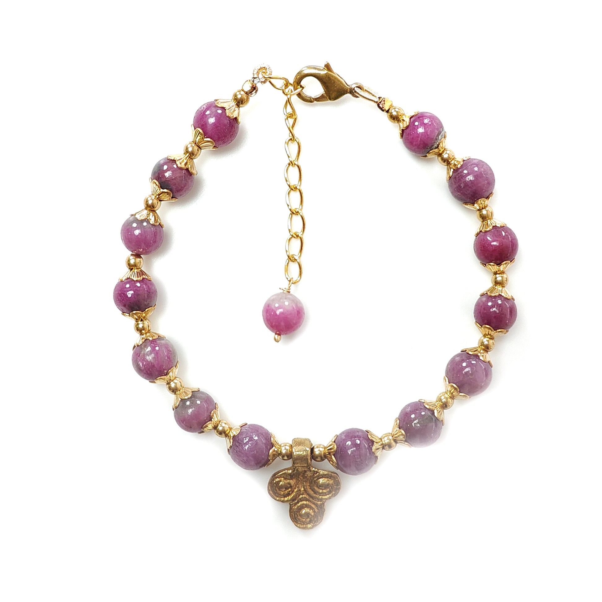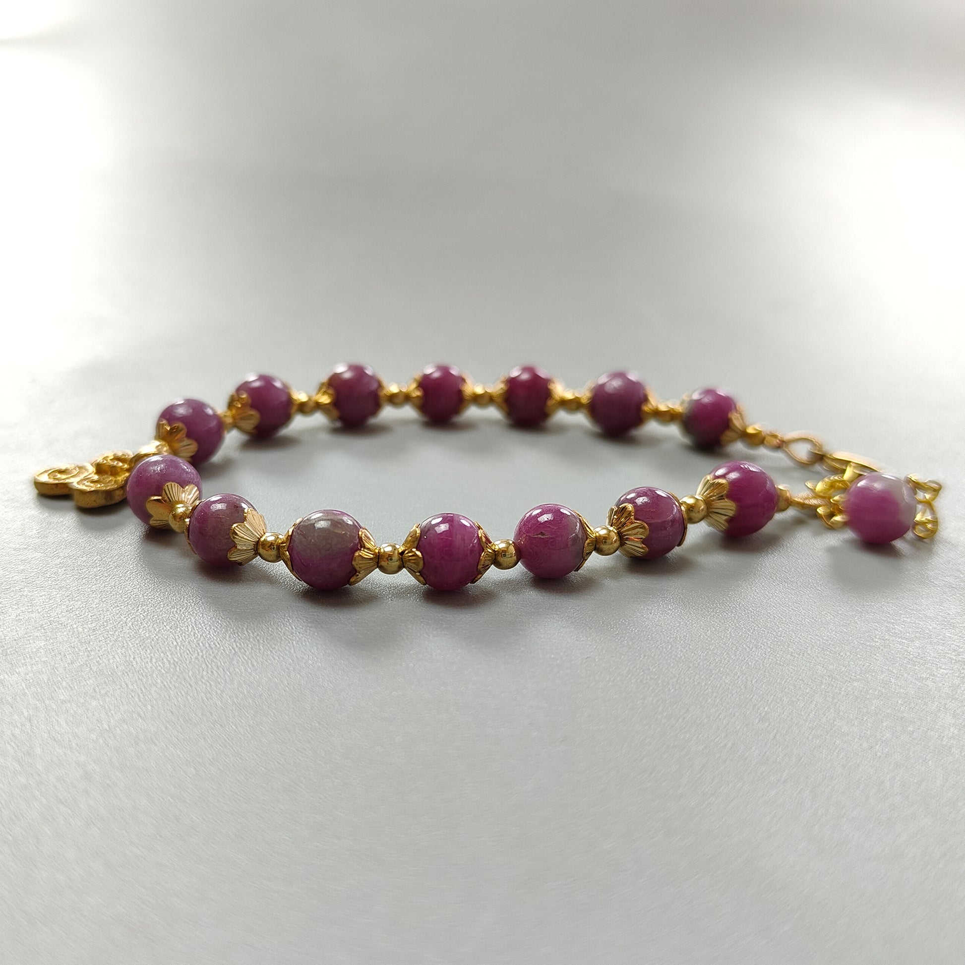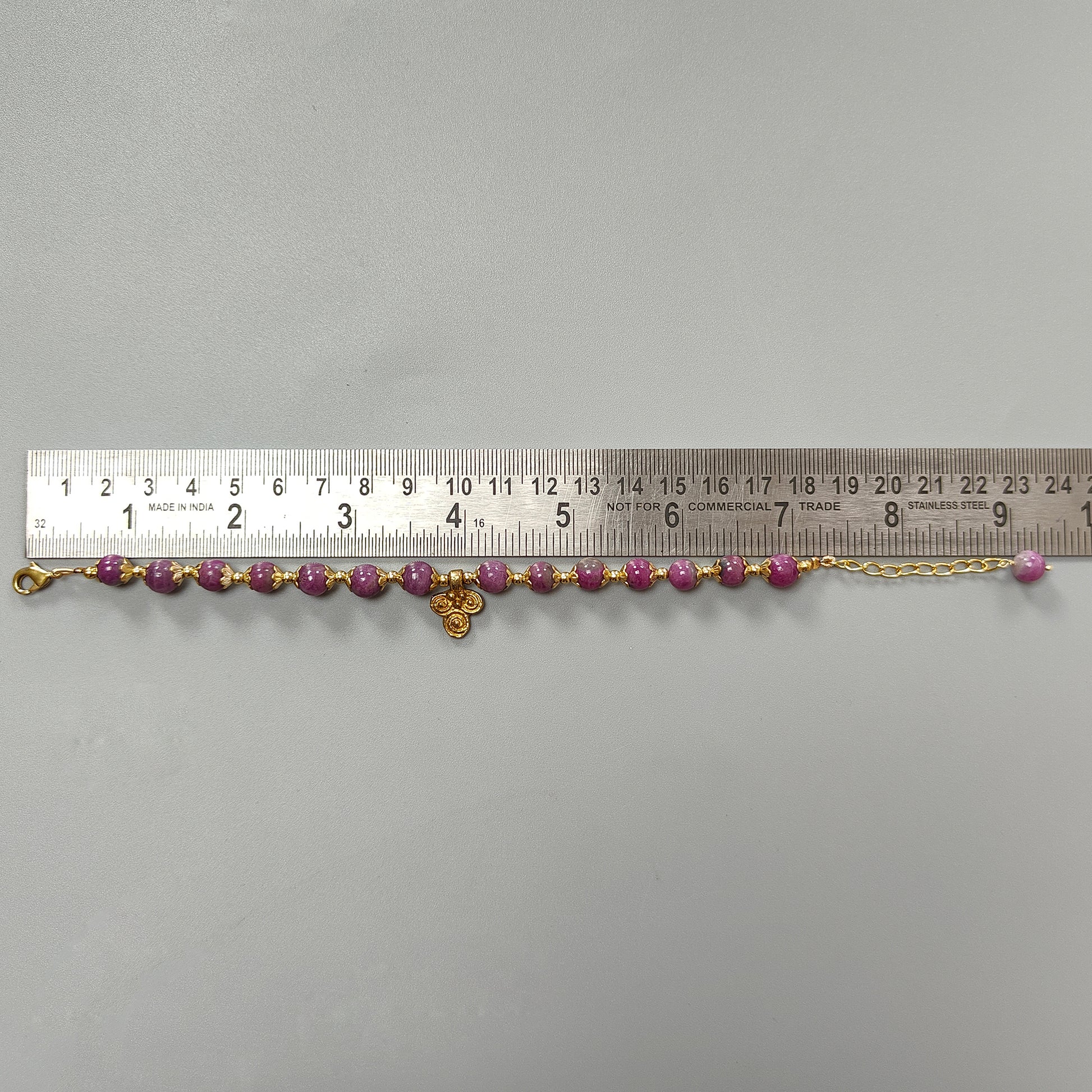 Zoisite Ruby Beads Bracelet: 84.55cts Natural Untreated Zoisite Ruby Round Plain Brass Bracelet 7mm 6.50"