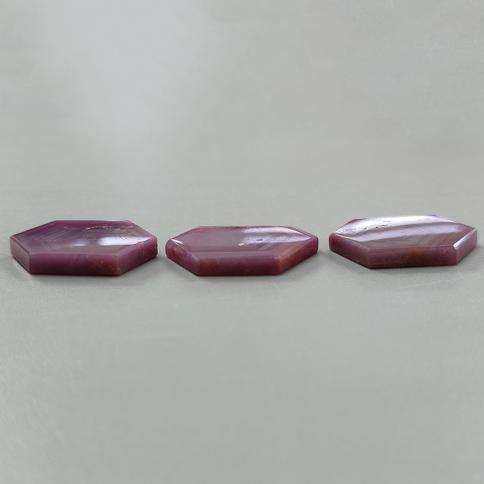 Rosemary Pink Sapphire Gemstone Flat Slices: 89.00cts Natural Untreated Sheen Sapphire Hexagon Shape 27*20mm - 28*19mm 3pcs Set for Jewelry