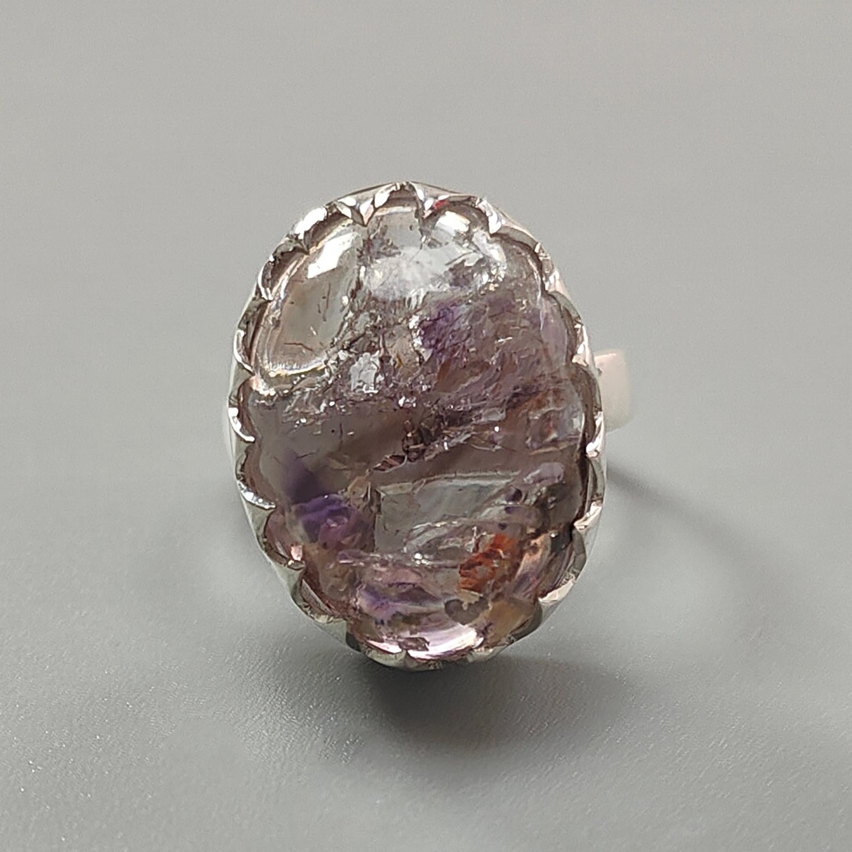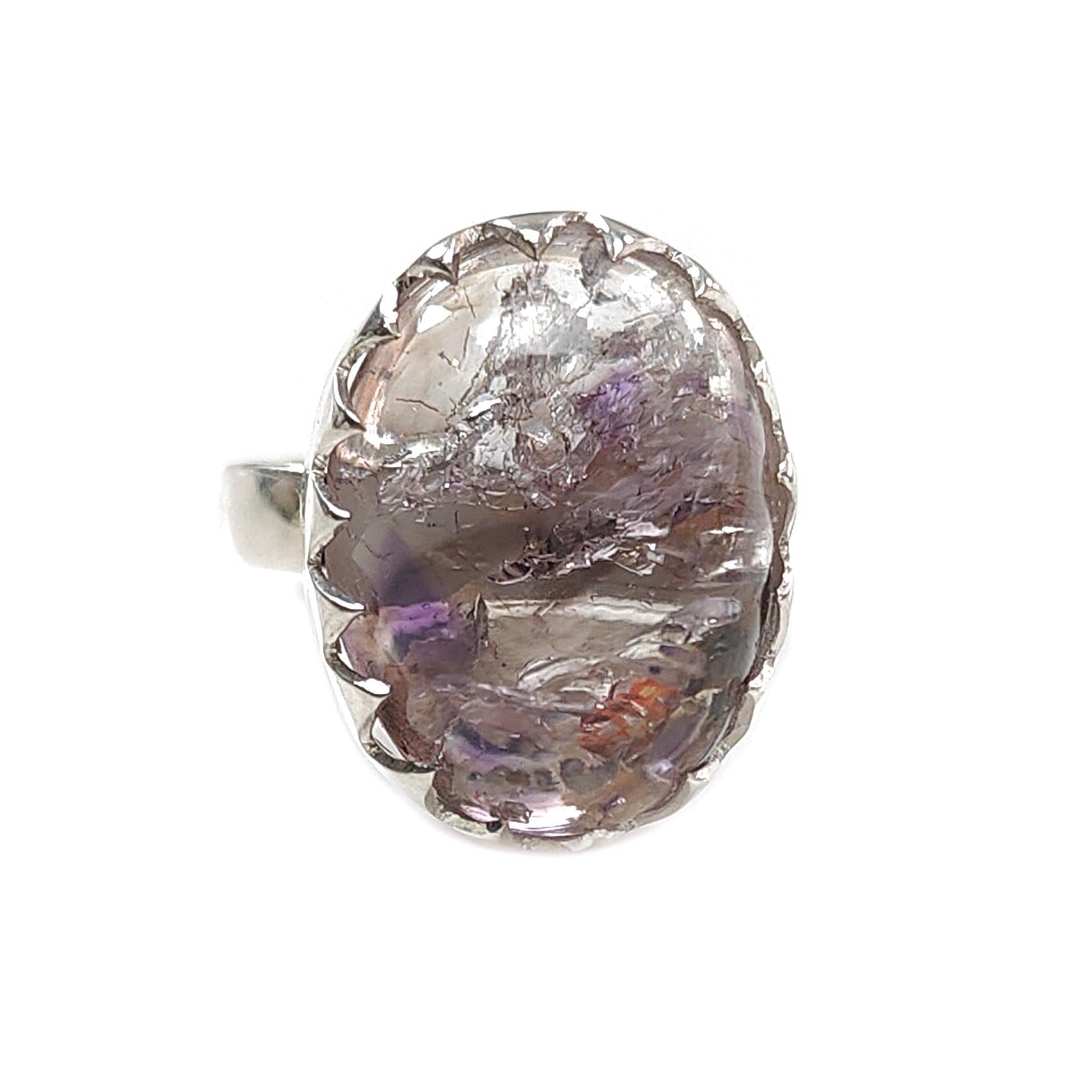Amethyst Plain Silver Ring: 9.37gms Natural Untreated Super Seven Amethyst Oval Shape Plain 925 Sterling Silver Bezel Set Adjustable Ring