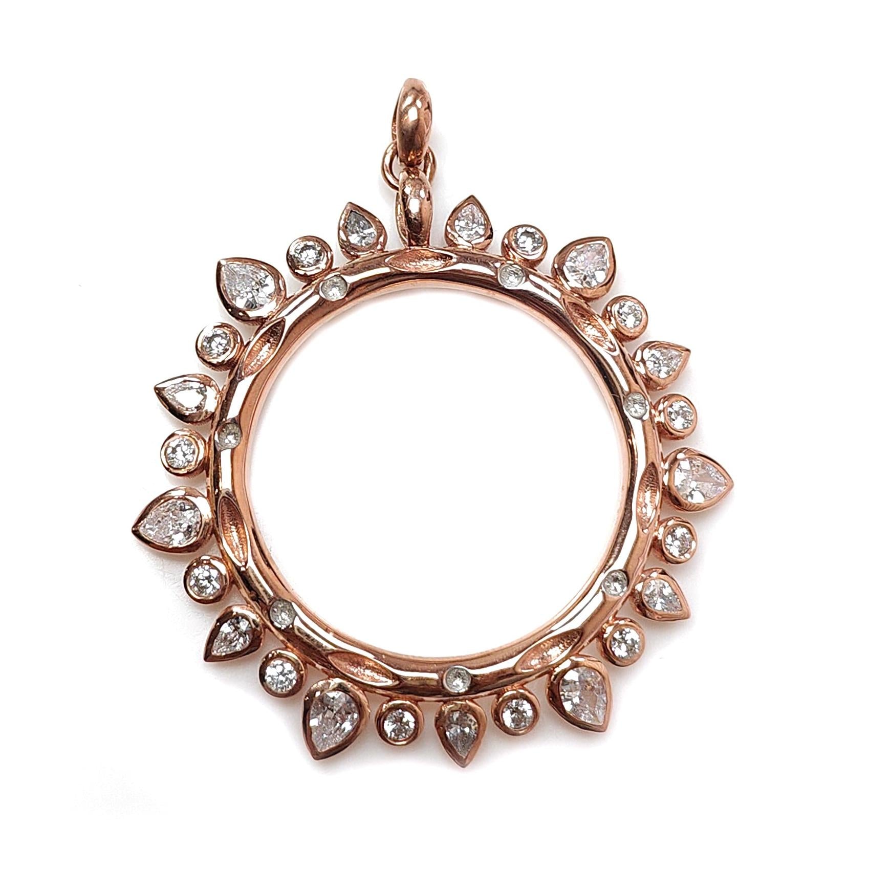 925 Sterling Silver Rose Gold Pendant: 8.20gms Fashion Round Cubic Zirconia Bezel Set Pendant with Normal Loop 1.75" Gift for Her