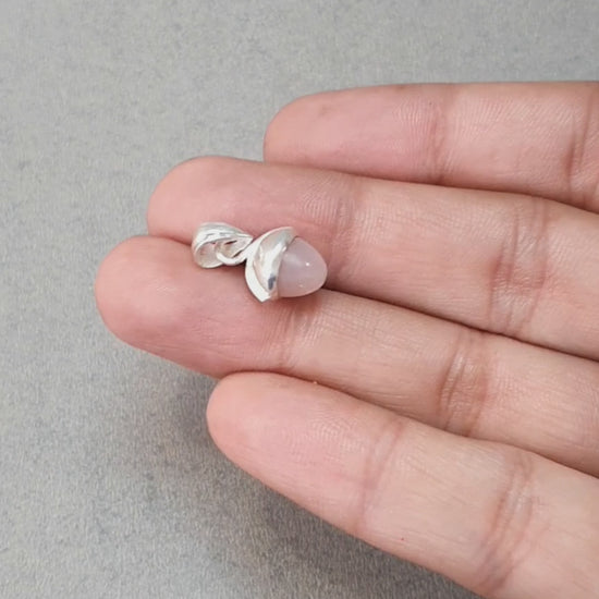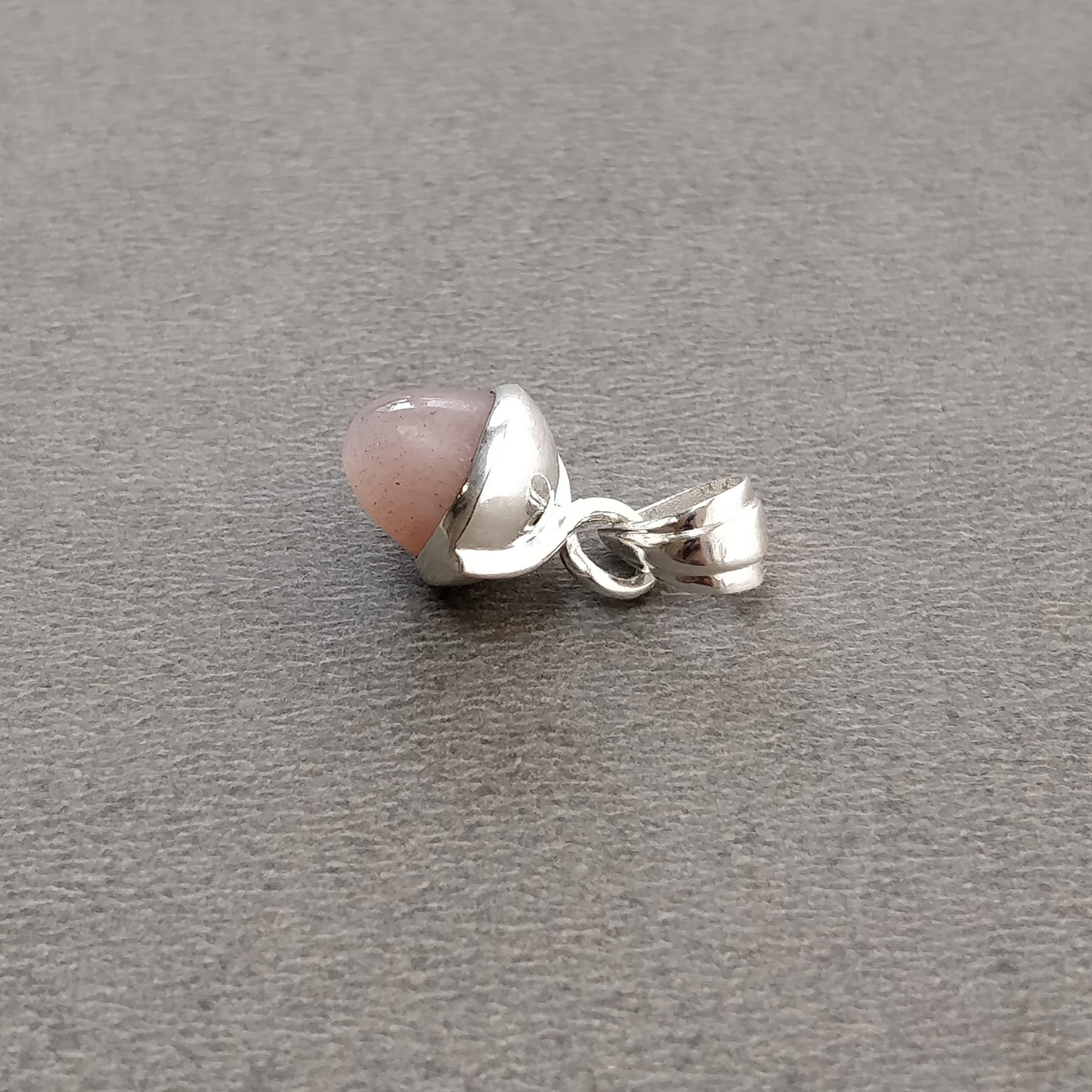 Peach Moonstone Gemstone 925 Sterling Silver Pendant : 2.02gms(Approx) Fashion Mini Size Bullet Pendant With Normal Loop 0.8" Gift For Her