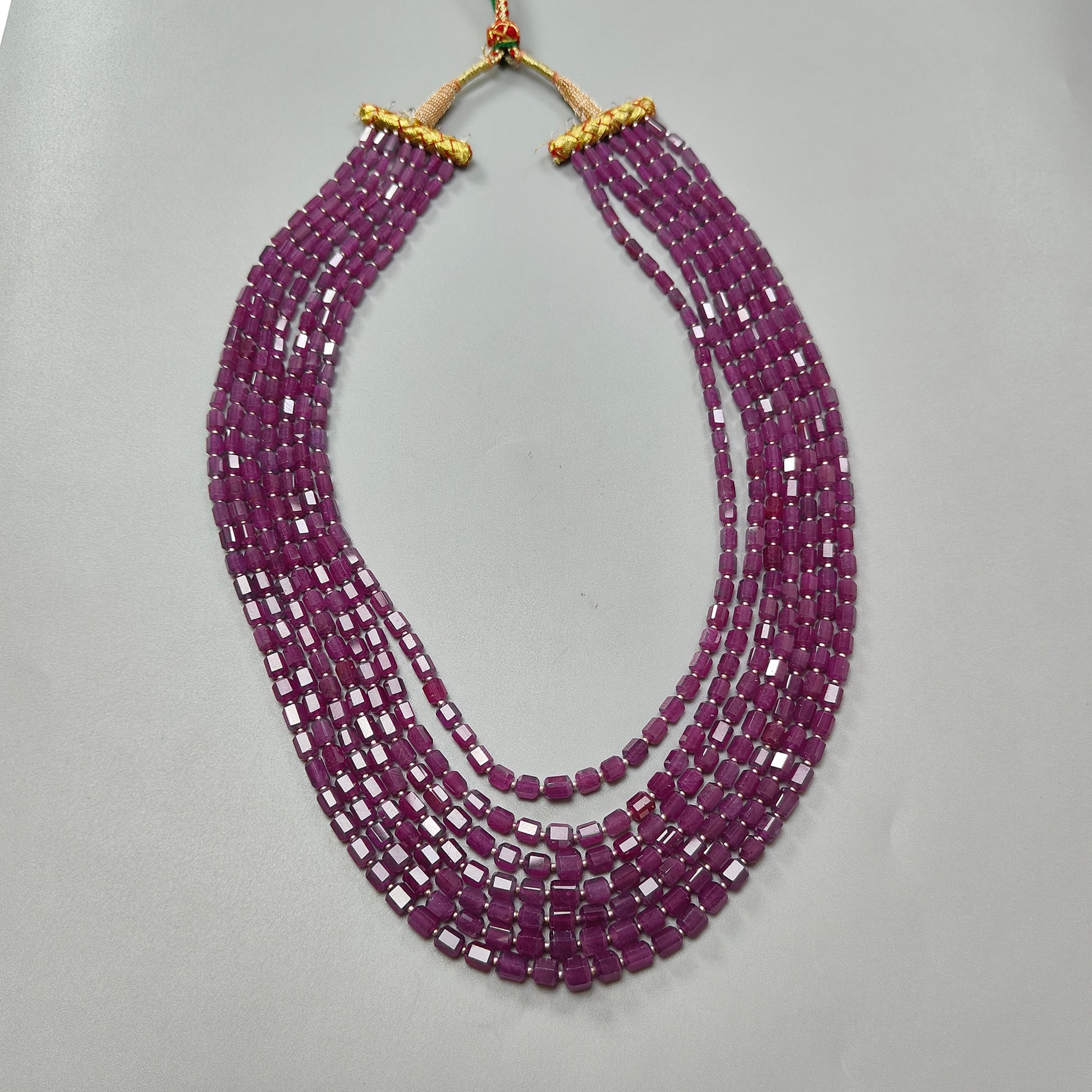 968.00cts Ruby Faceted Pencil Beads Natural Untreated Necklace 6mm - 7mm 24"