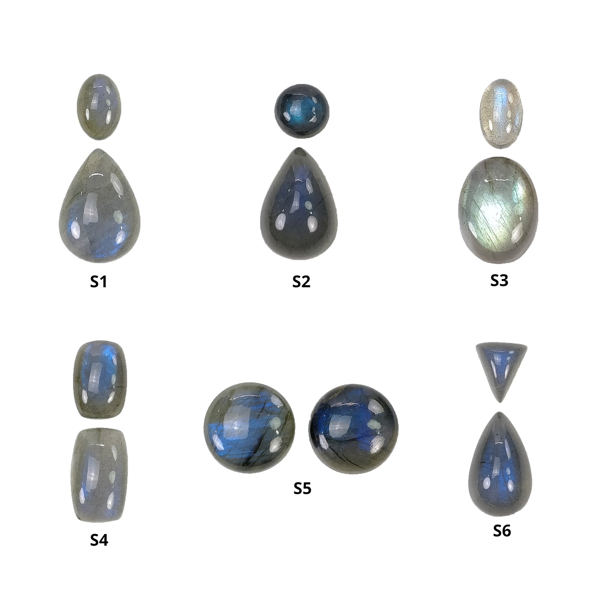 BLUE LABRADORITE Gemstone Cabochon : Natural Untreated Labradorite Oval Pear Round Cushion Shapes 2pcs