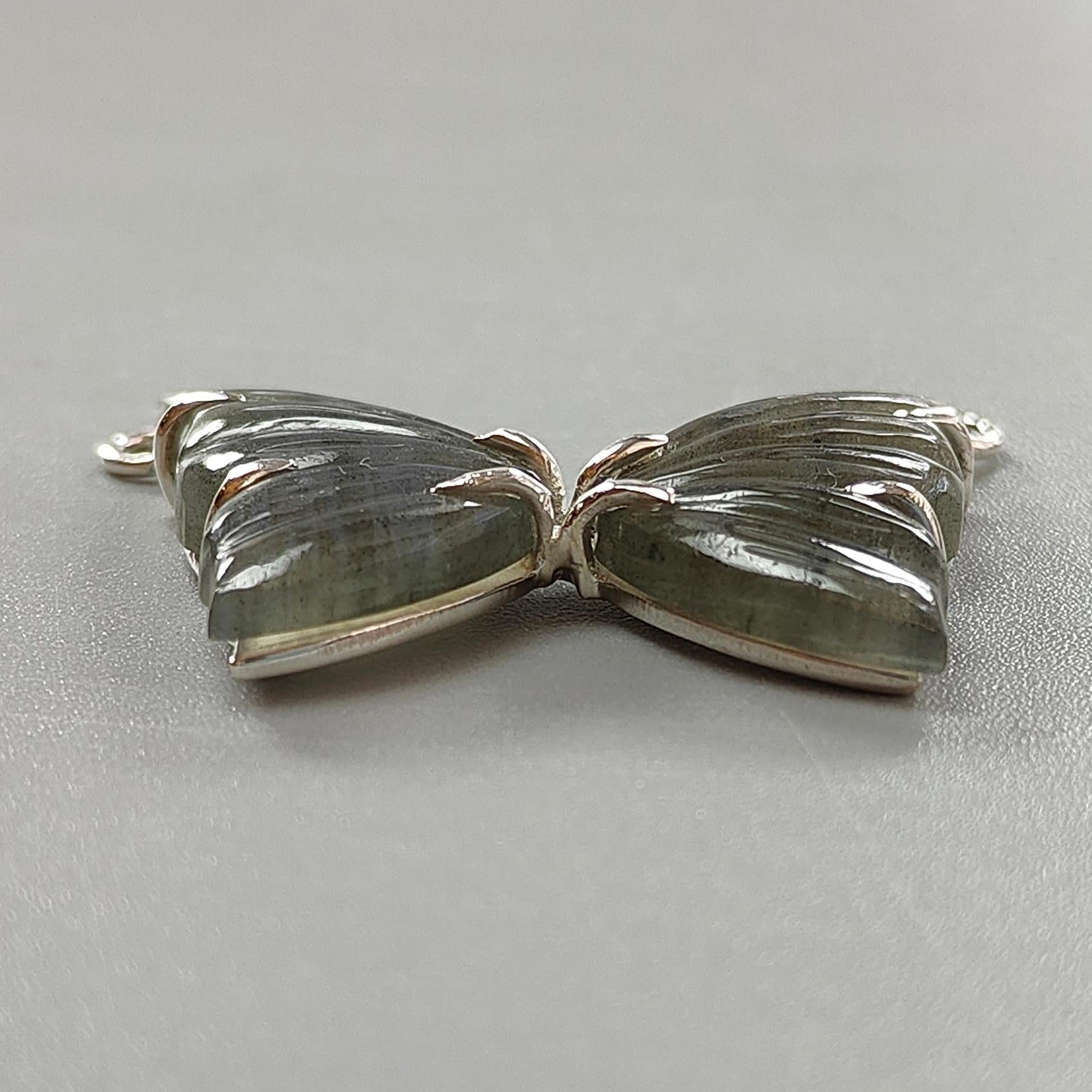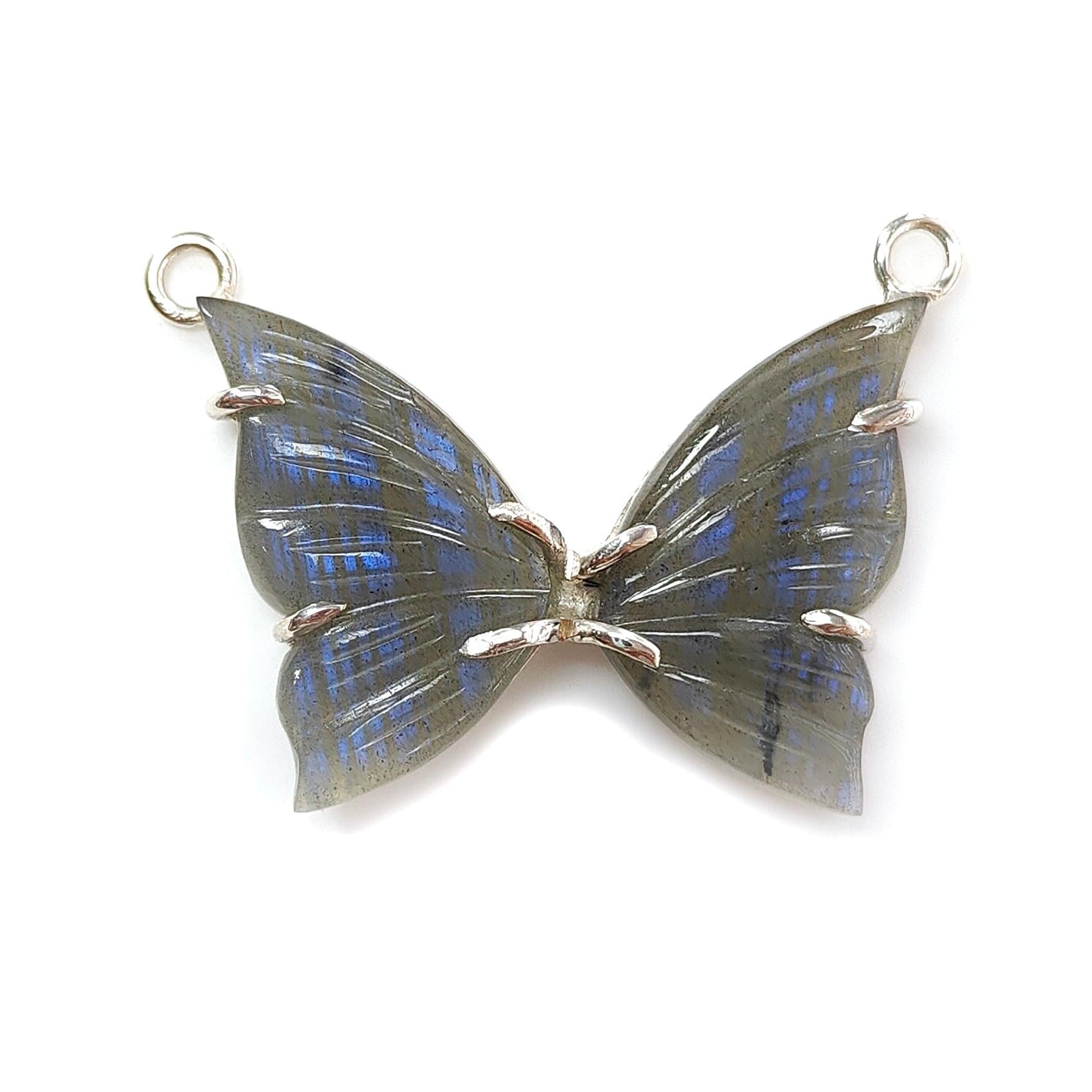 Blue Labradorite Silver Pendant: 6.2gms Natural Untreated Labradorite Butterfly Carving 925 Sterling Silver Prong Set Pendant 1.20"