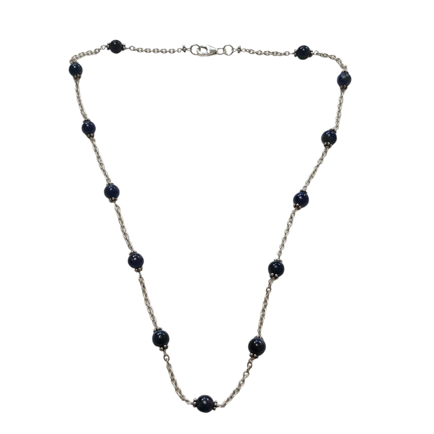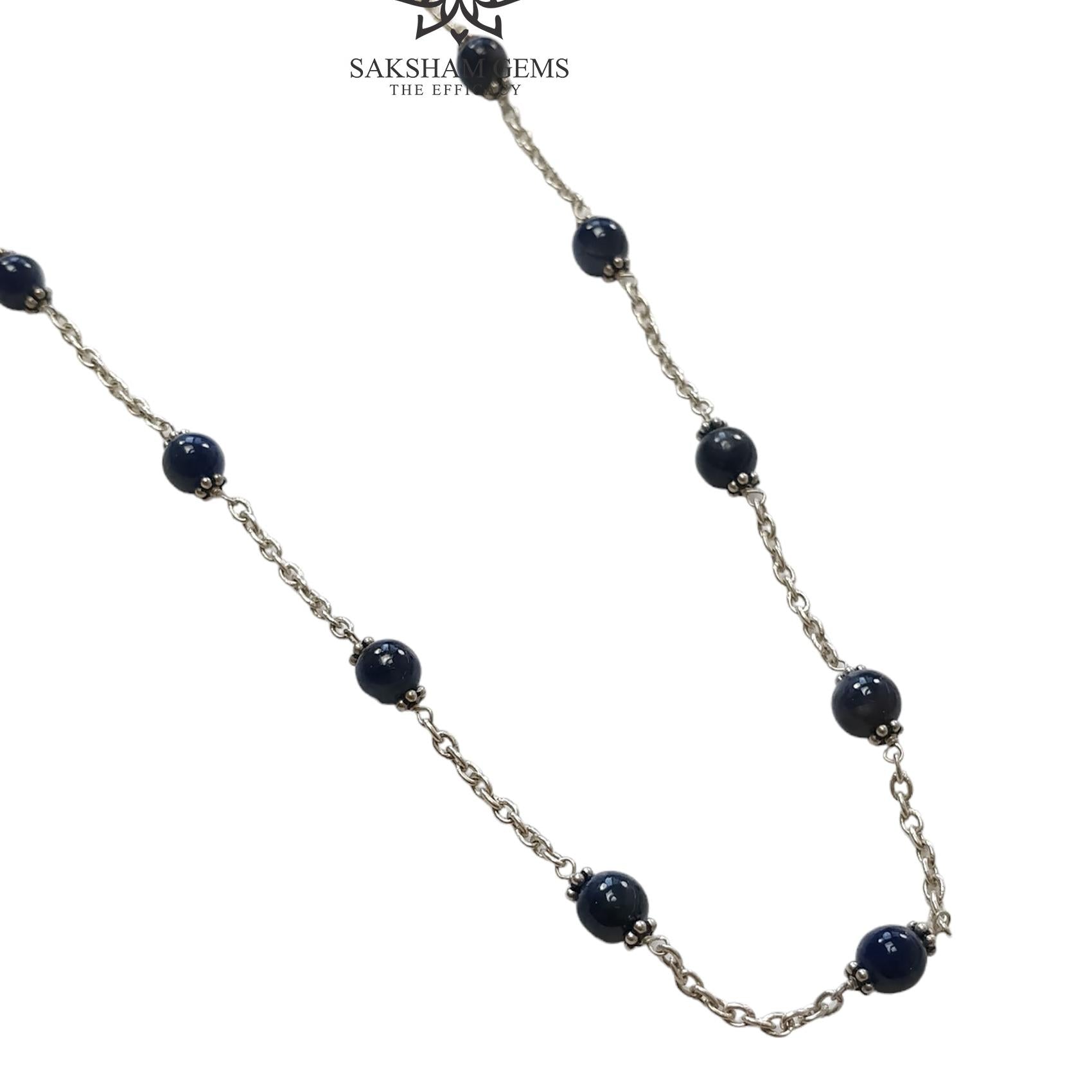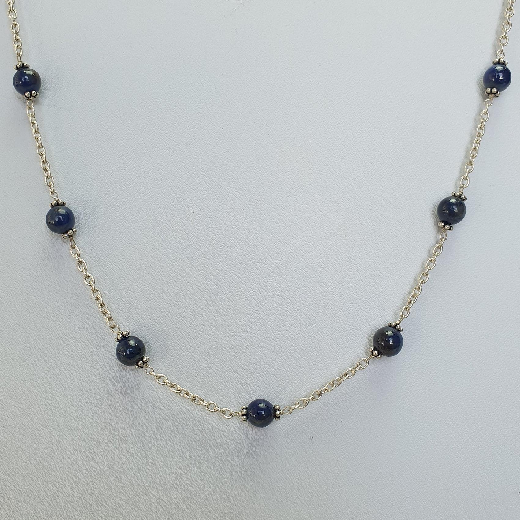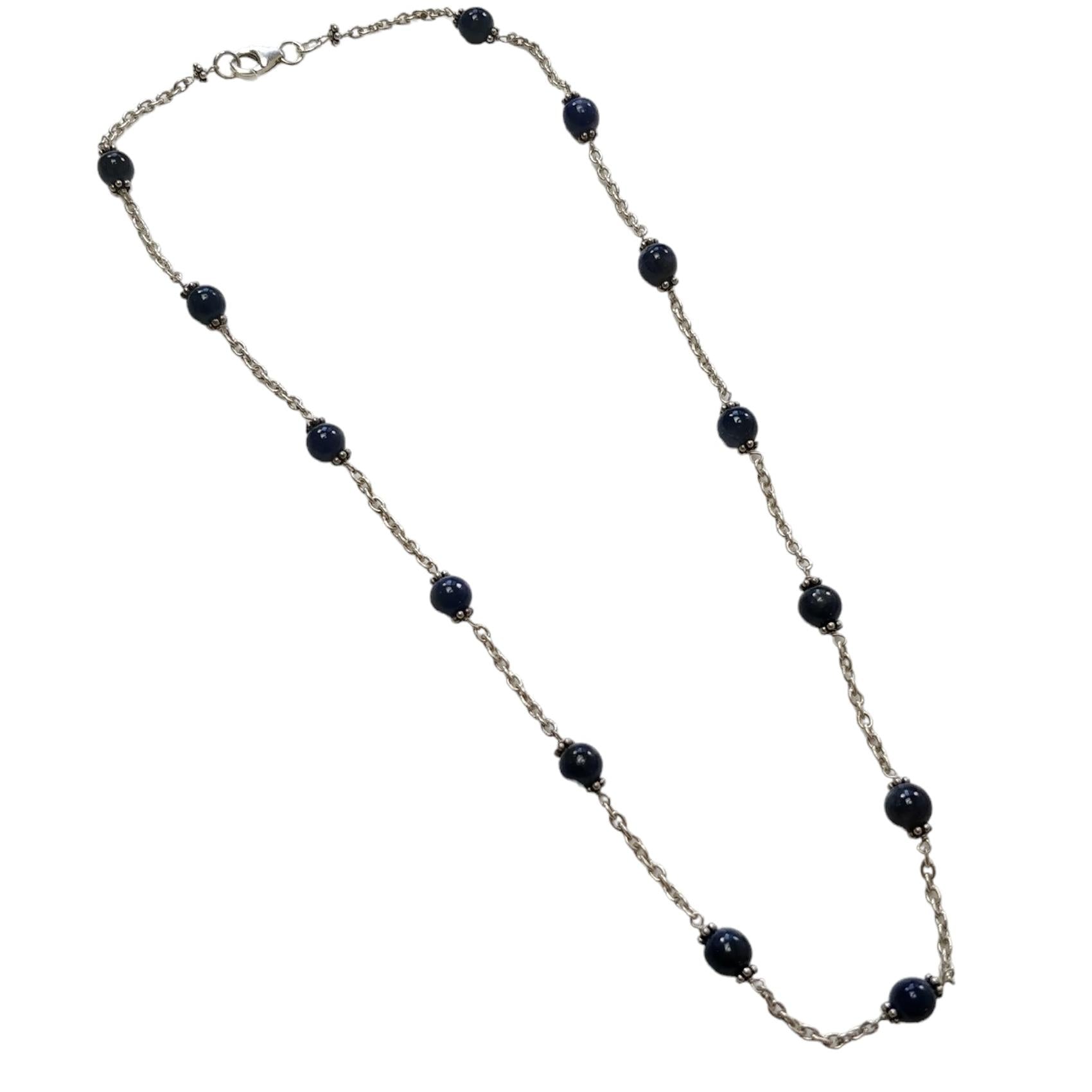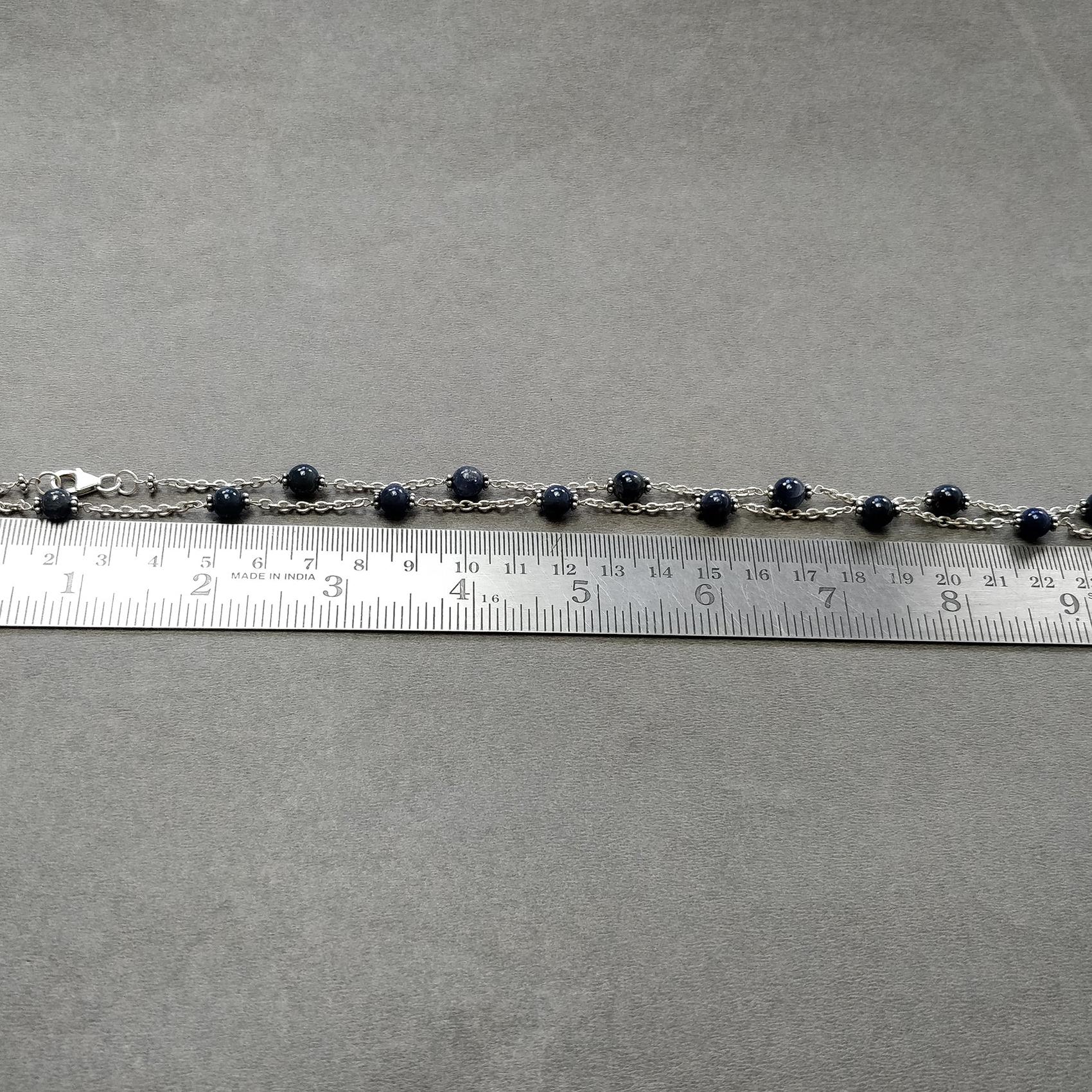 Blue Sapphire Gemstones Beads Chain NECKLACE : 13.82gms Natural Sapphire Cabochon 925 Sterling Silver Plain Beaded Necklace 19"