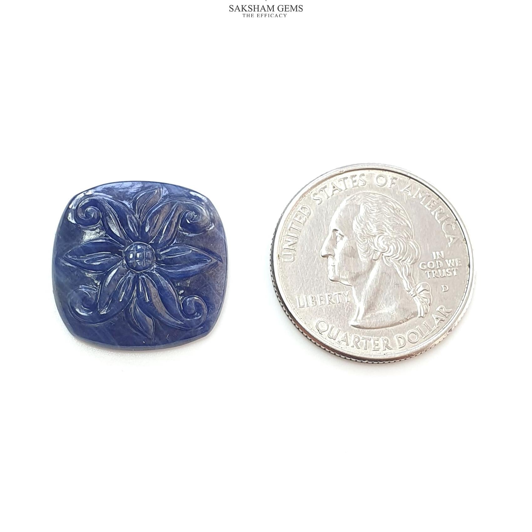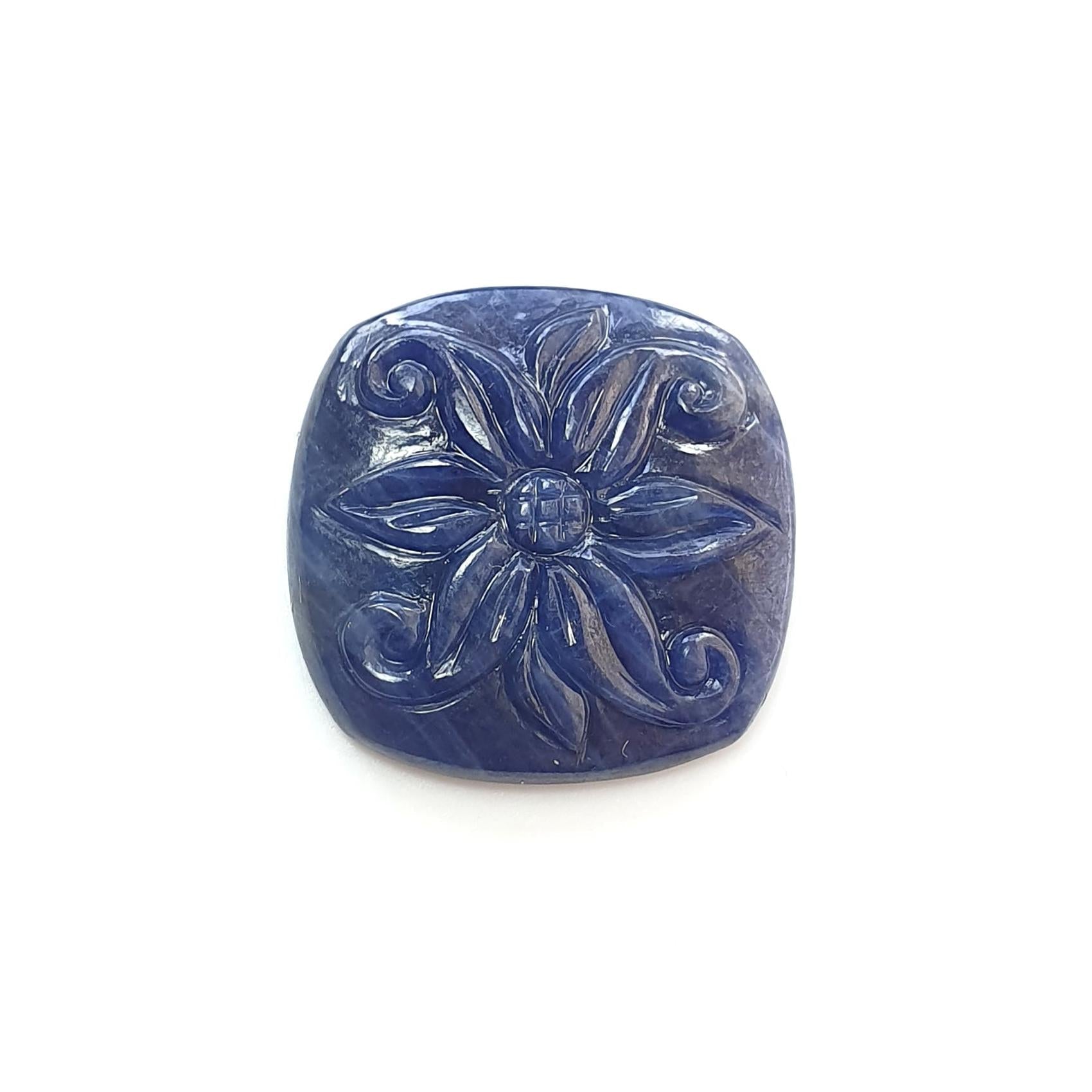 Blue Sapphire Gemstone Carving : 21.20cts Natural Untreated Unheated Sapphire Hand Carved Cushion Shape 20*23mm