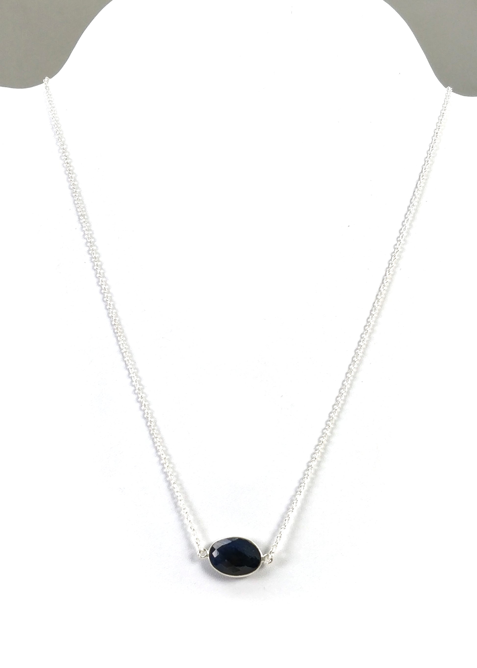 BLUE SAPPHIRE Gemstone Necklace : 18" 925 Sterling Silver Natural Sapphire Checker Cut Oval Shape Silver Chain Necklace For Women