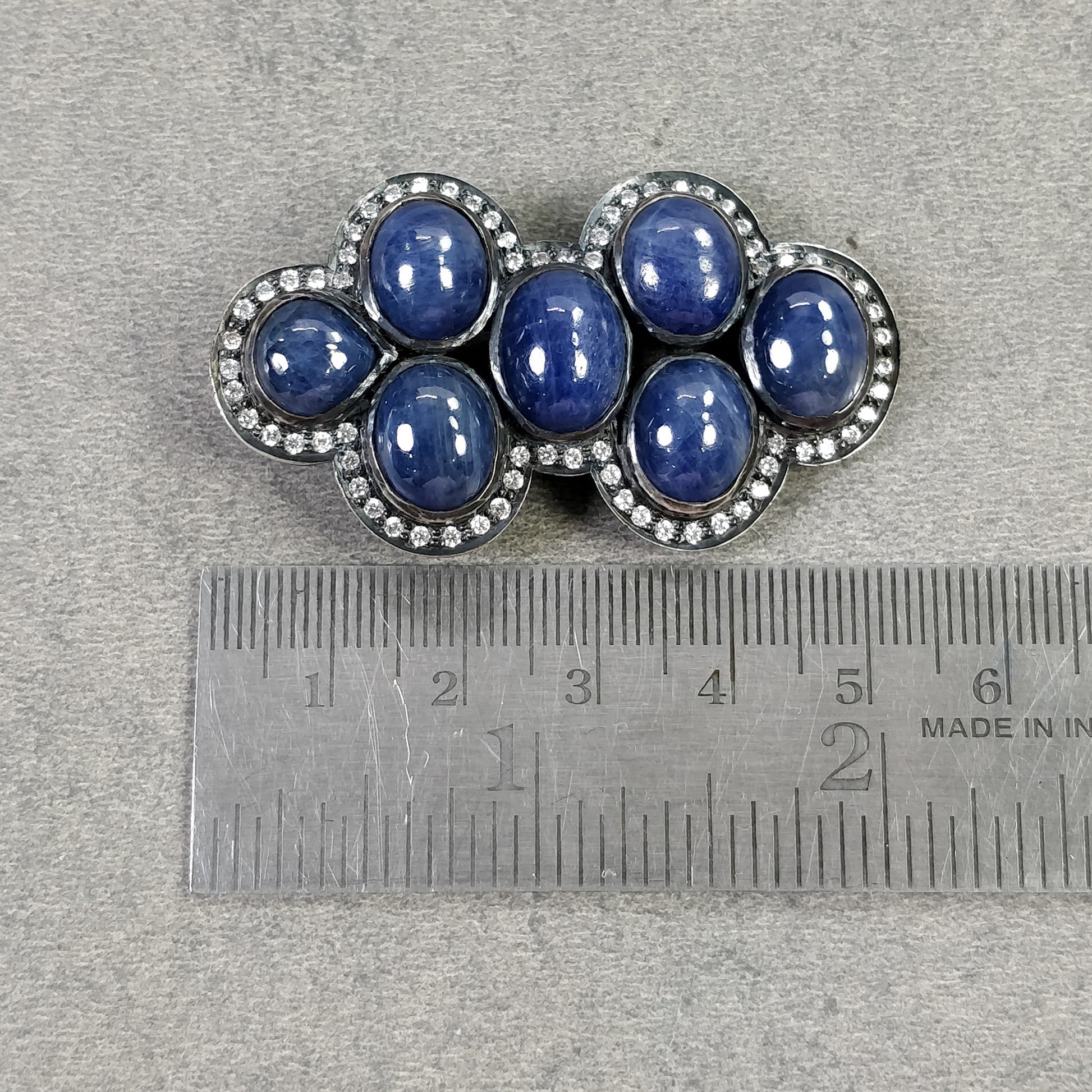 BLUE SAPPHIRE Gemstone With CZ Pendant: 18.130gms Natural Oval Cabochon 925 Sterling Silver Bezel Set Victorian Style Pendant 2"