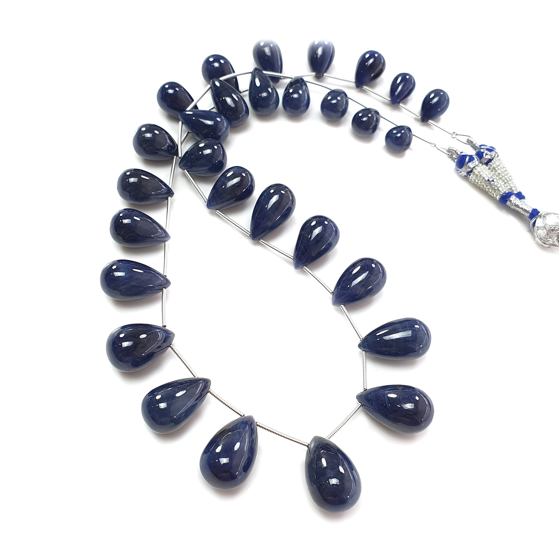 Blue Sapphire Plain Beads Necklace : 649.80cts Natural Sapphire Gemstone Plain Teardrop Beads Necklace 14mm - 22.5mm 20"