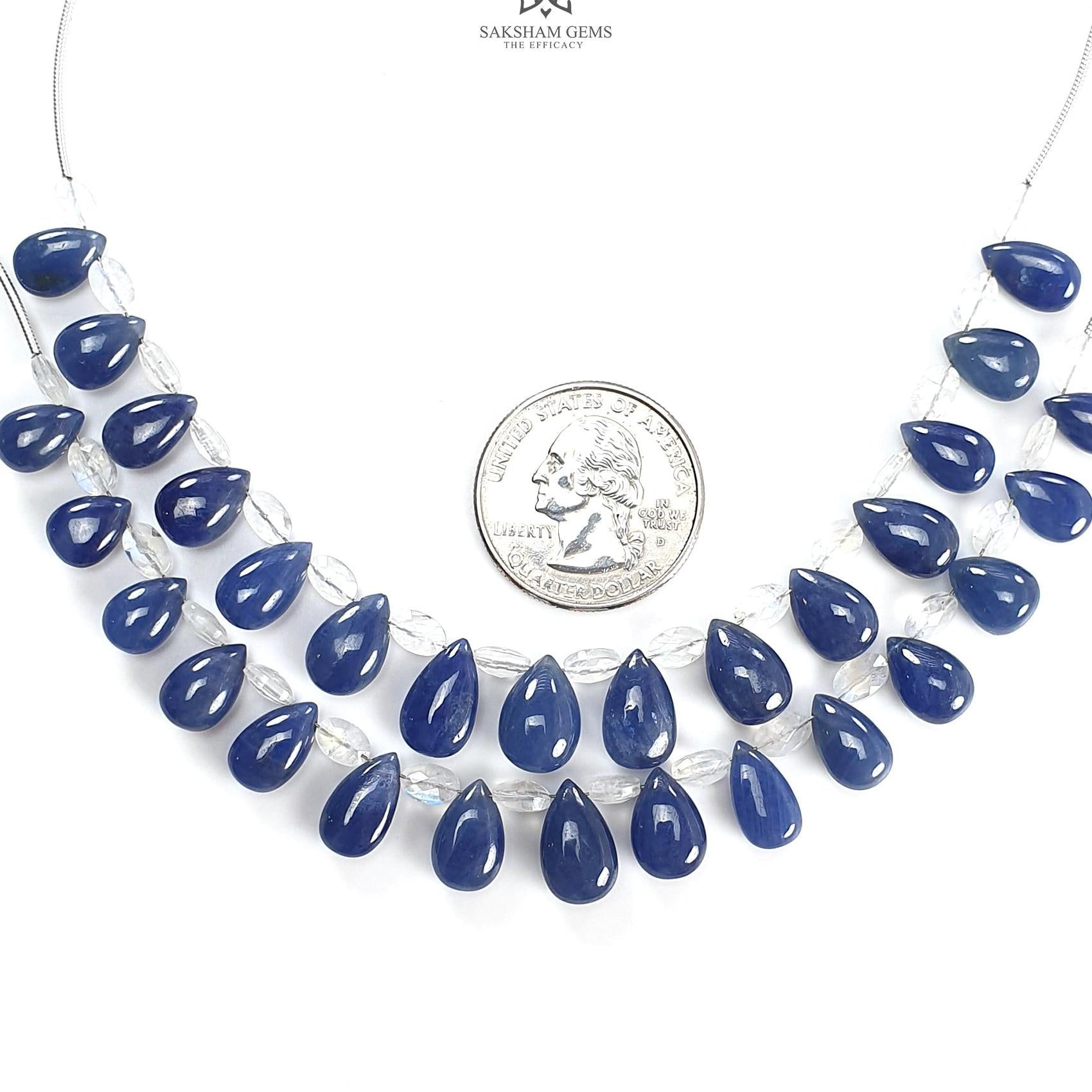 Blue Sapphire Rainbow Moonstone Plain Beads: 67.00cts (Apx) Natural Untreated Sapphire Plain Teardrop Oval 6" (Apx) Beads 9*6mm - 12*8mm