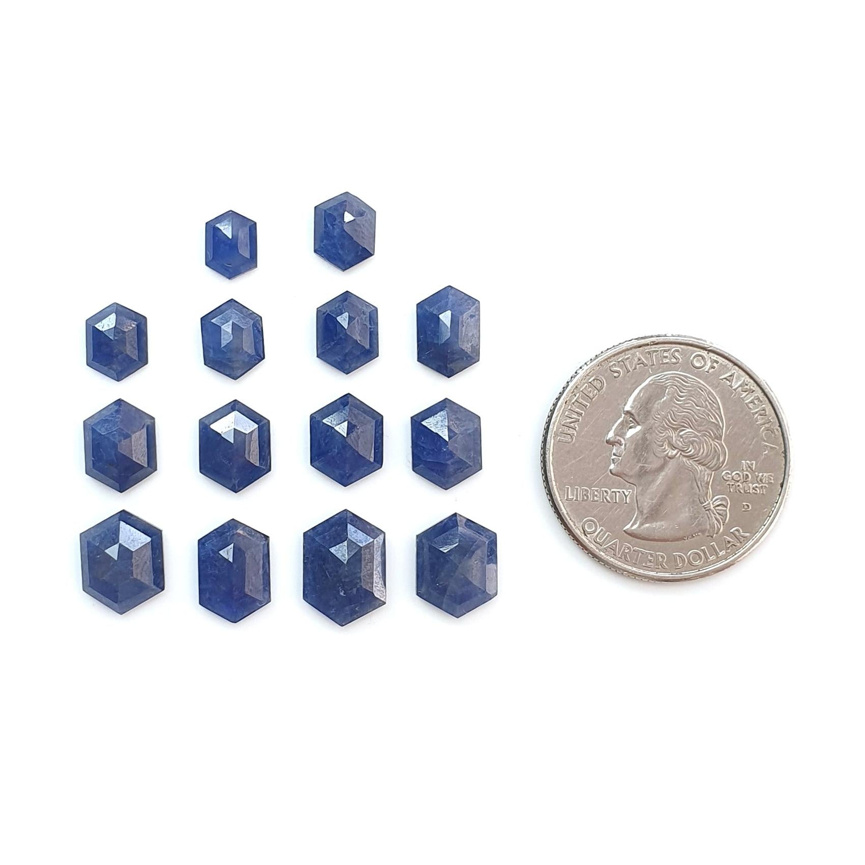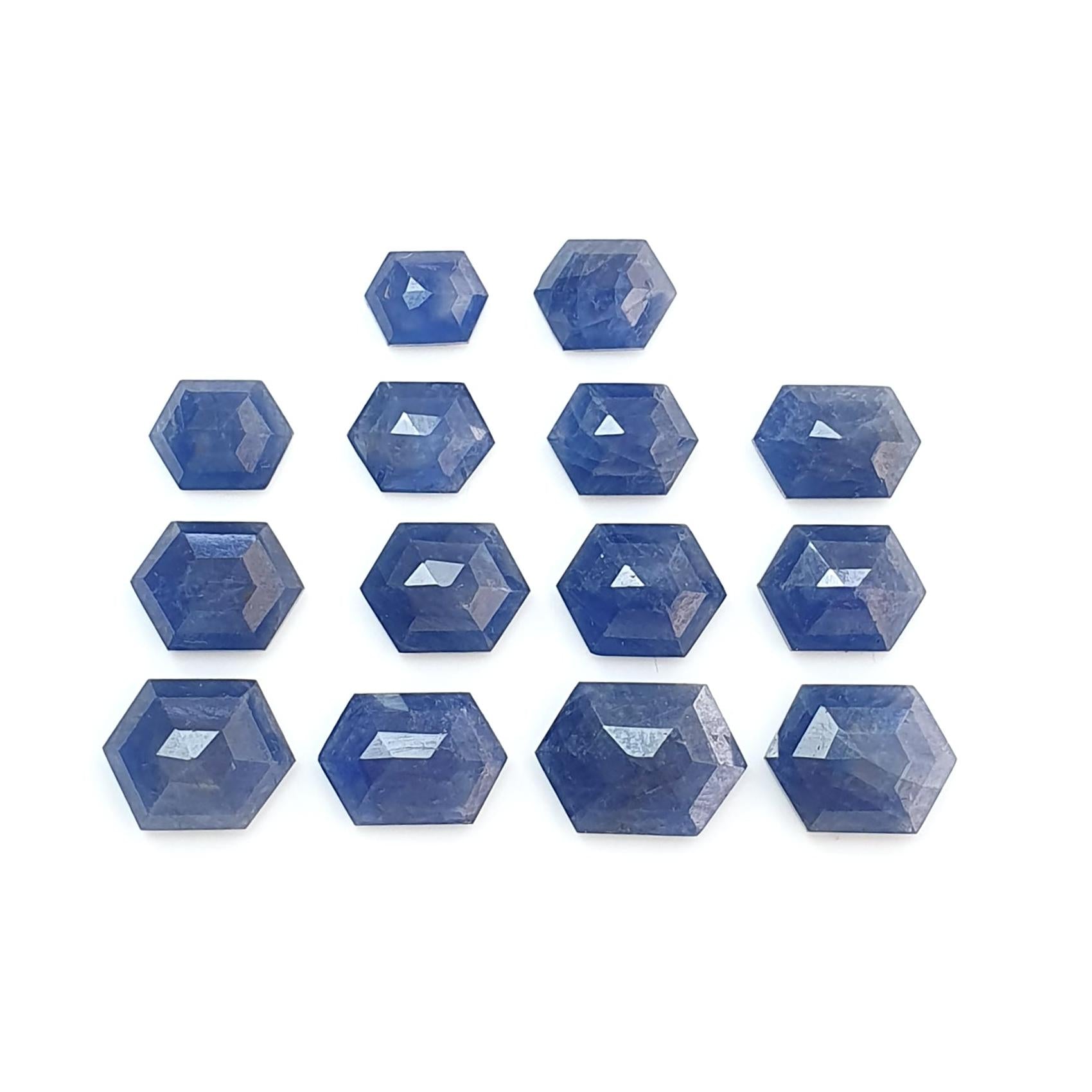 Blue Sapphire Gemstone Step Cut: 28.50cts Natural Untreated Sapphire Hexagon Shape Faceted 7*5mm - 11.5*8mm 14pcs Lot September Birthstone
