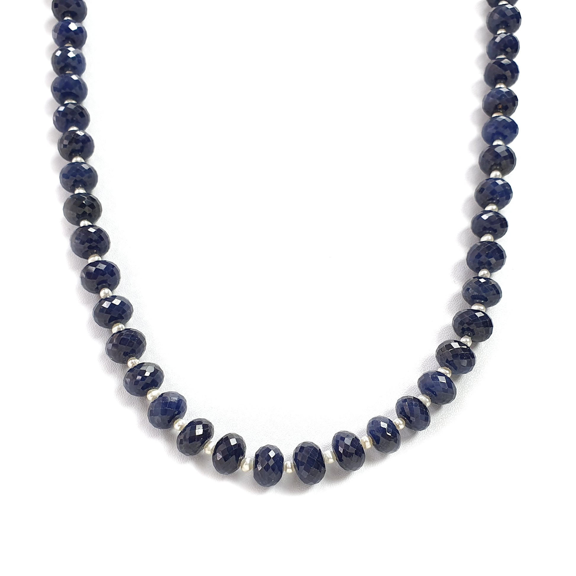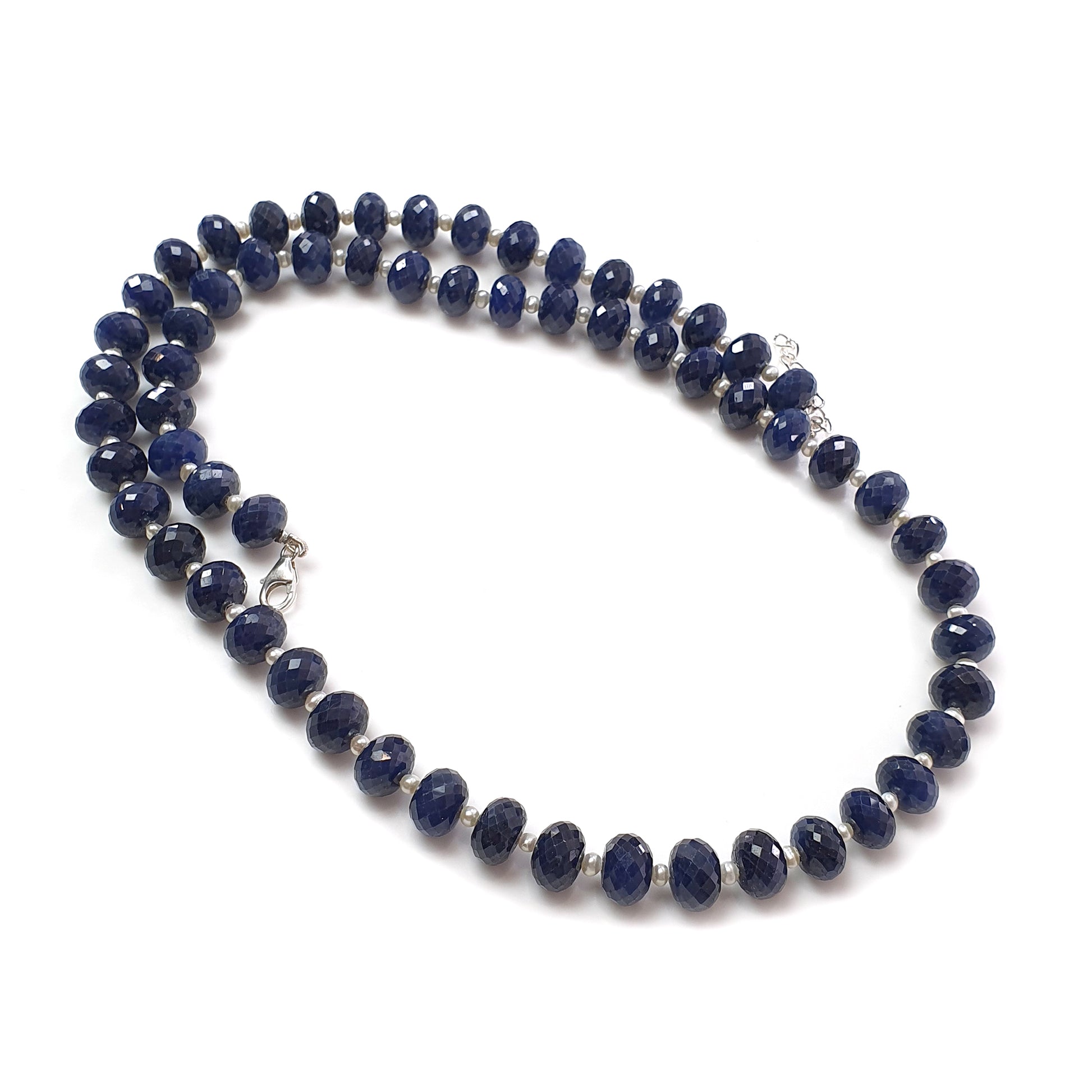 Blue Sapphire Faceted Beads Necklace : 481.40cts 925 Sterling Silver Natural Untreated Blue Sapphire Gemstone Rondelle Beads 10mm 23"