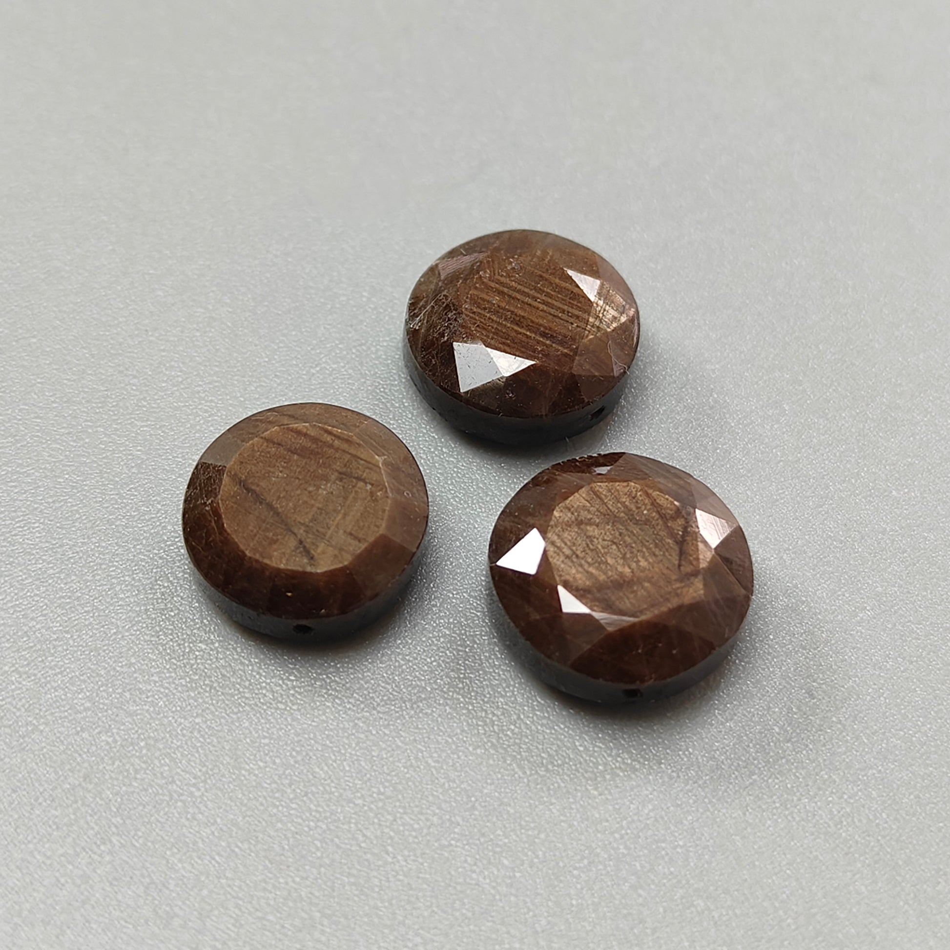 Chocolate Sapphire Gemstone Faceted Cut: 21.30cts Natural Untreated Golden Brown Sapphire Both side Faceted Round Shape 11mm 3pcs Set