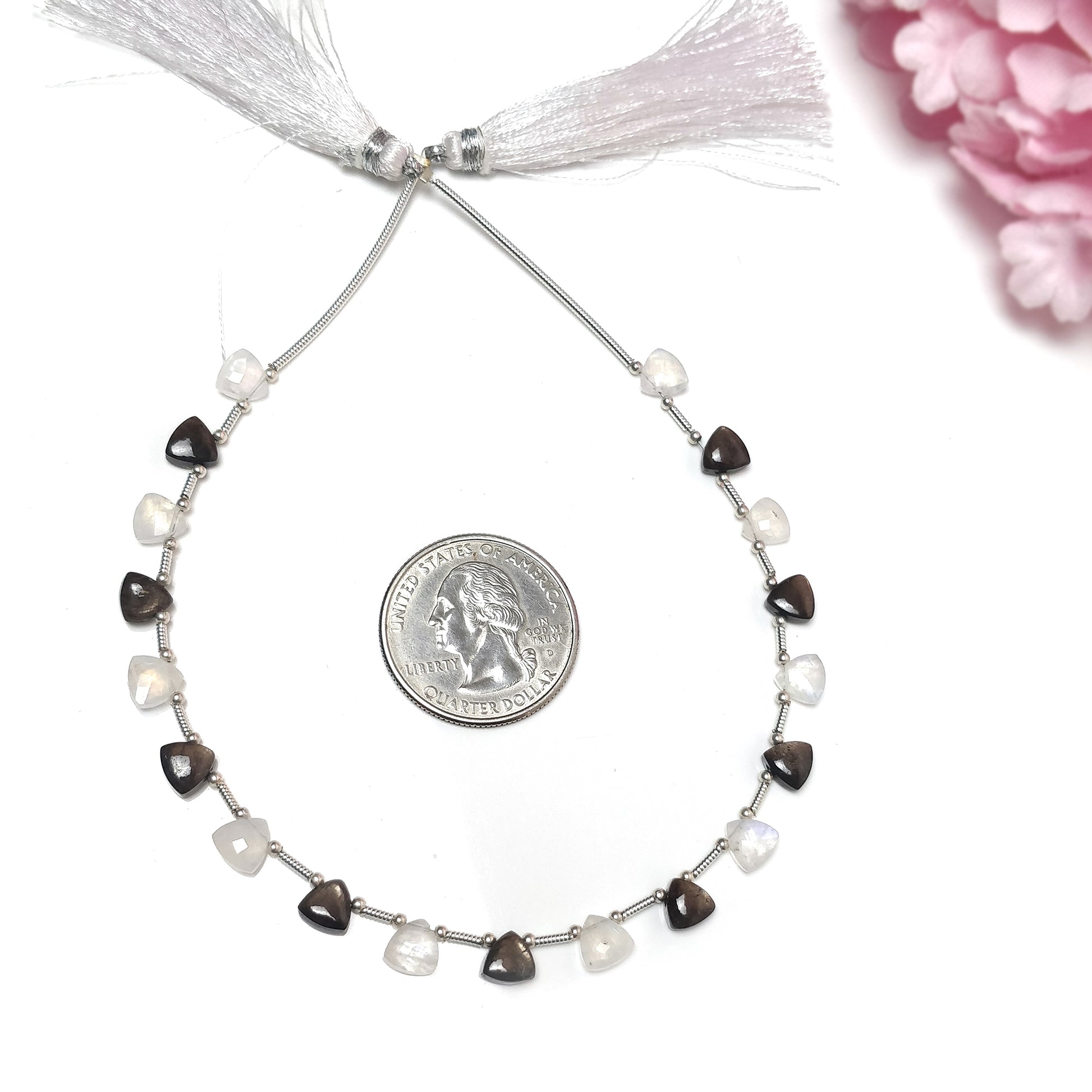 Chocolate Sapphire & Rainbow Moonstone Gemstone Cabochon And Checker Cut Loose Beads : 21.00cts(Approx) Natural Triangle Plain Nuggets 6mm