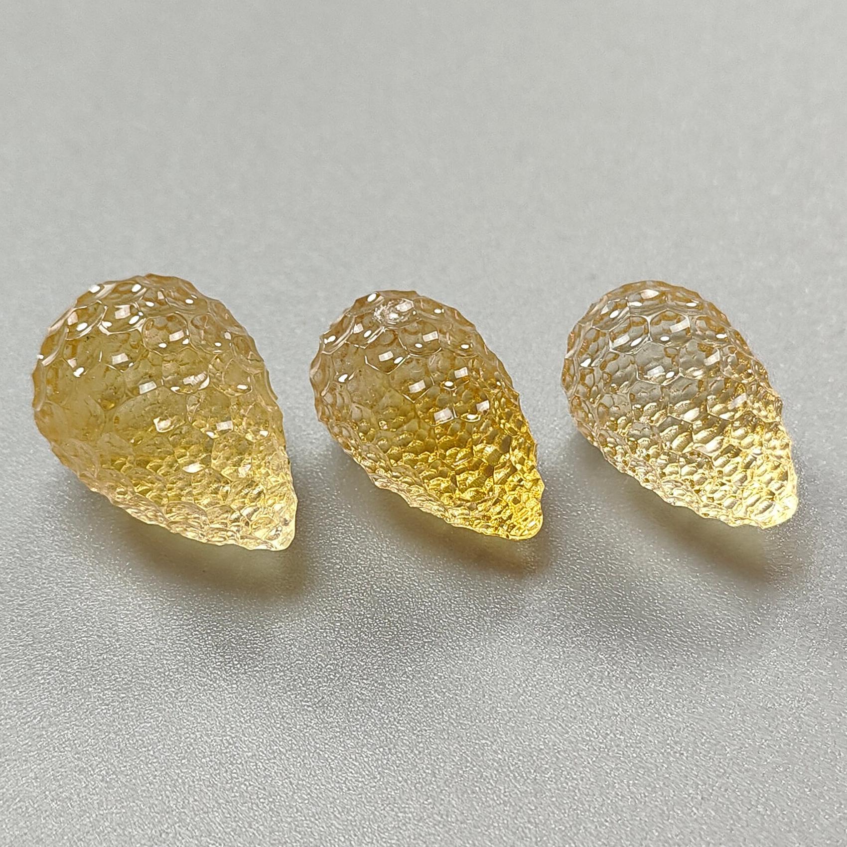 Citrine Gemstone Carving: 64.60cts Natural Untreated Yellow Citrine Hand Carved Teardrops Shape 21mm - 22mm 3pcs Set November Birthstone