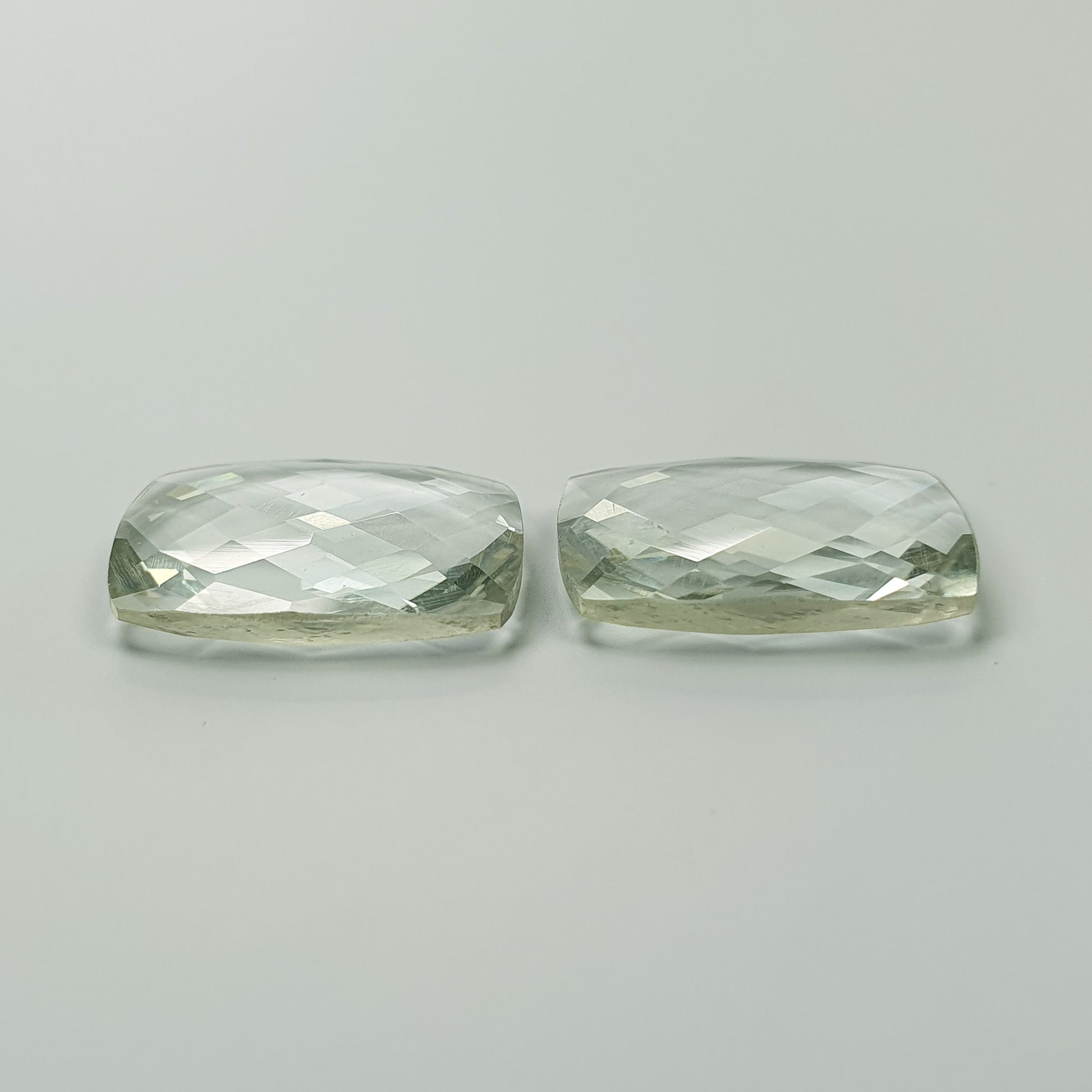 Green PRASIOLITE AMETHYST Gemstone Checker Cut : 10.00cts Natural Untreated Amethyst Cushion Shape Briolette 15*11mm Pair (With Video)