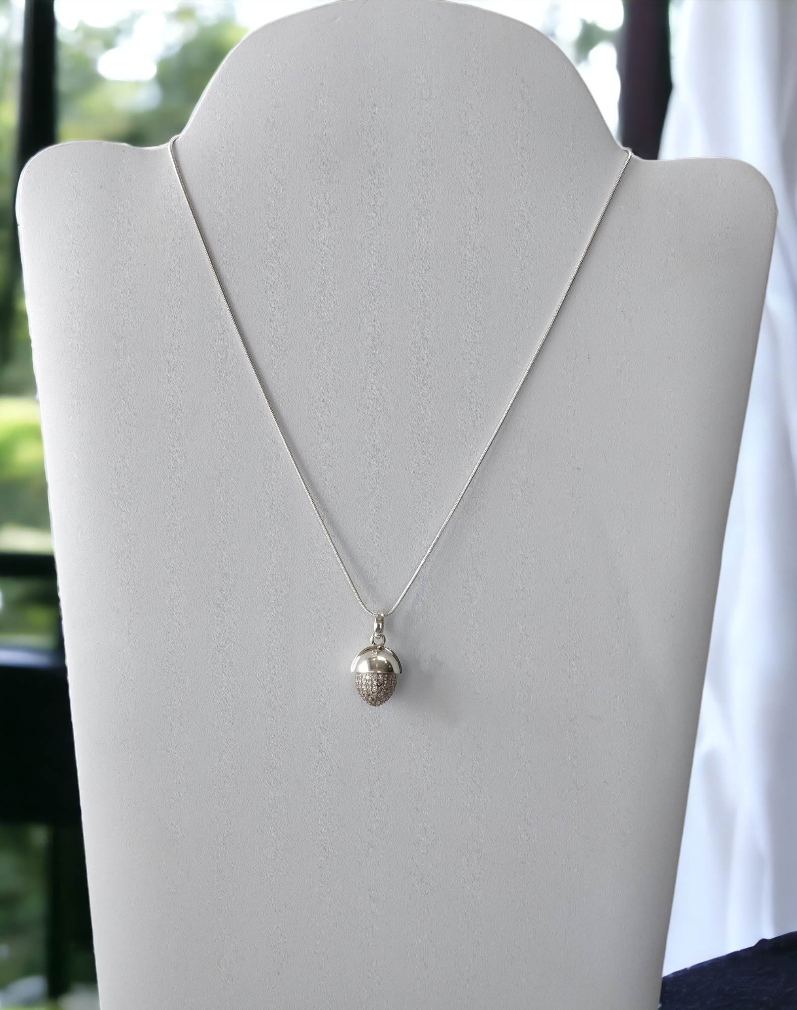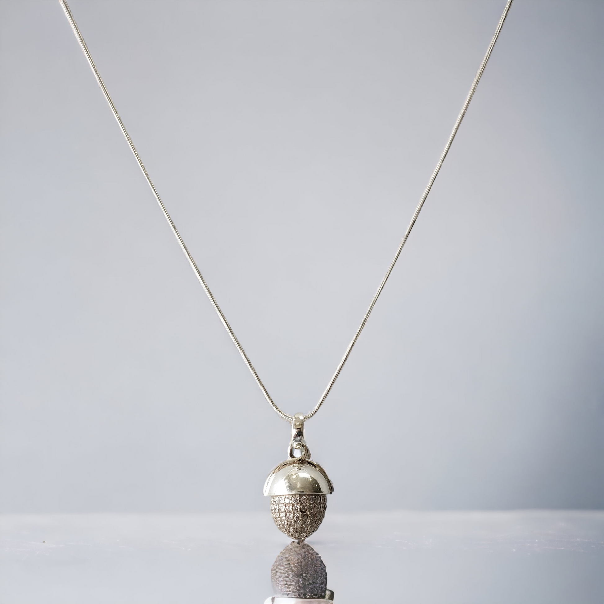 CUBIC ZIRCONIA & 925 Sterling Silver Necklace : 8.52gms(Approx) Fashion Regular Medium Bullet Pendant With Necklace 18.5" Gift For Her