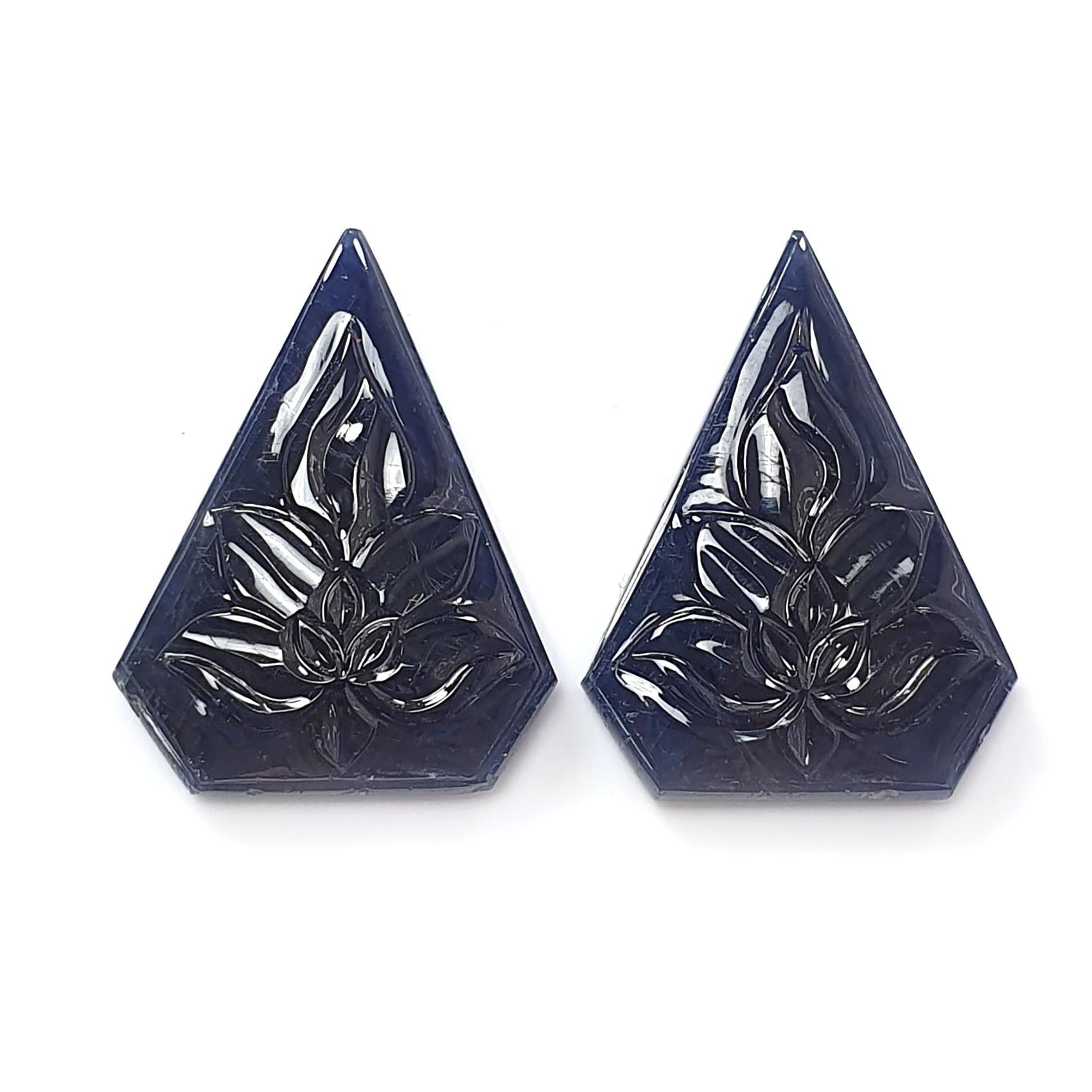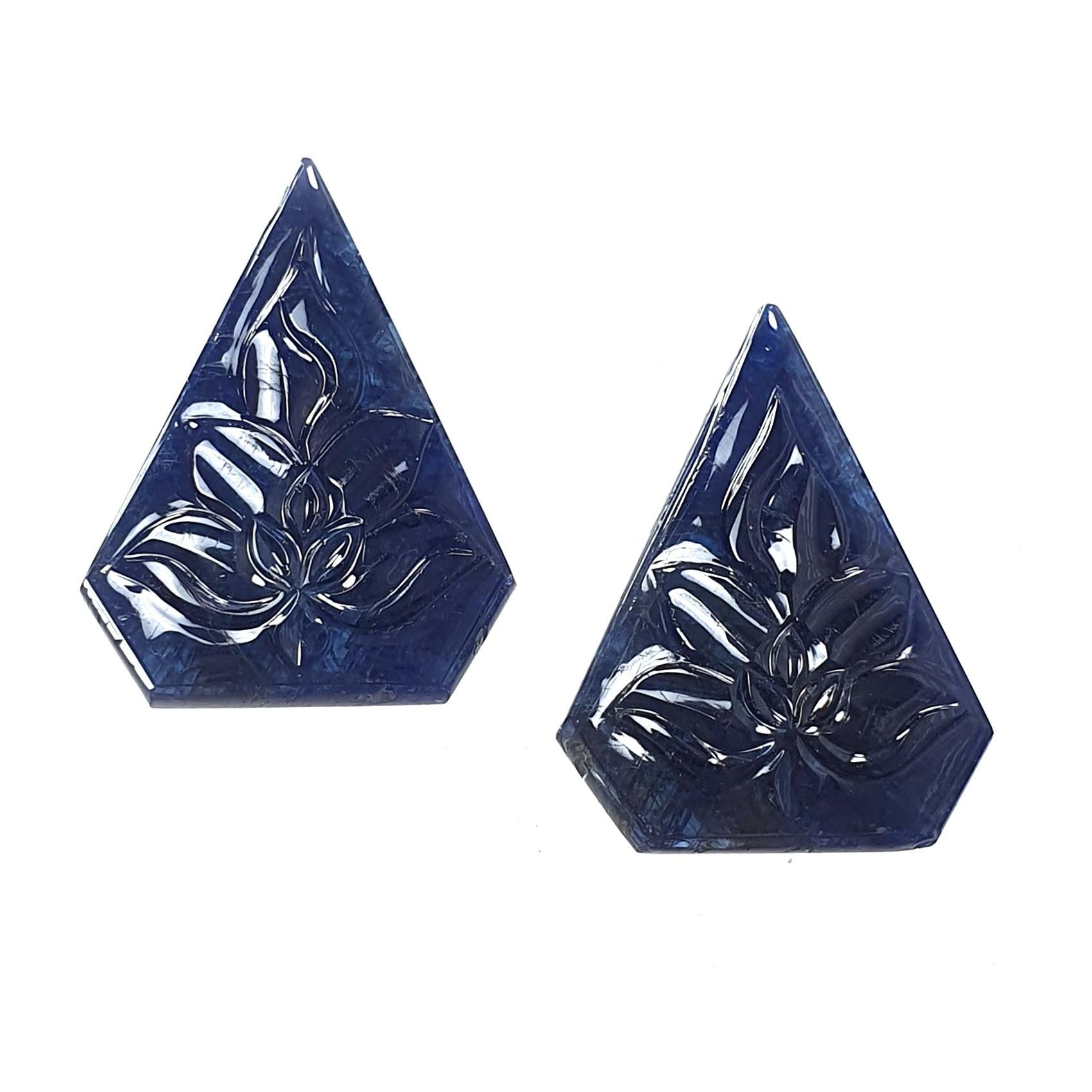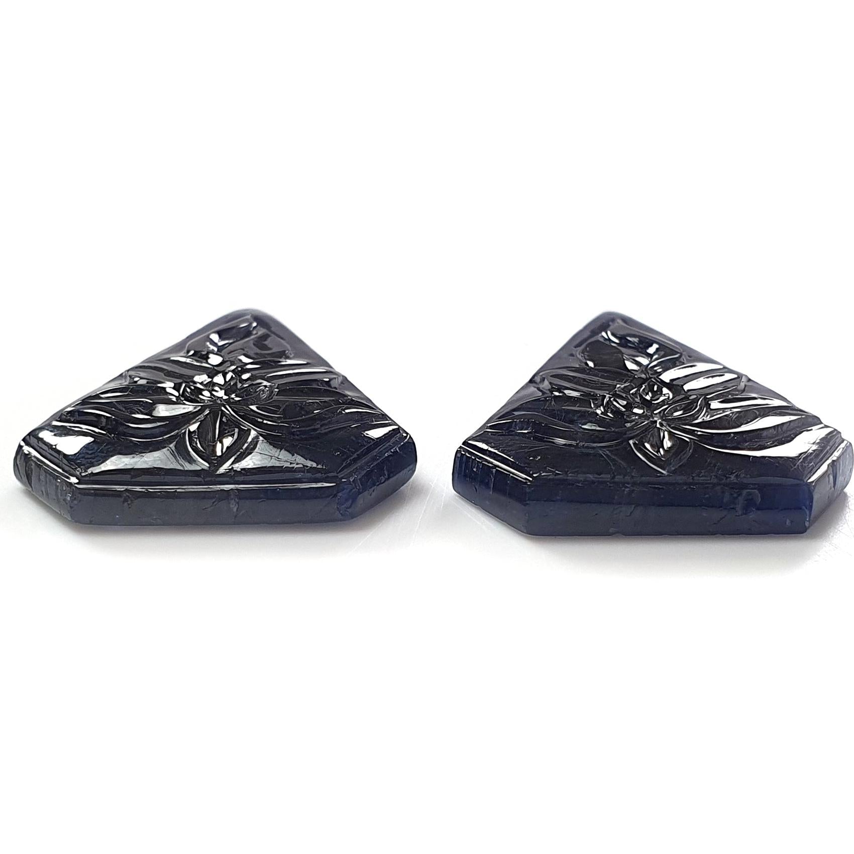 Dark Blue Sapphire Gemstone Carving: 44.60cts Natural Untreated Unheated Sapphire Hand Carved Fancy Shape 26*18mm Pair