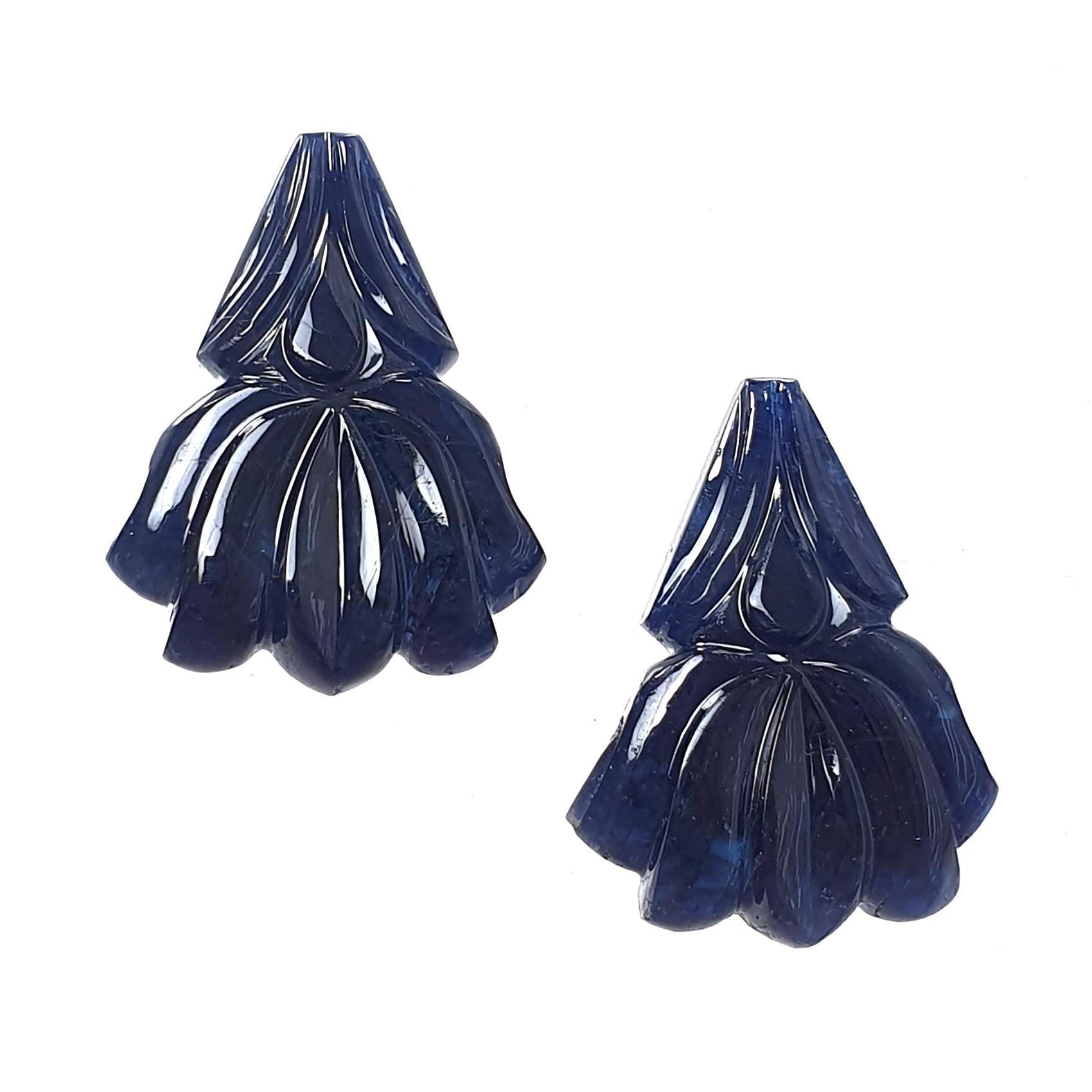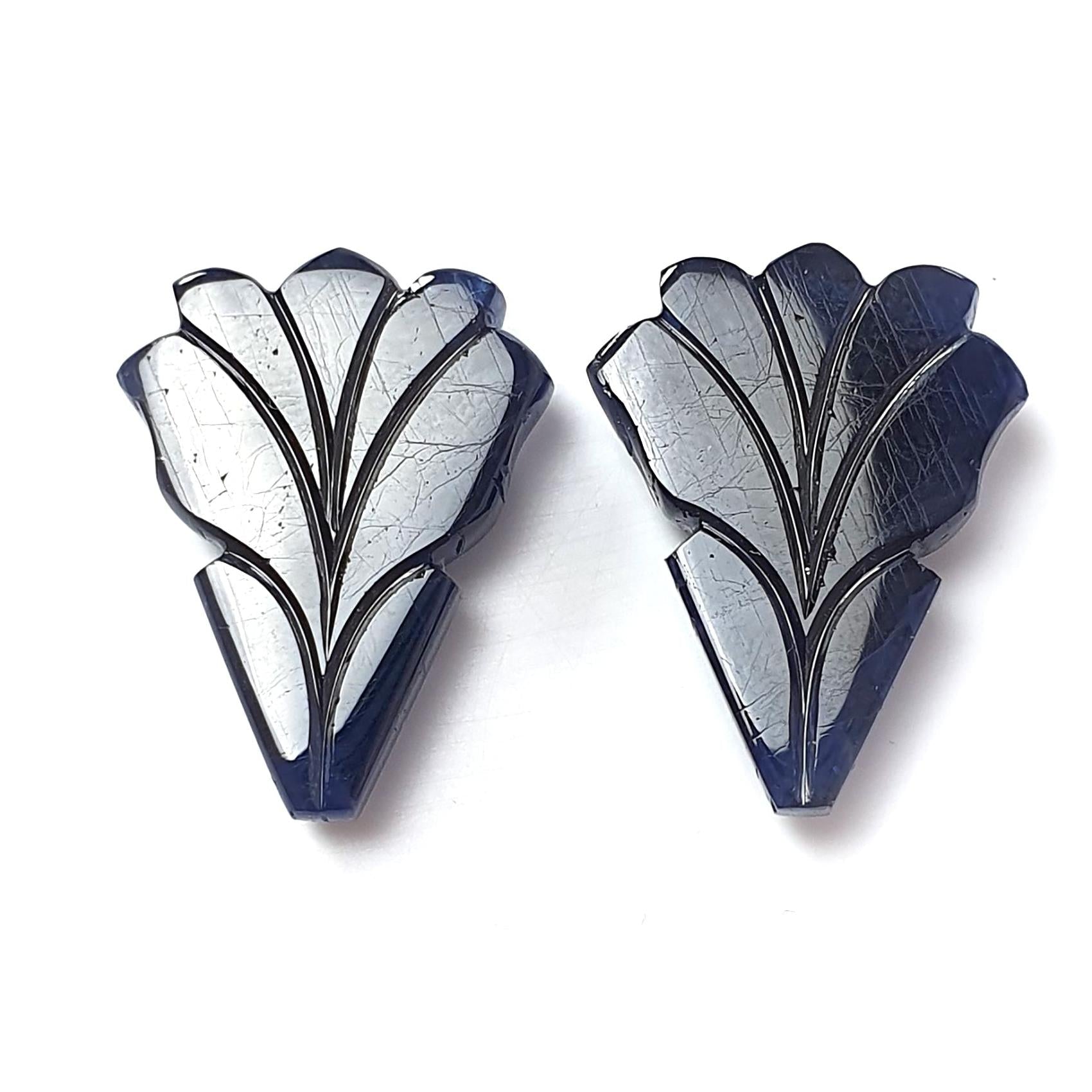 Dark Blue Sapphire Gemstone Carving: 49.40cts Natural Untreated Unheated Sapphire Hand Carved Fancy Shape 25*18mm Pair