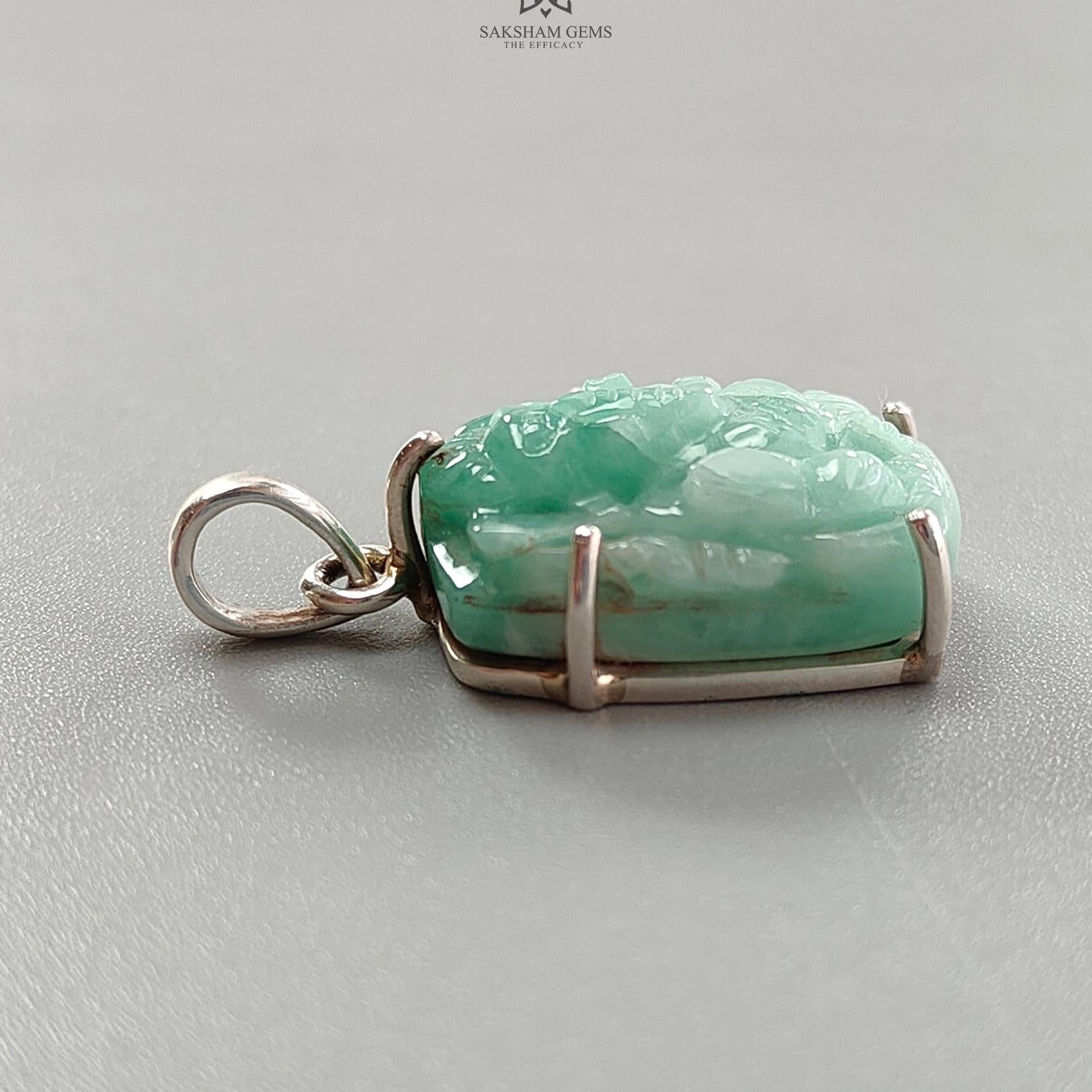 Emerald Ganesha Carving Silver Pendant: 6gms Natural Untreated Green Emerald Lord Ganesha Idol 925 Sterling Silver Prong Set Pendant 1.25"