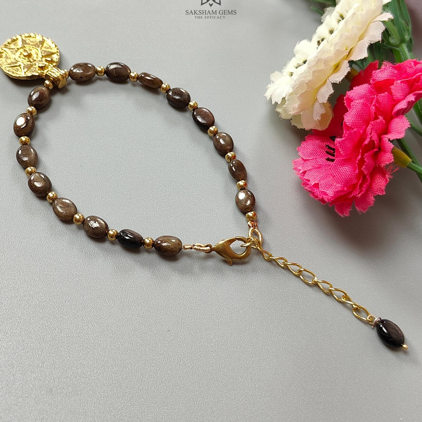 Golden Brown Chocolate Sapphire Beads Bracelet: 59.75cts Natural Untreated Sapphire Oval Shape Plain Brass Bracelet 7*5cmm 6.50"
