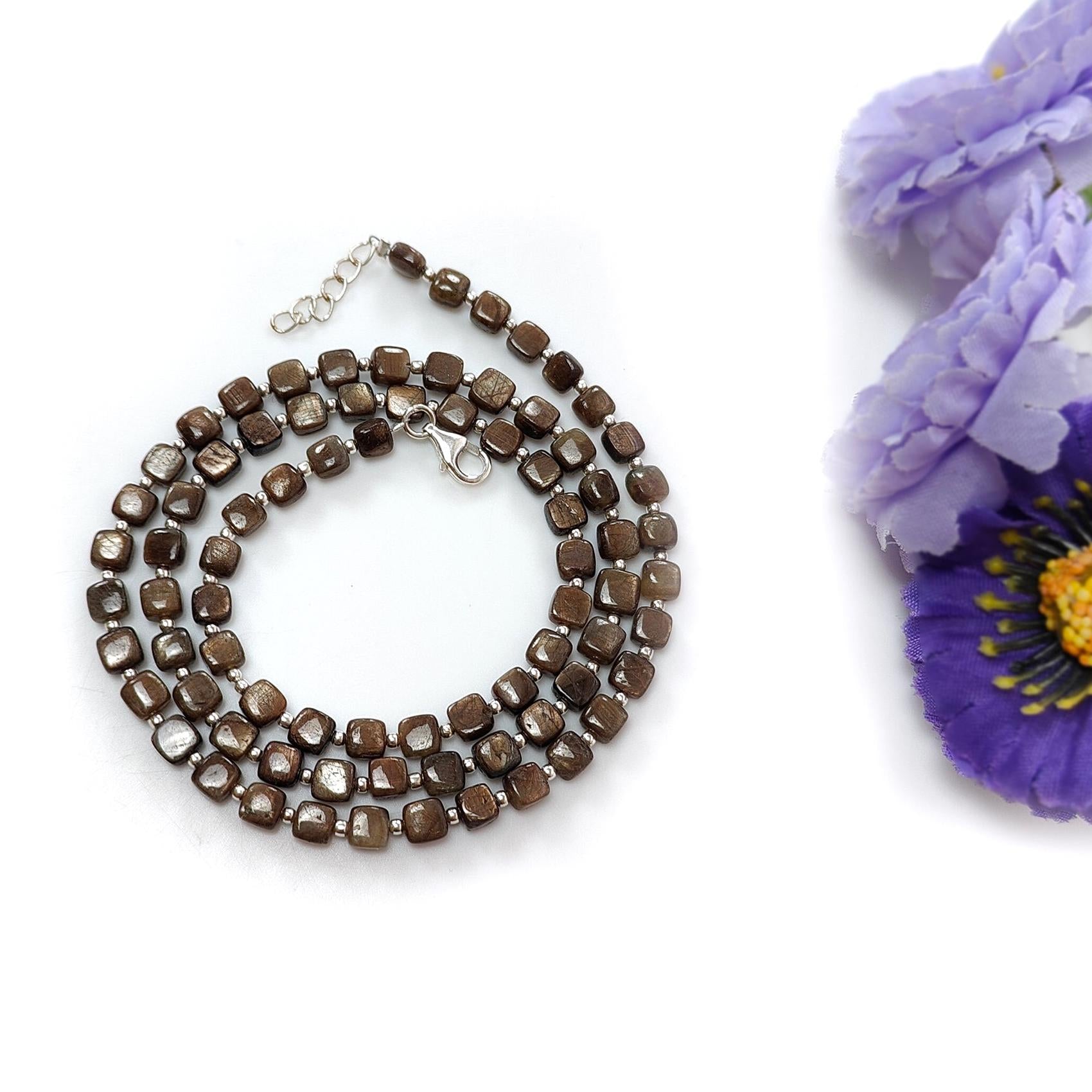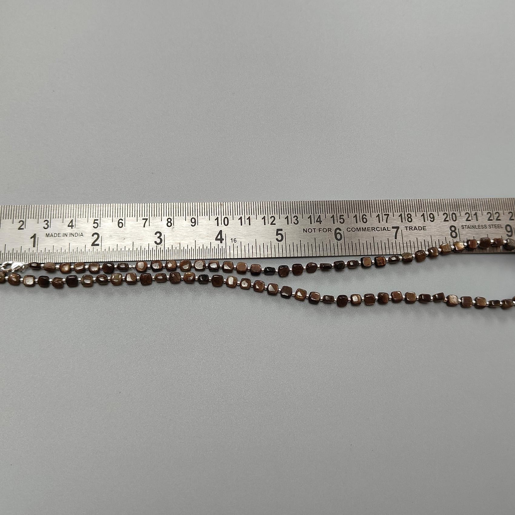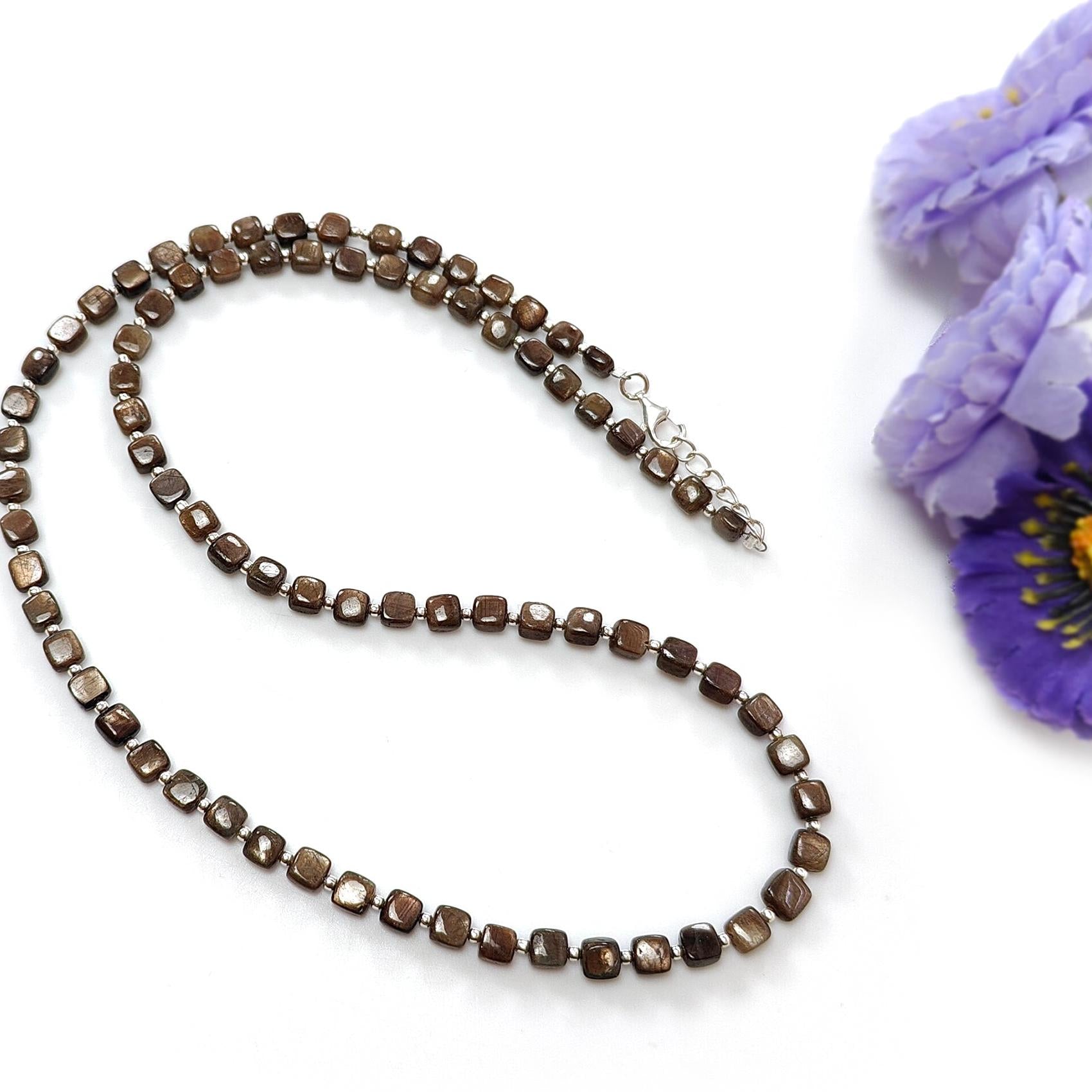 Golden Brown Chocolate Sapphire Gemstone Beads Necklace : 15.75gms (Apx) Natural Plain Cushion Sapphire 925 Sterling Silver 4mm 19" (Apx)