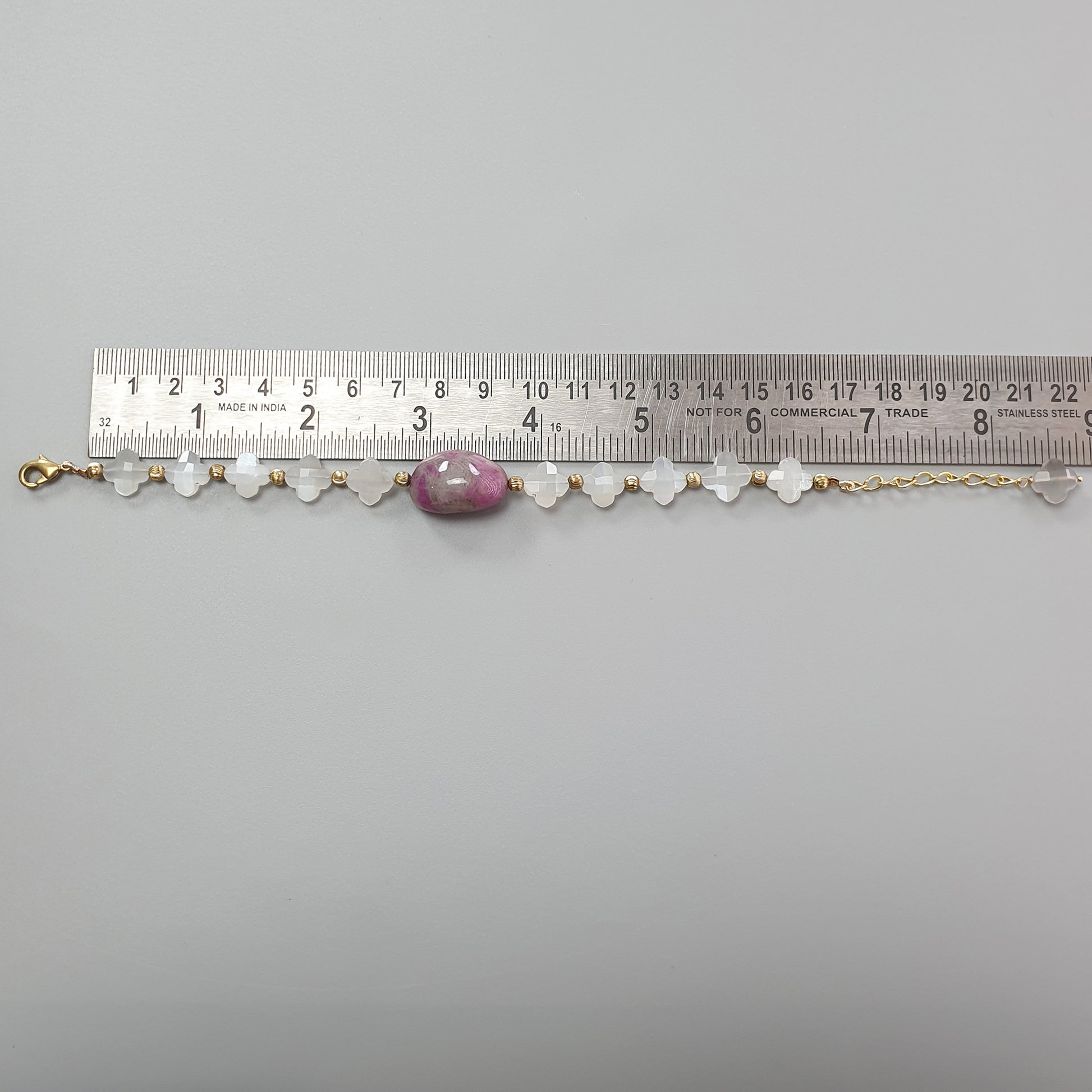 Jewelry Type: Brass Gray Moonstone & Ruby Bracelet