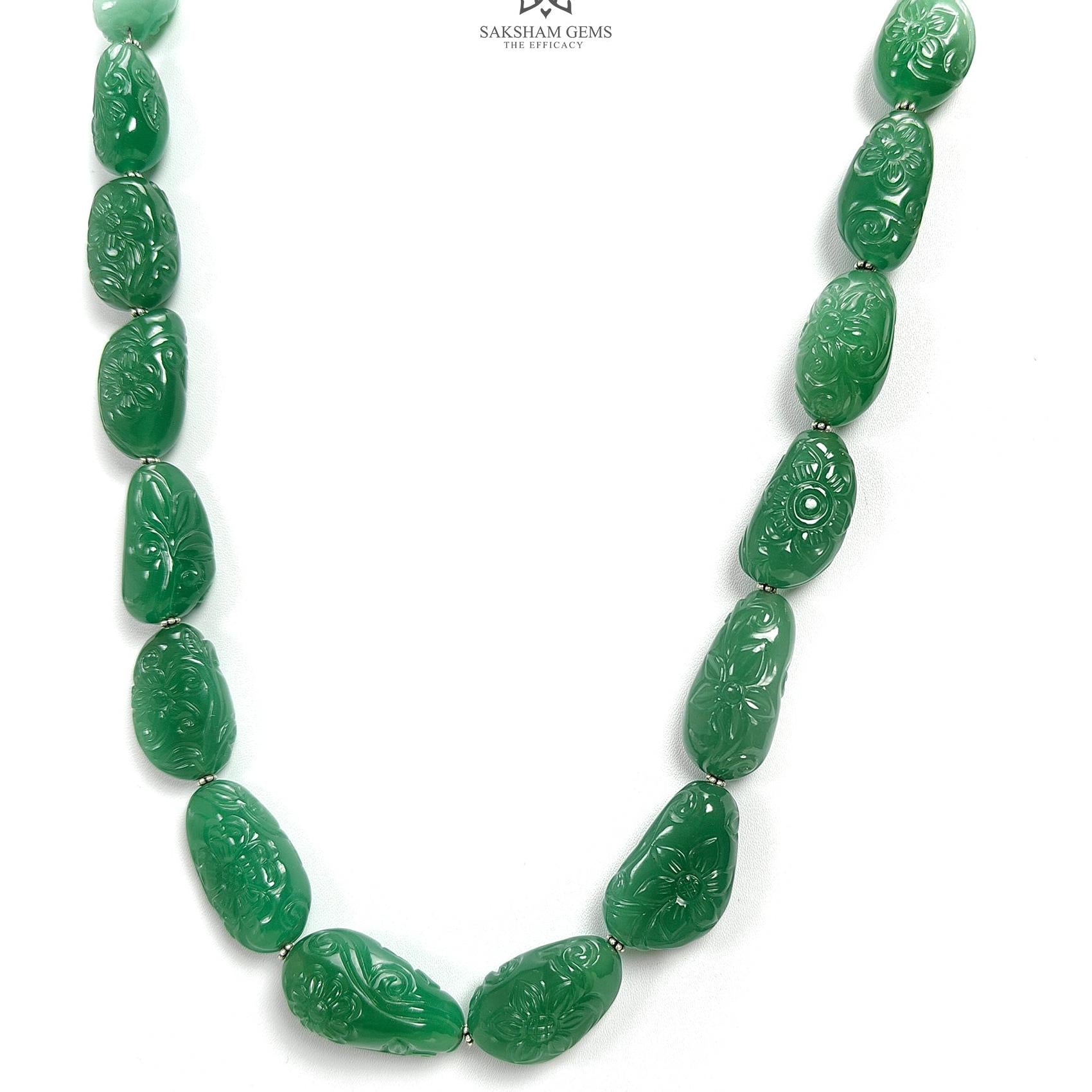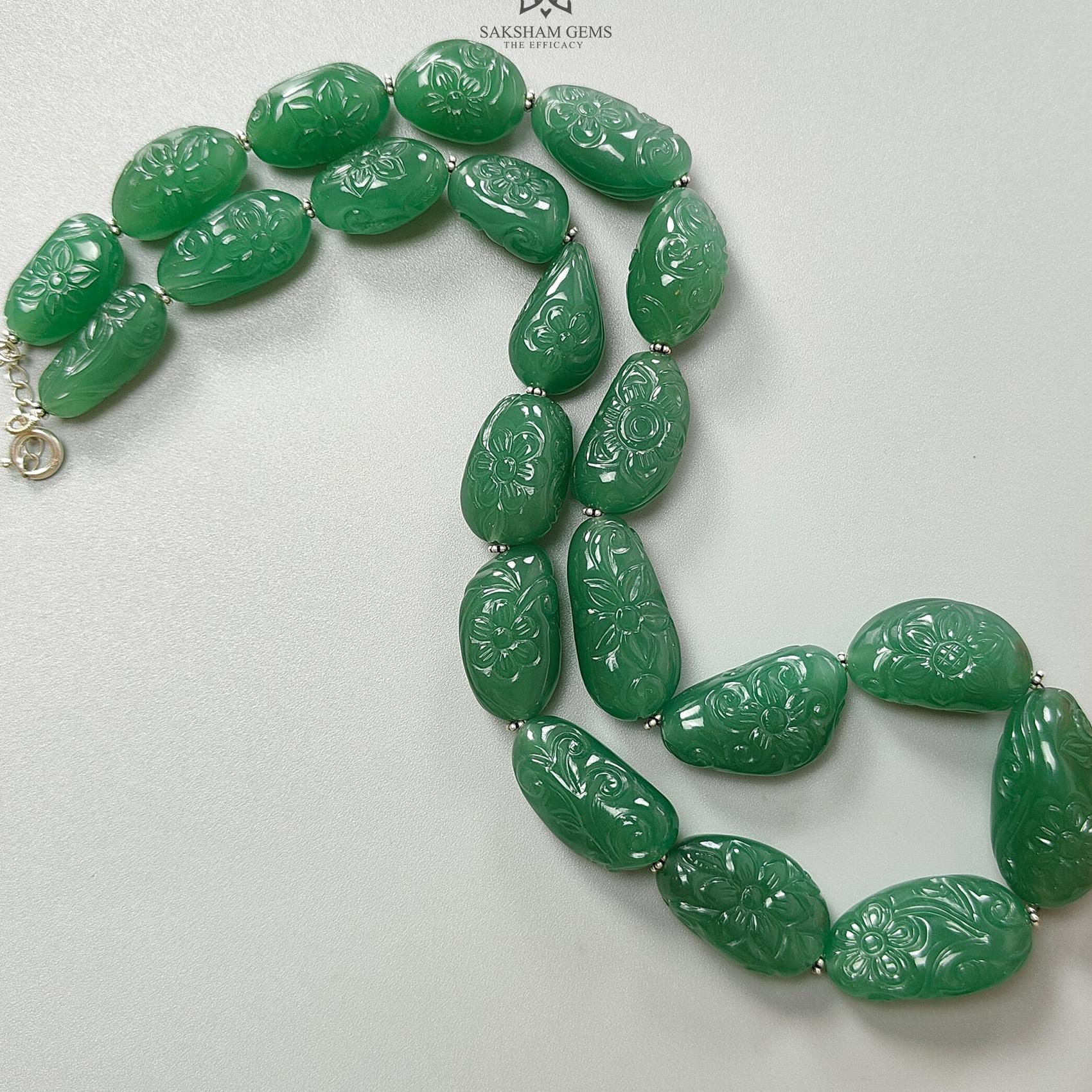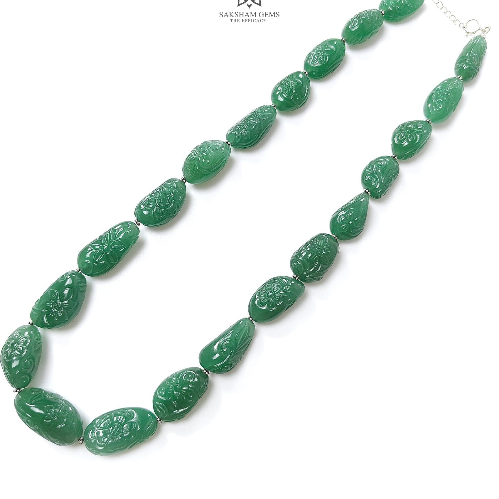 Green Quartz Carving Beads Necklace: 693.60cts Natural Untreated Quartz Shape Fancy Hand Carved 925 Sterling Silver 22*13mm - 32*17mm 22"