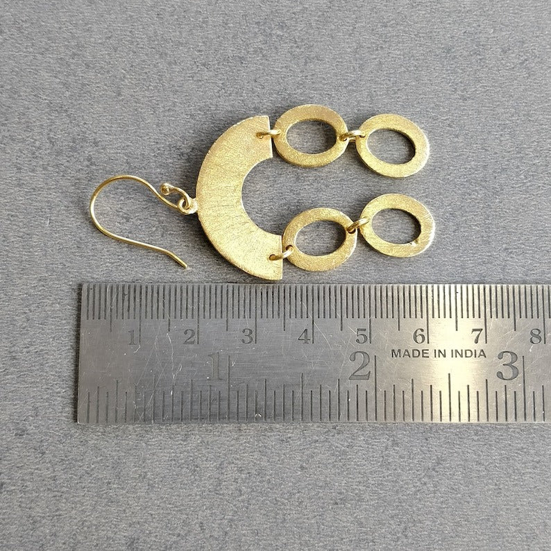Handmade Brass Earring : 6*3CM 18k Gold Plated 8.00GMS Brass Boho Style Brush Texture Oval Drop Dangle Hook Earring Gift For Her