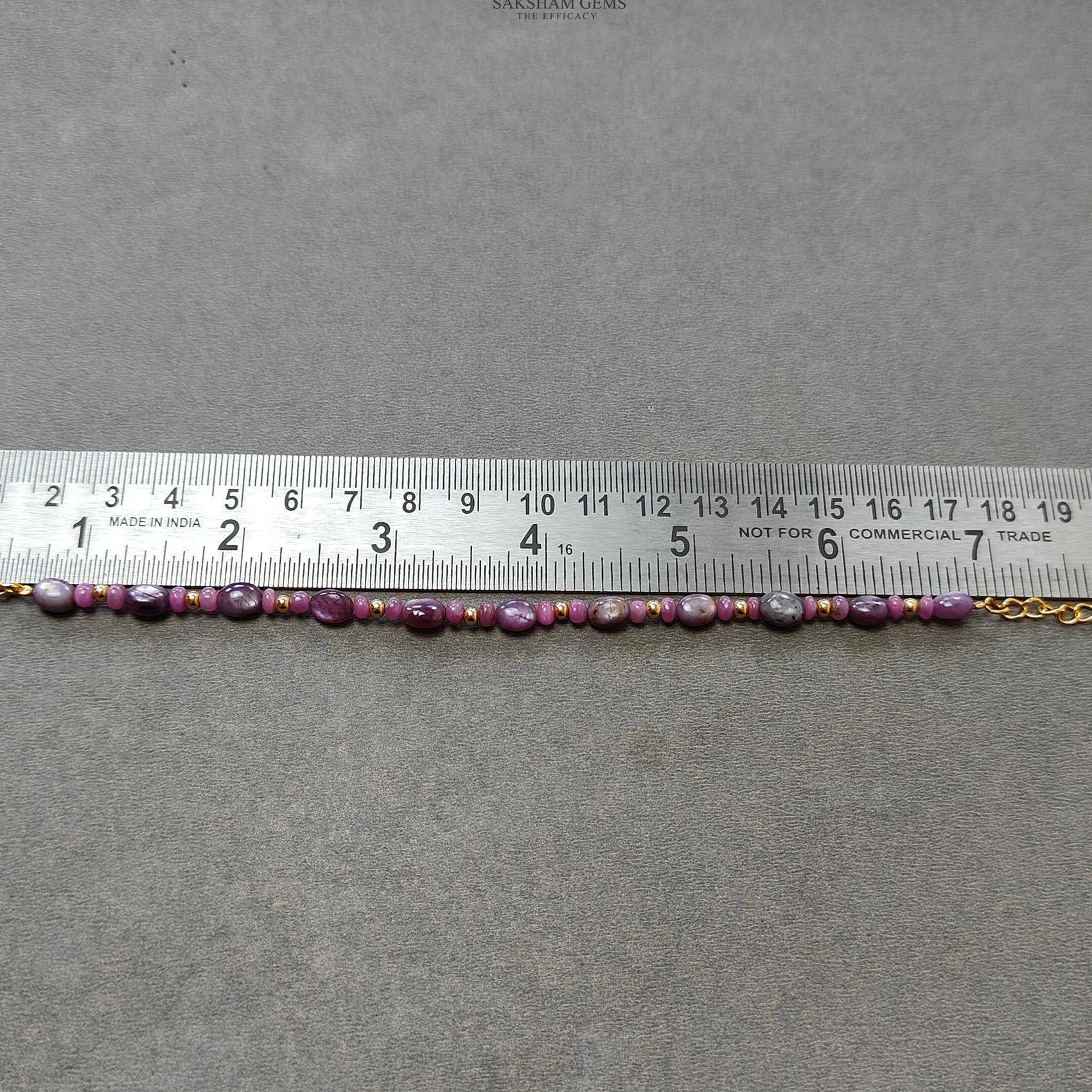Ruby Gemstone Beads Bracelet : 7.18gms Natural Untreated Ruby Plain Round Oval Shape Beaded Plain Brass Bracelet 7.80"