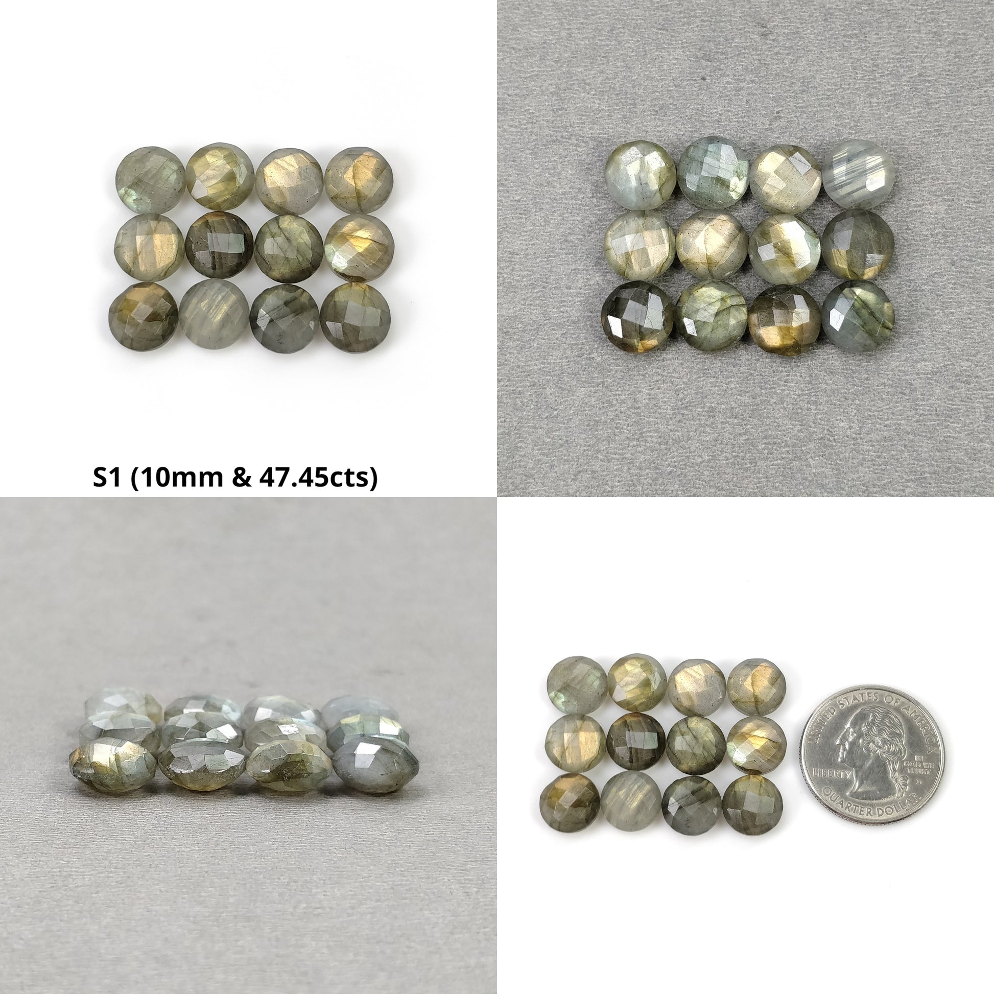 Labradorite Gemstone Checker Cut : Natural Untreated Rainbow Flashing Labradorite Round Shape Briolette Set For Jewelry