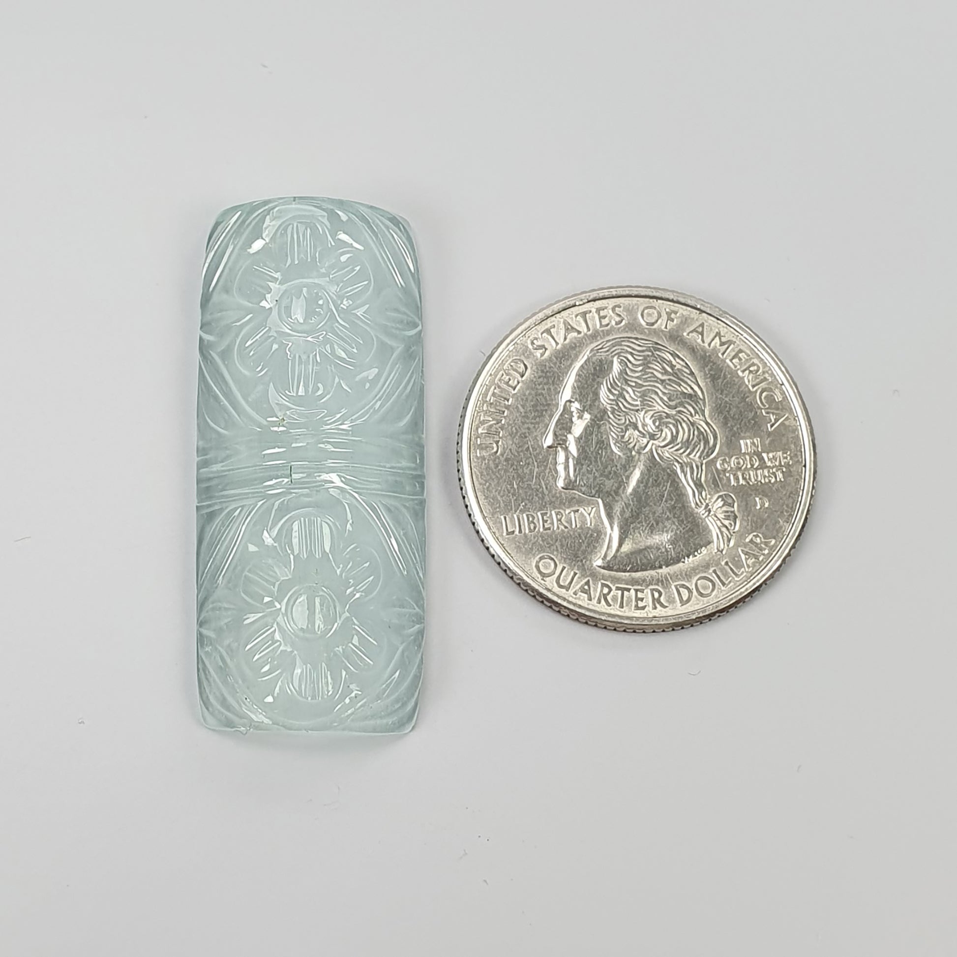AQUAMARINE Gemstone Carving : 35.80cts Natural Untreated Blue Aquamarine Hand Carved Cushion Shape 37*16mm
