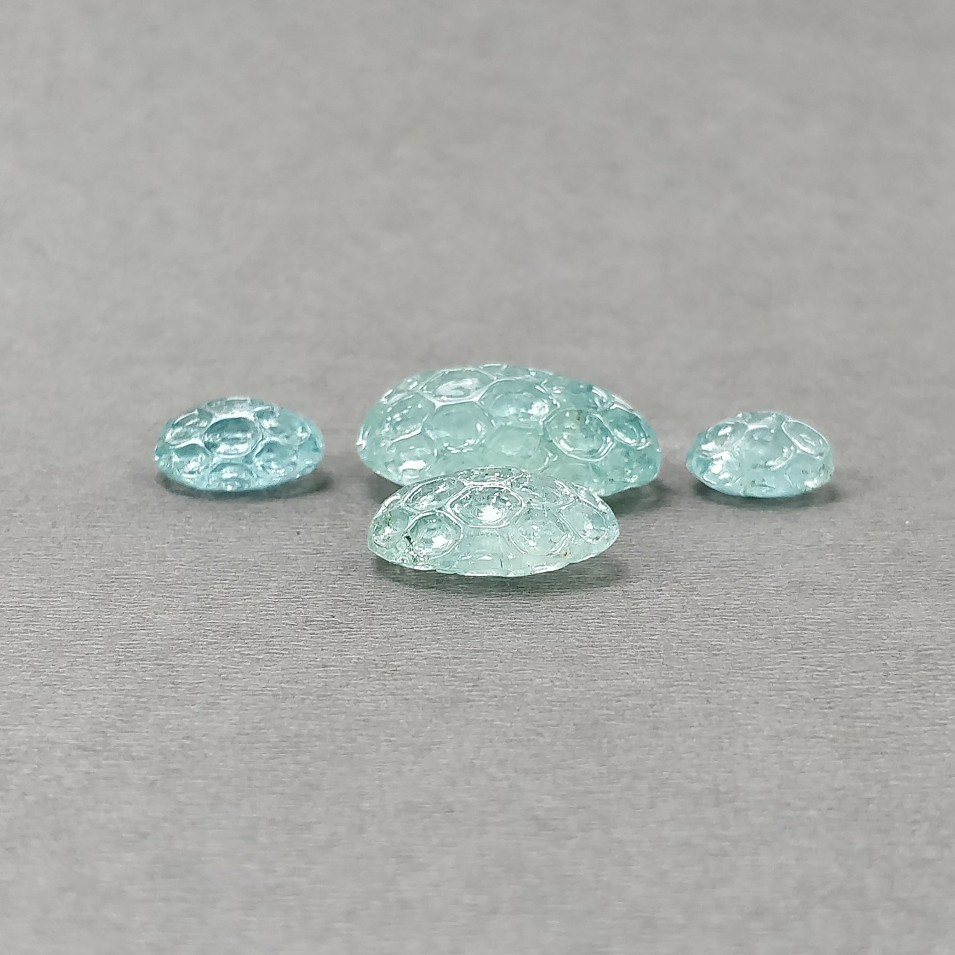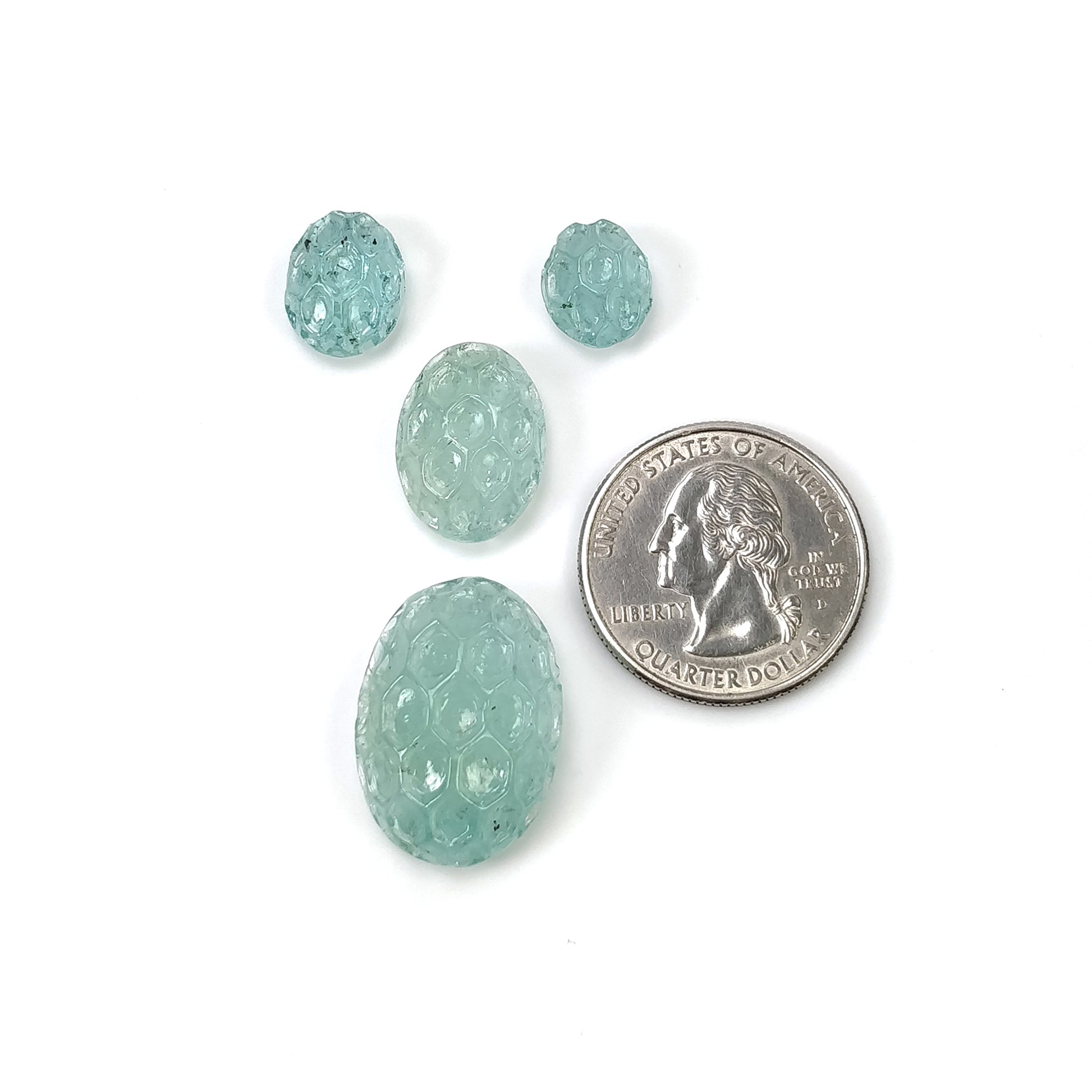 GREEN AQUAMARINE Gemstone Carving : 38.50cts Natural Untreated Aqua Both Side Hand Carved Oval Shape 11*9mm - 23*16.5mm 4pcs