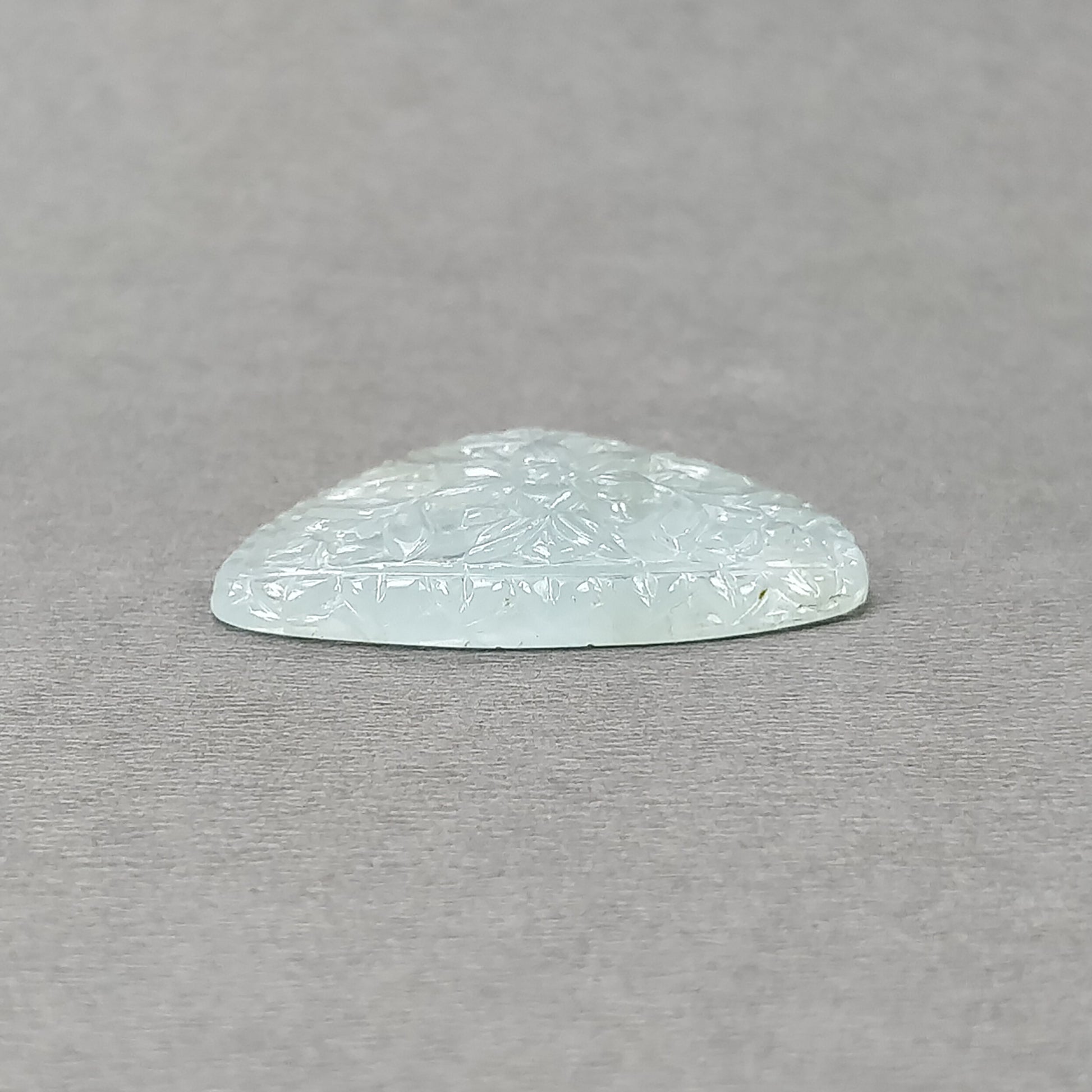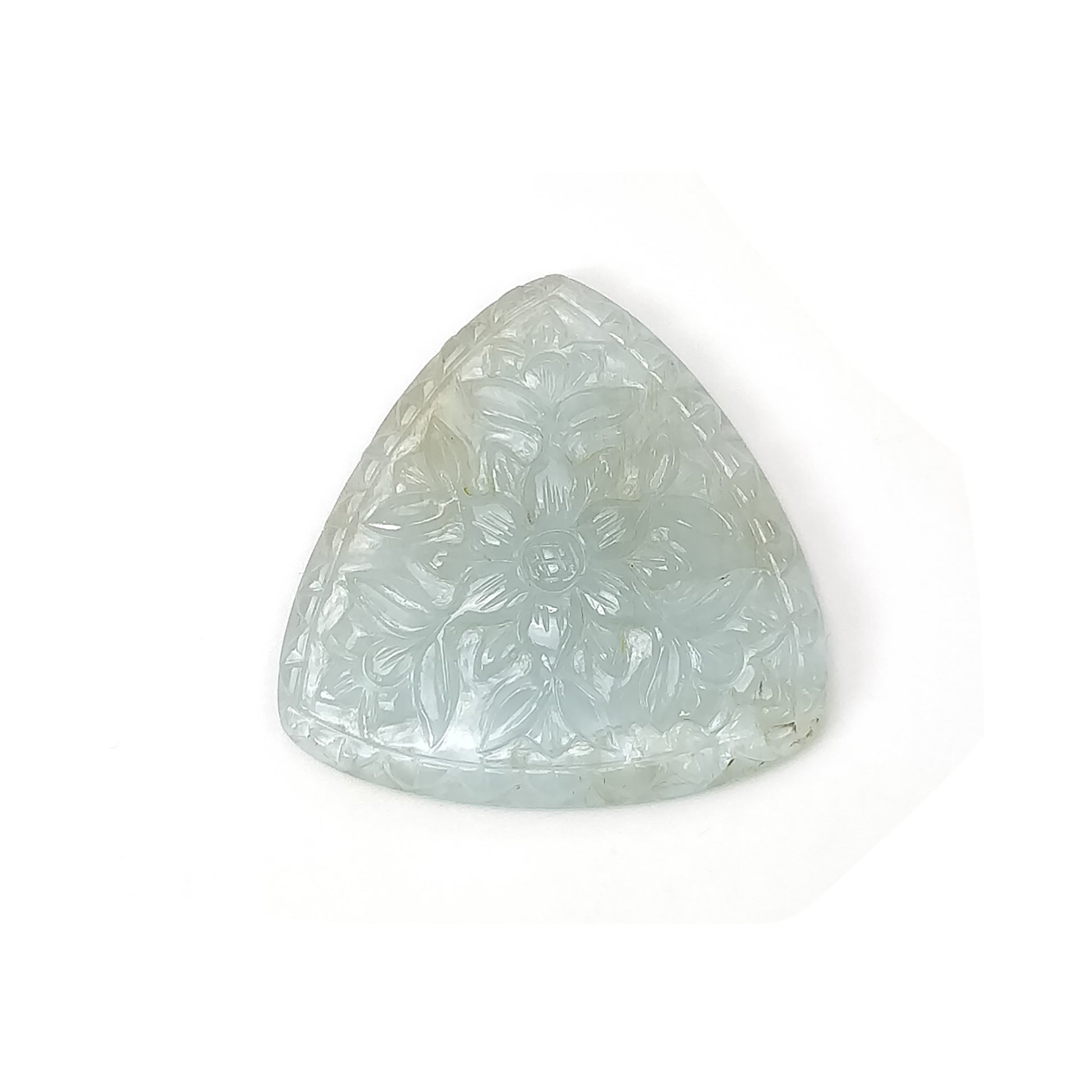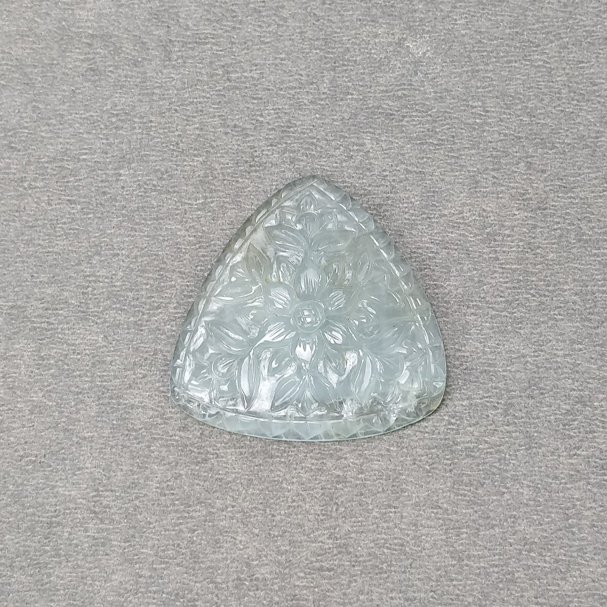 Milky AQUAMARINE Gemstone Carving : 38.50cts Natural Untreated Aqua Both Side Hand Carved Trillion Shape 34mm