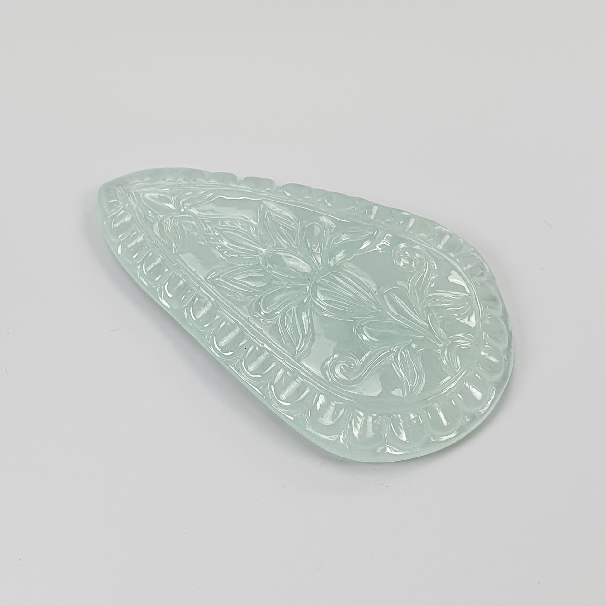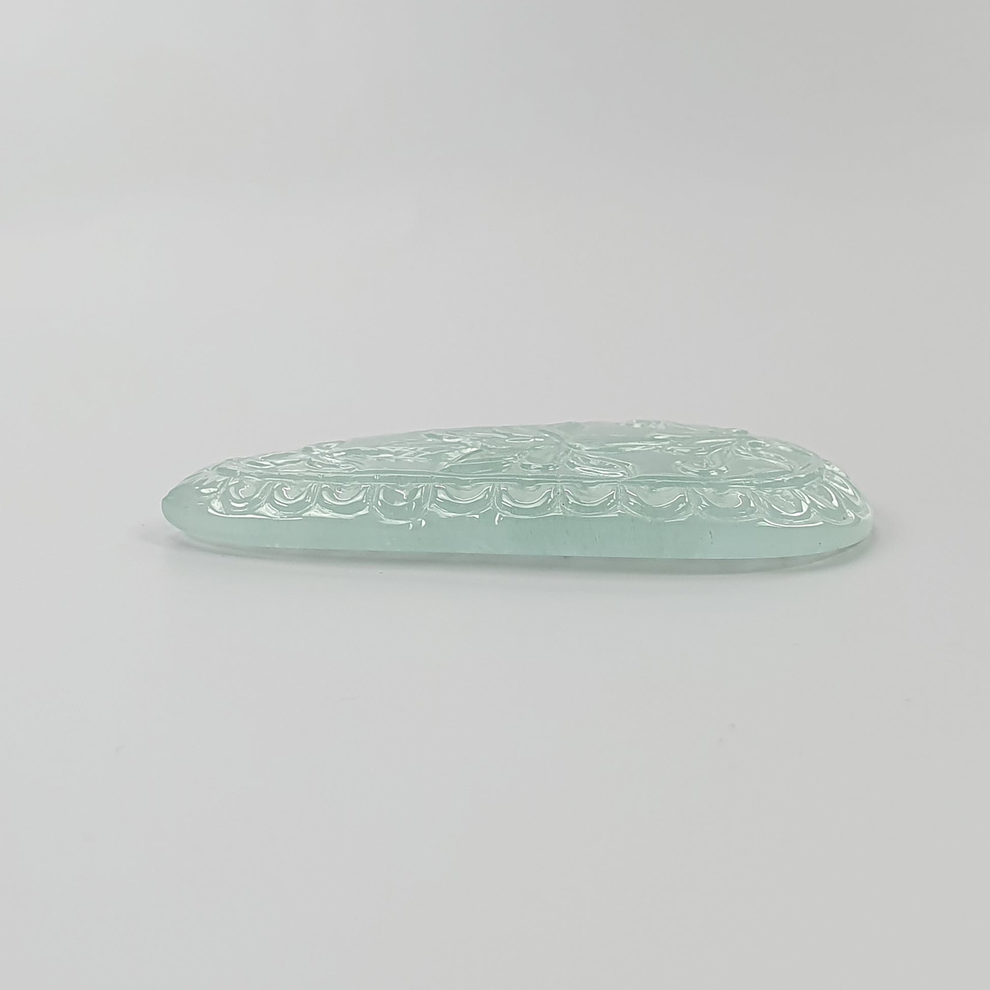 AQUAMARINE Gemstone Carving : 91.90cts Natural Untreated Blue Aquamarine Hand Carved Uneven Shape 56*32.5mm