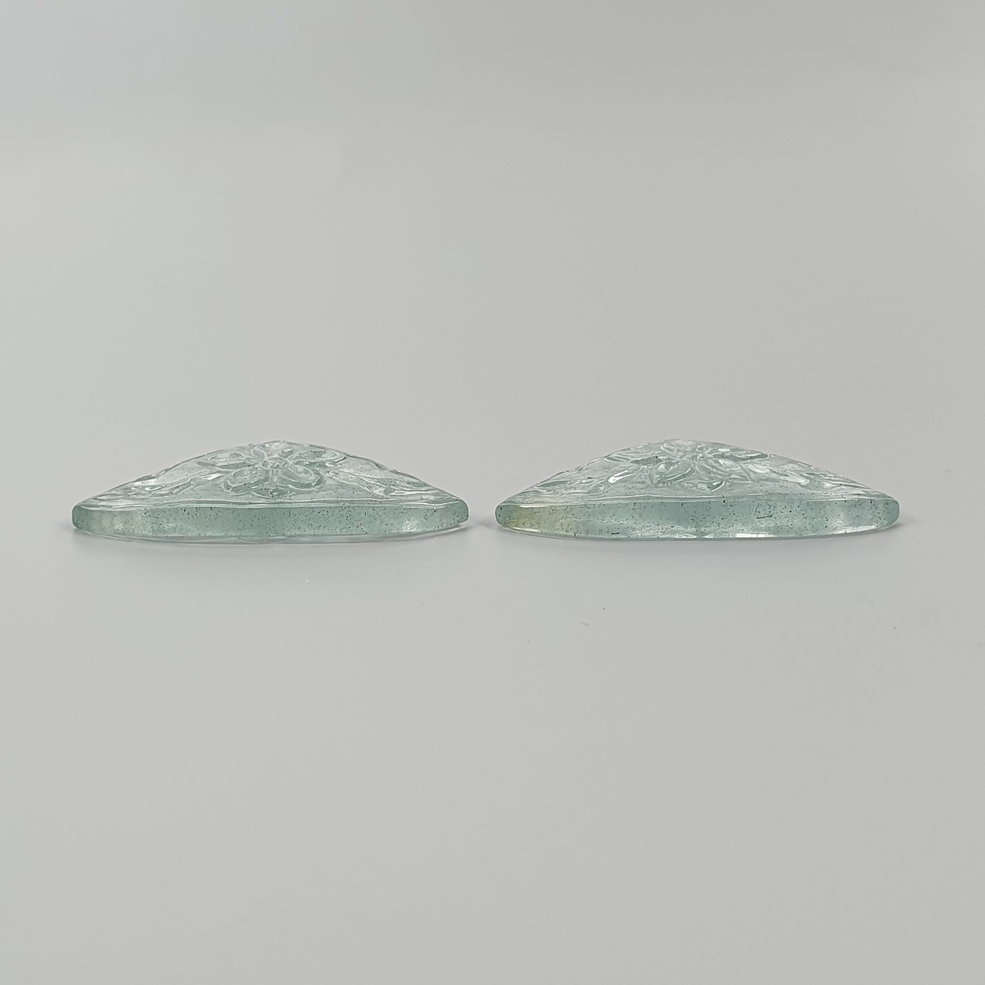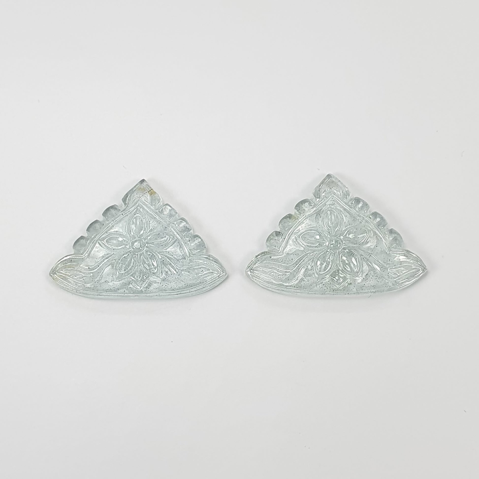 AQUAMARINE Gemstone Carving : 23.25cts Natural Untreated Blue Aquamarine Hand Carved Triangle Shape 27.5*19.5mm Pair