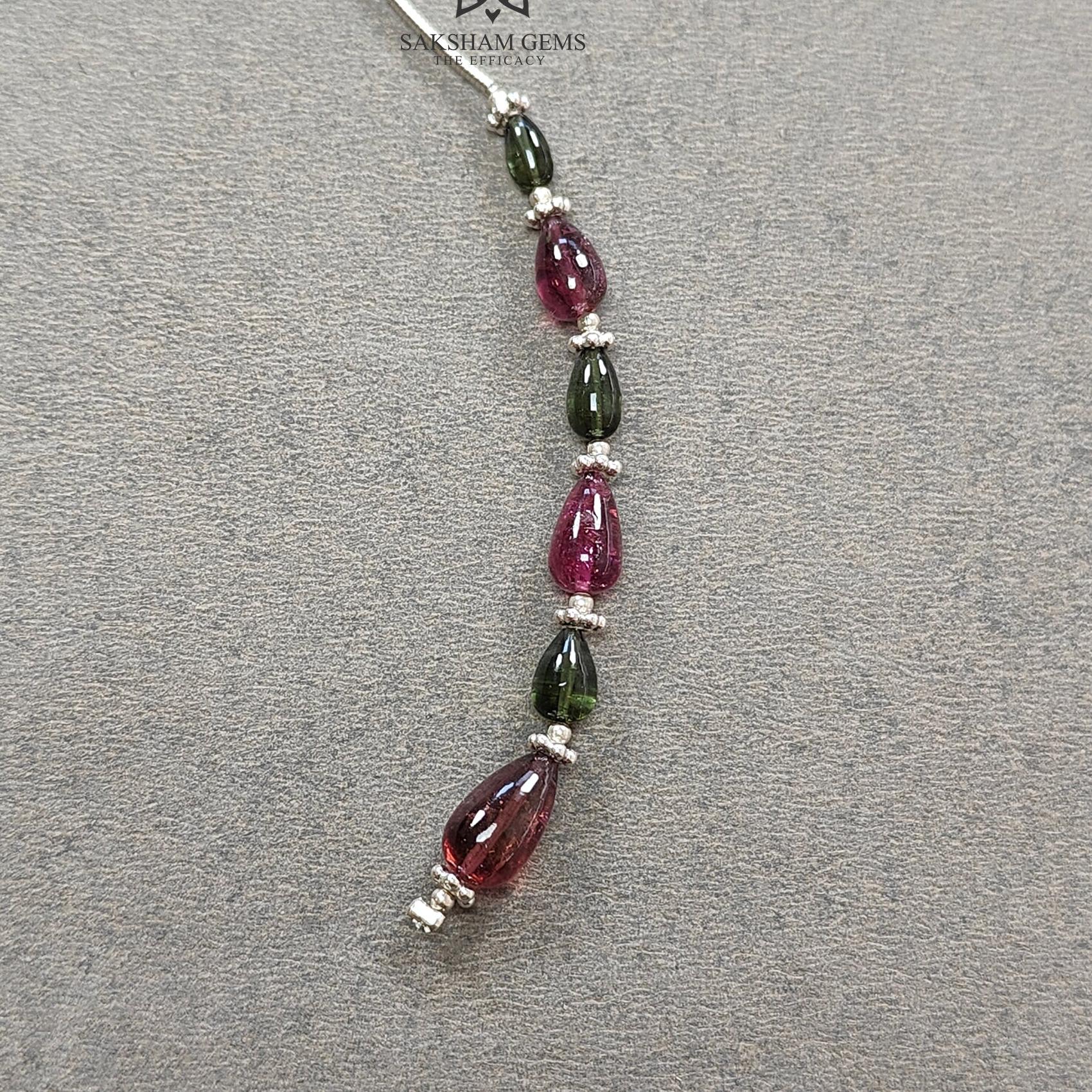 Watermelon Tourmaline Gemstone Loose Beads : 9.30cts Natural Multi Color Tourmaline Plain Teardrops Nuggets 5.5mm - 10mm
