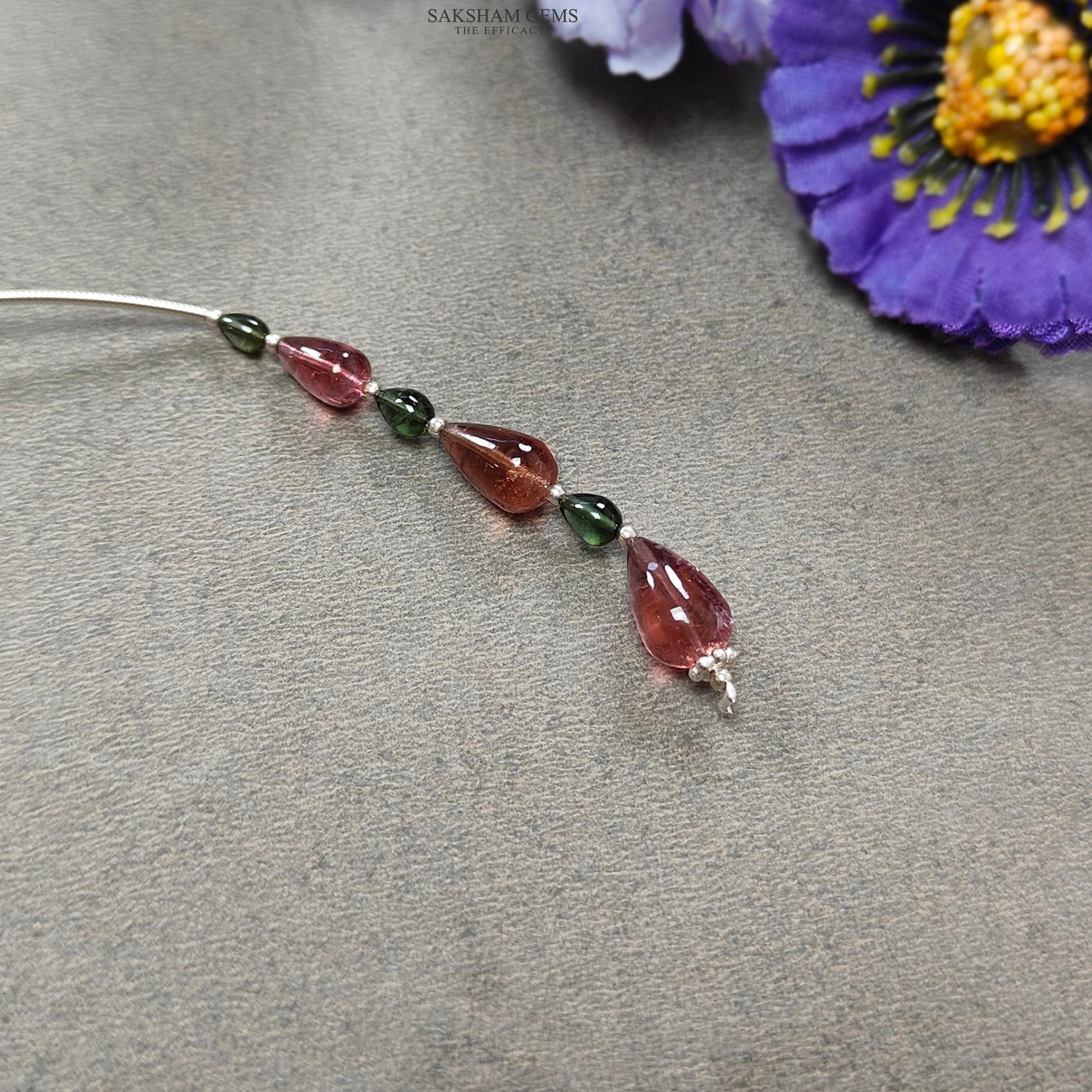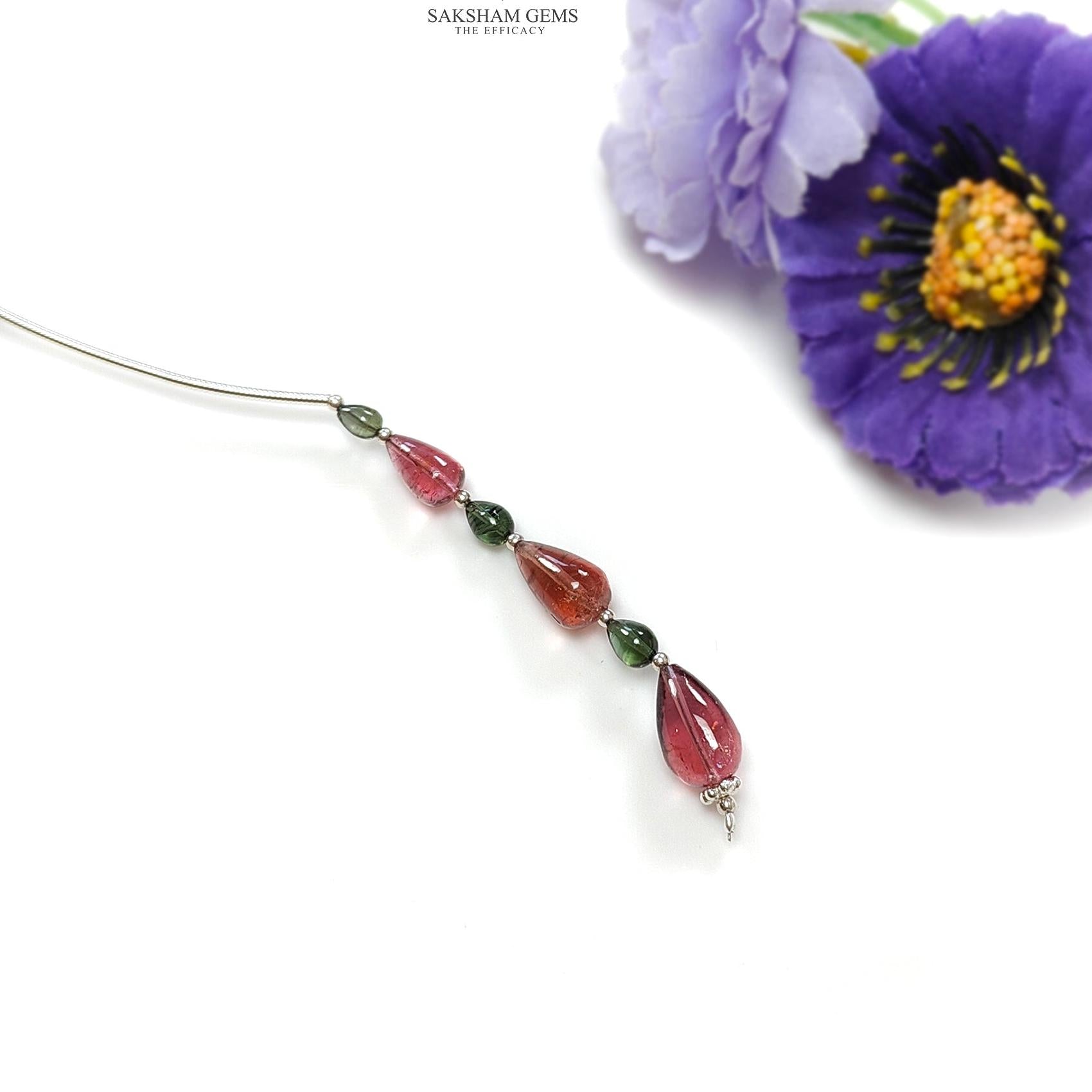 Watermelon Tourmaline Gemstone Loose Beads : 9.35cts Natural Multi Color Tourmaline Plain Teardrops Nuggets 4mm - 11mm