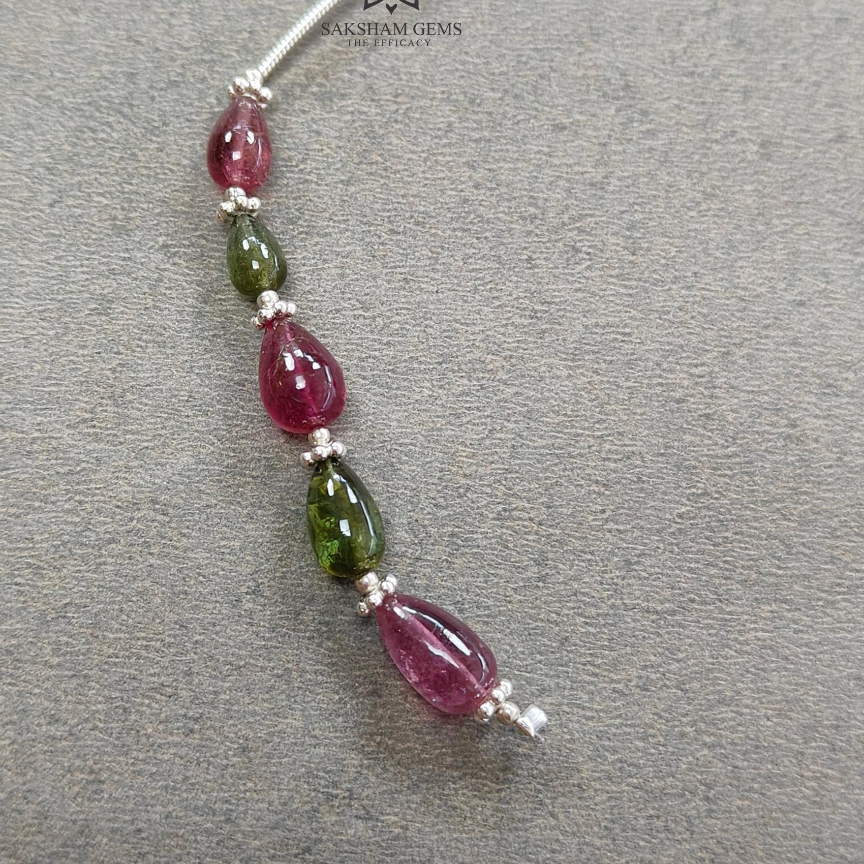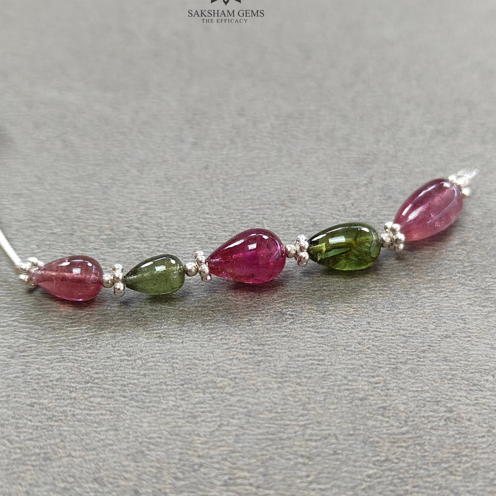 Watermelon Tourmaline Gemstone Loose Beads : 10.25cts Natural Multi Color Tourmaline Plain Teardrops Nuggets 8mm - 10mm