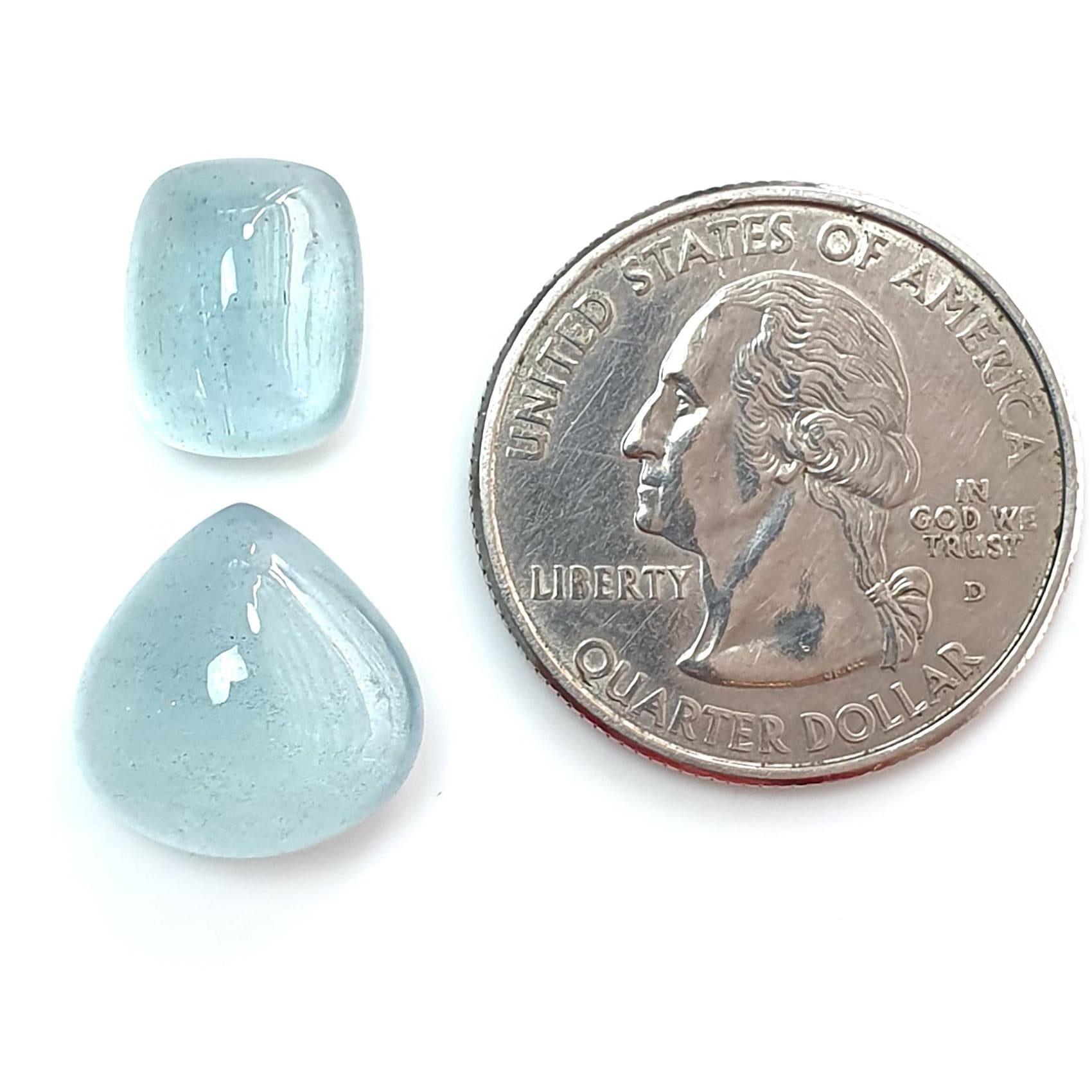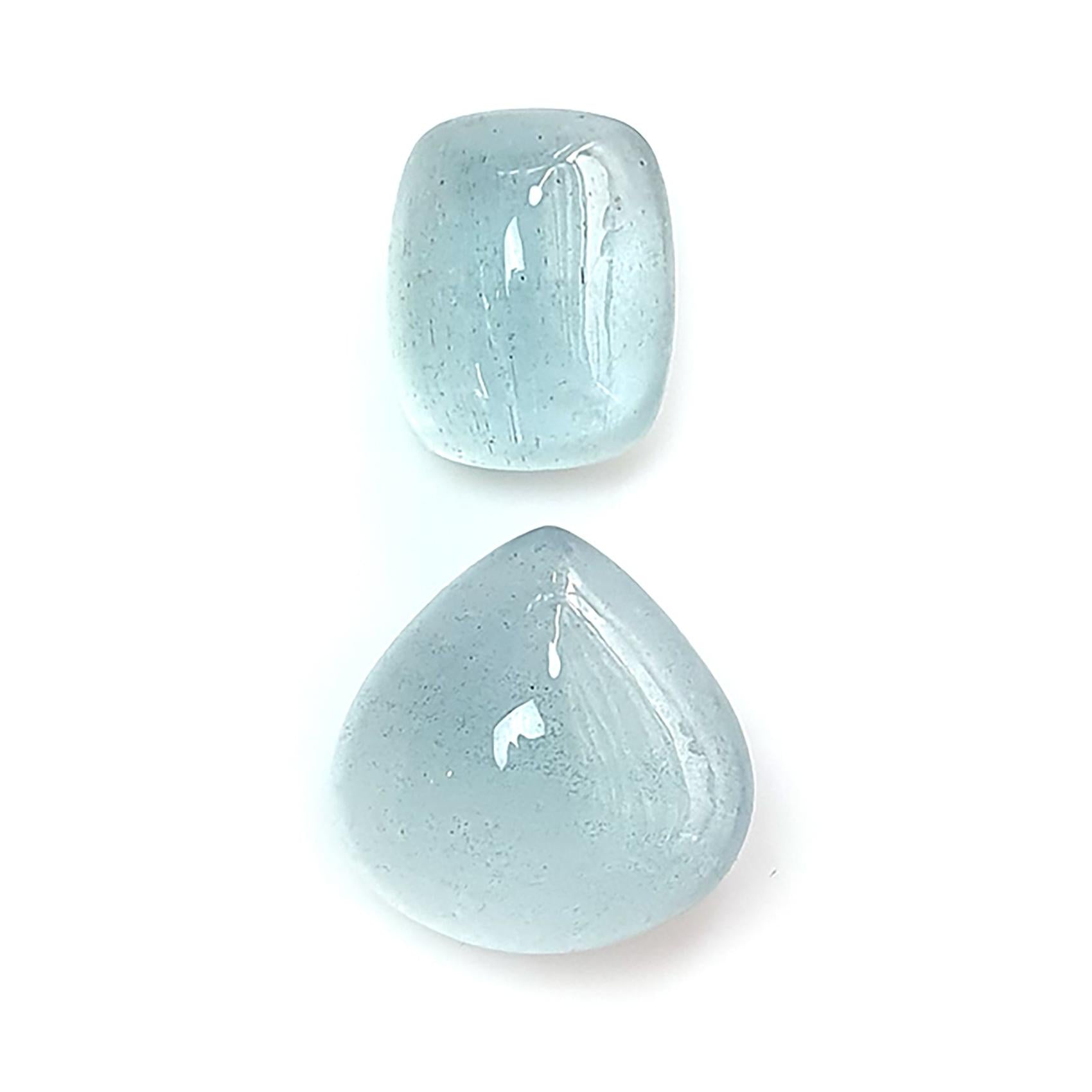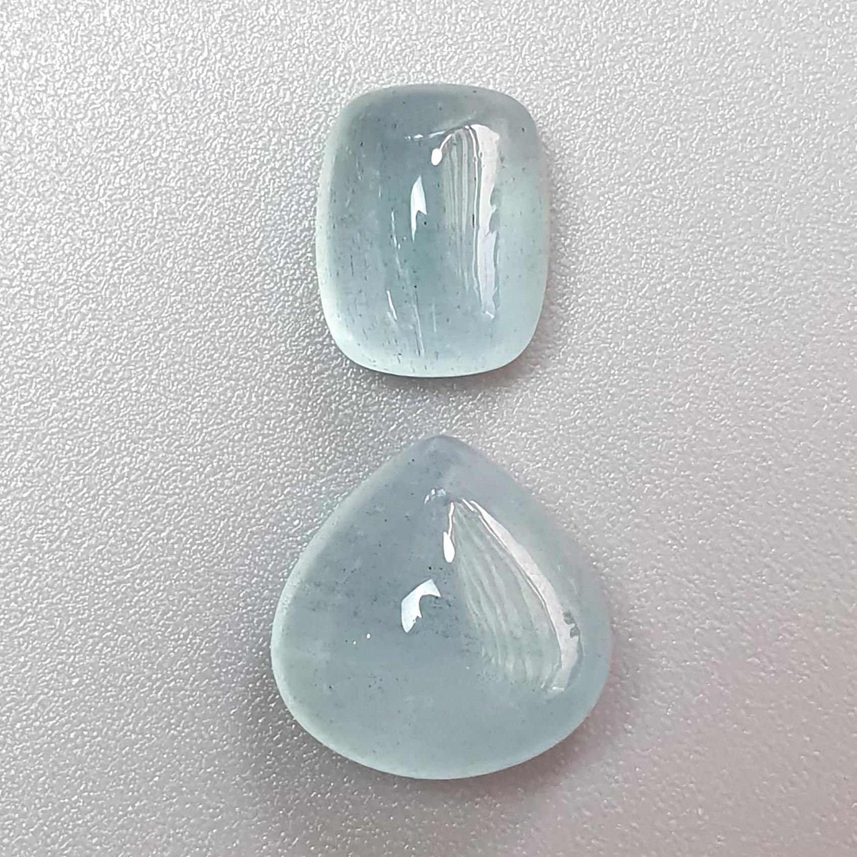 Blue Aquamarine Gemstone Cabochon: Natural Untreated Aquamarine Oval Pear, Cushion Shape Cabochon 2pcs Set For Jewelry March Birthstone