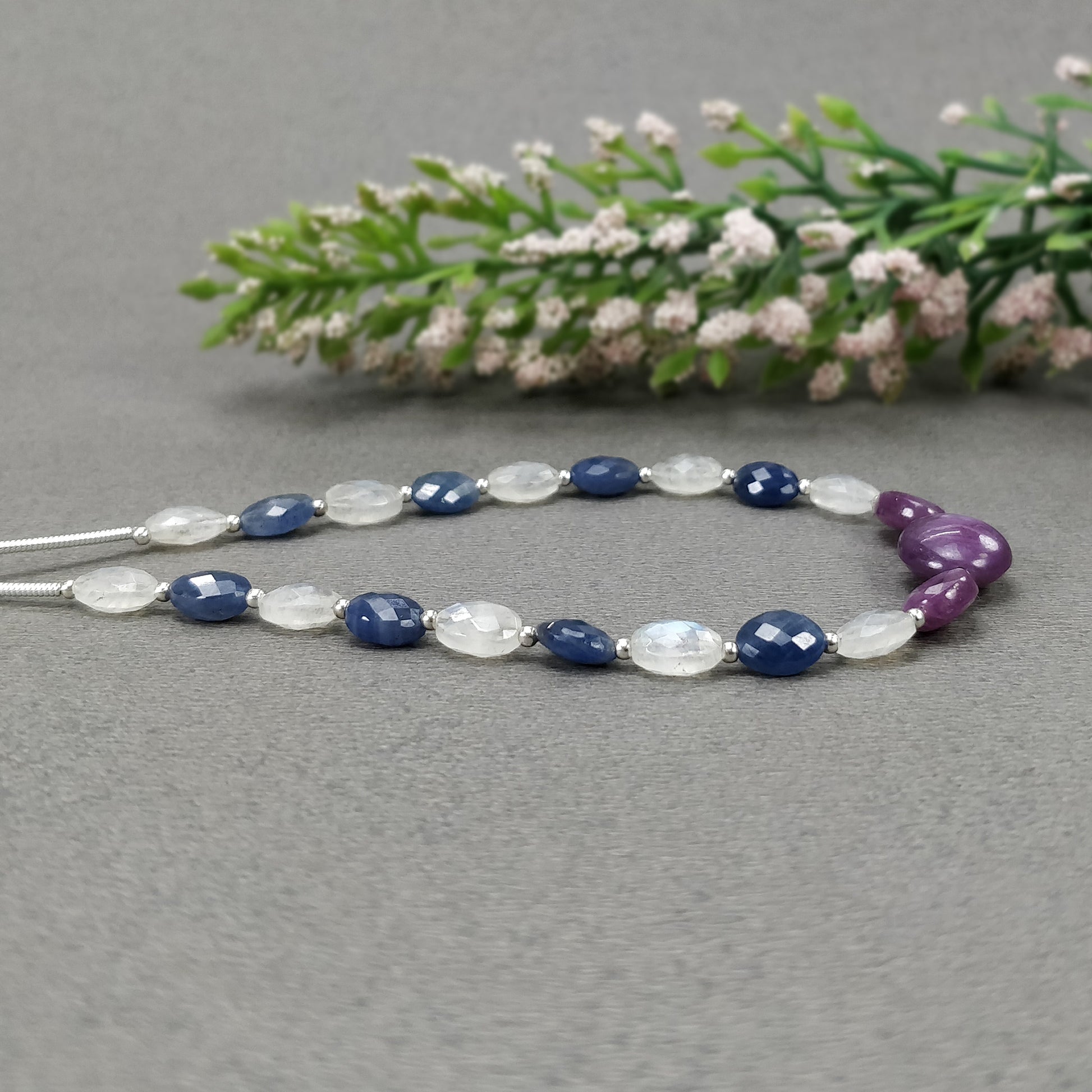 Star Ruby, Sapphire, Rainbow Moonstone Gemstone Loose Beads: 31.30cts Natural Untreated Oval Faceted Beads 7*5mm- 11.5*10mm 7"