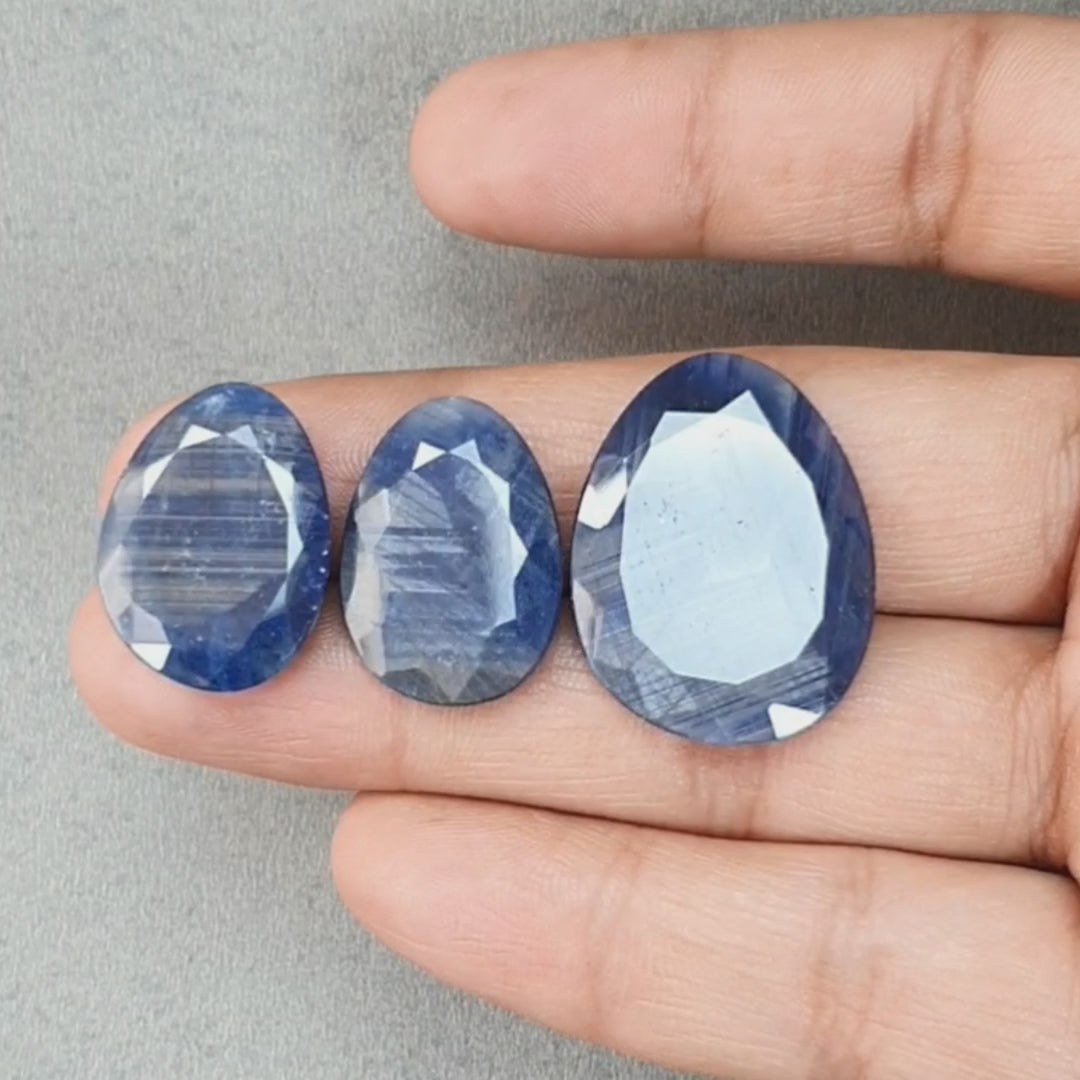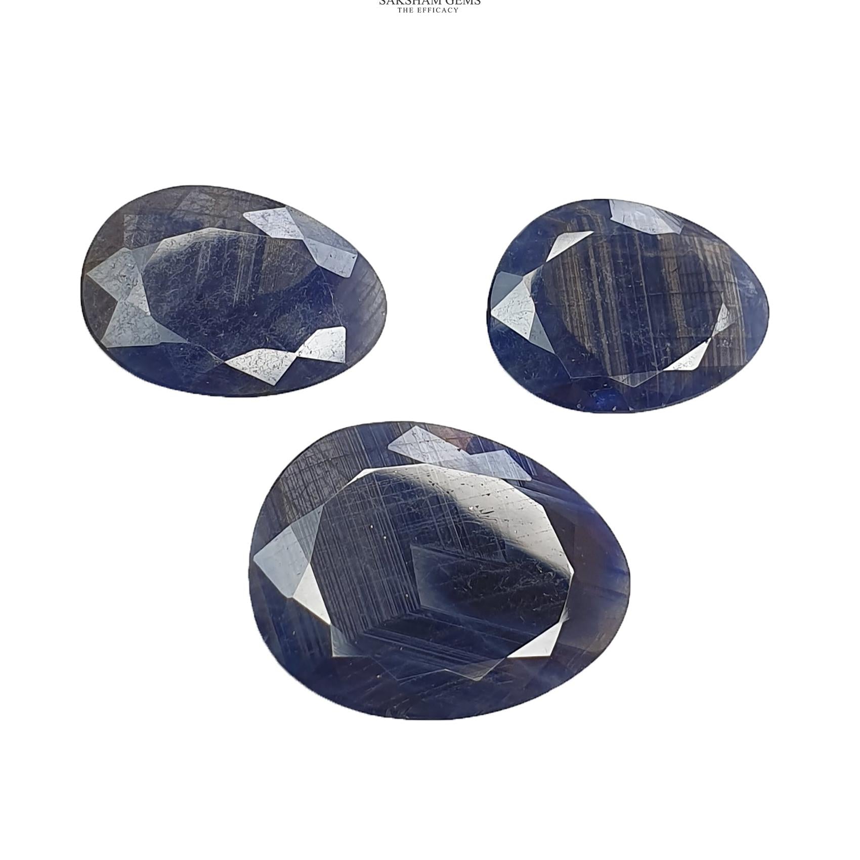 BLUE SAPPHIRE Gemstone Normal Cut : 69.20cts Natural Untreated Unheated Sapphire Egg Shape 23.5*17.5mm - 29.5*22.5mm 3pcs Set