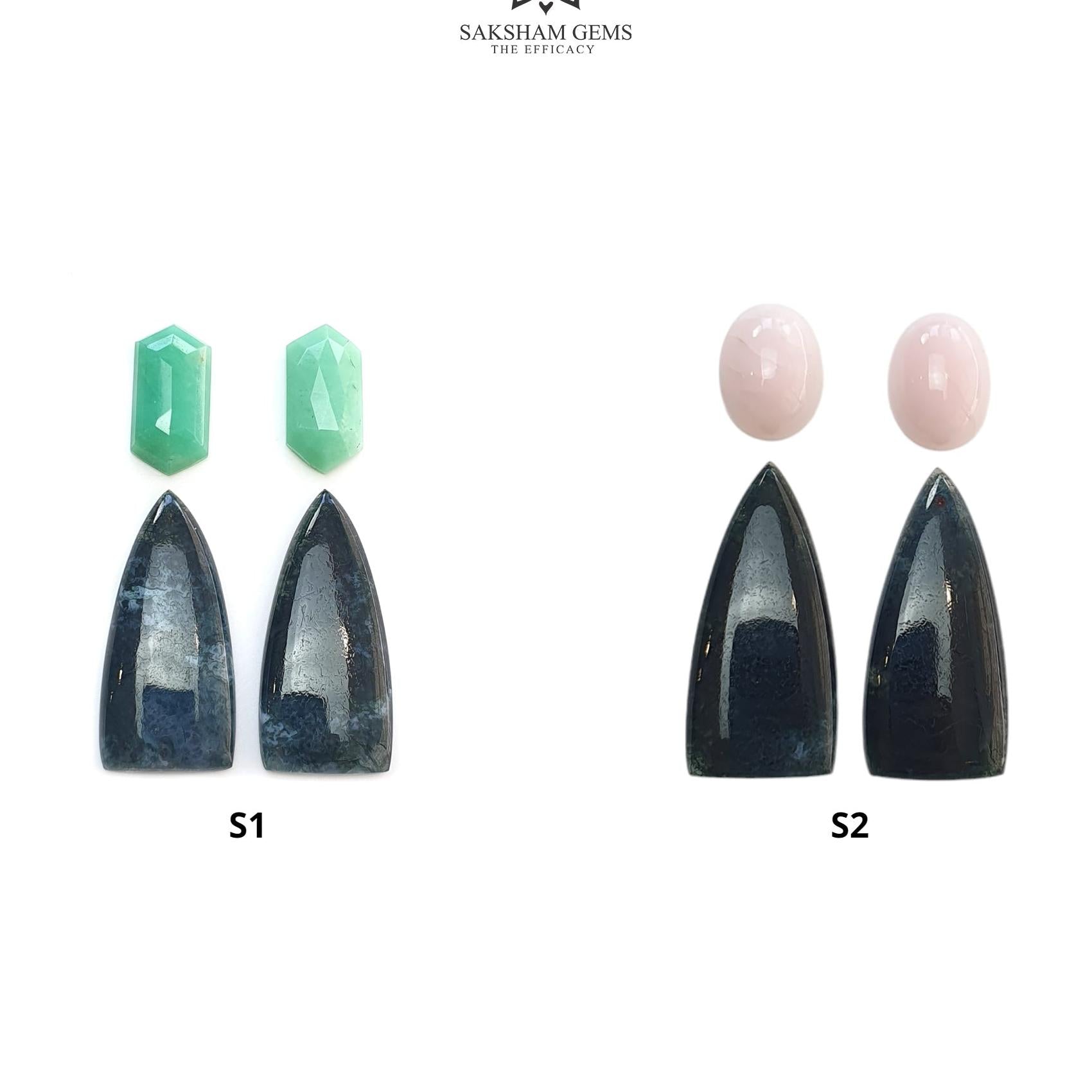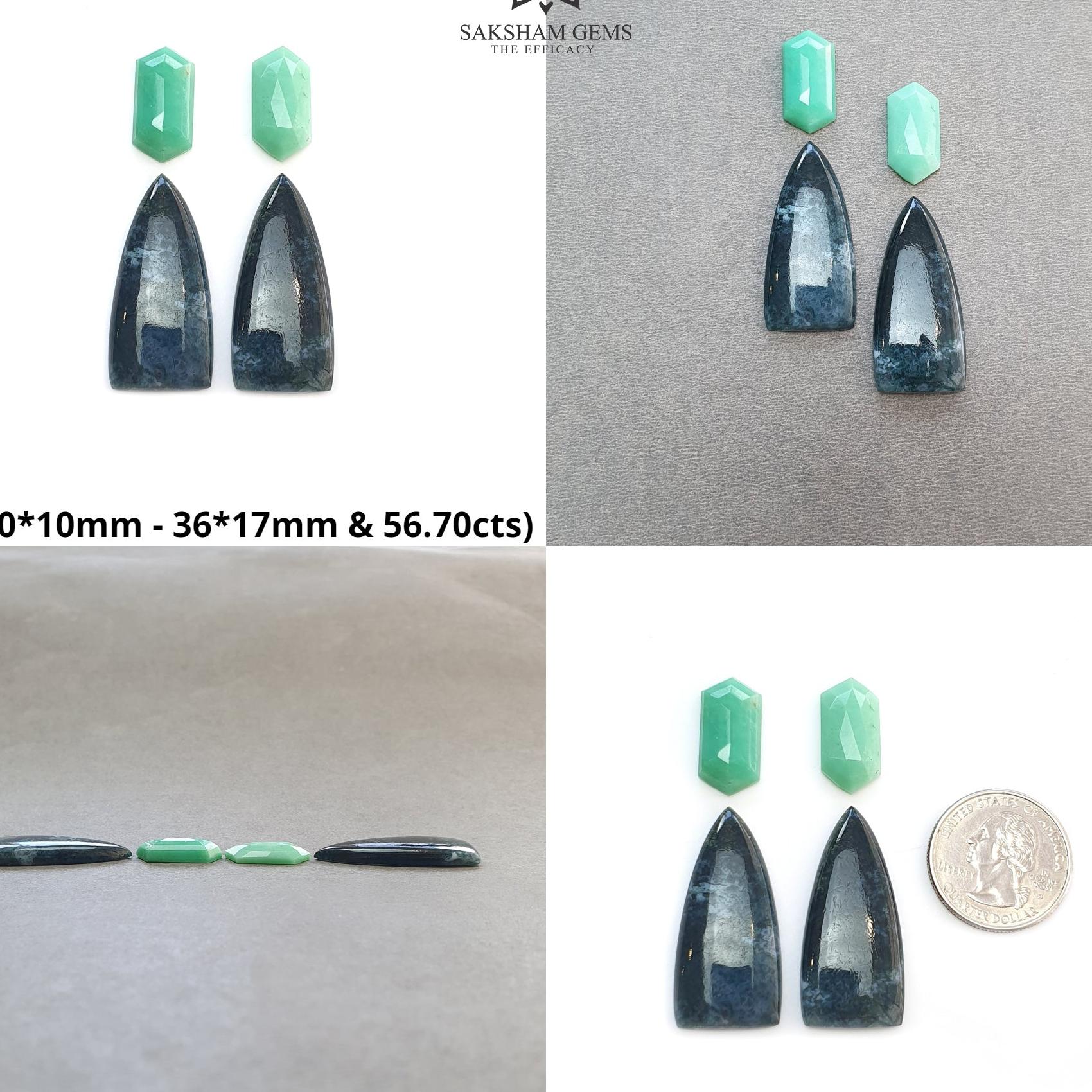 Moss Agate Chrysoprase & Opal Gemstone Step Cut Cabochon : Natural Untreated Bi-Color Agate Triangle Olav Shape 4pcs Set